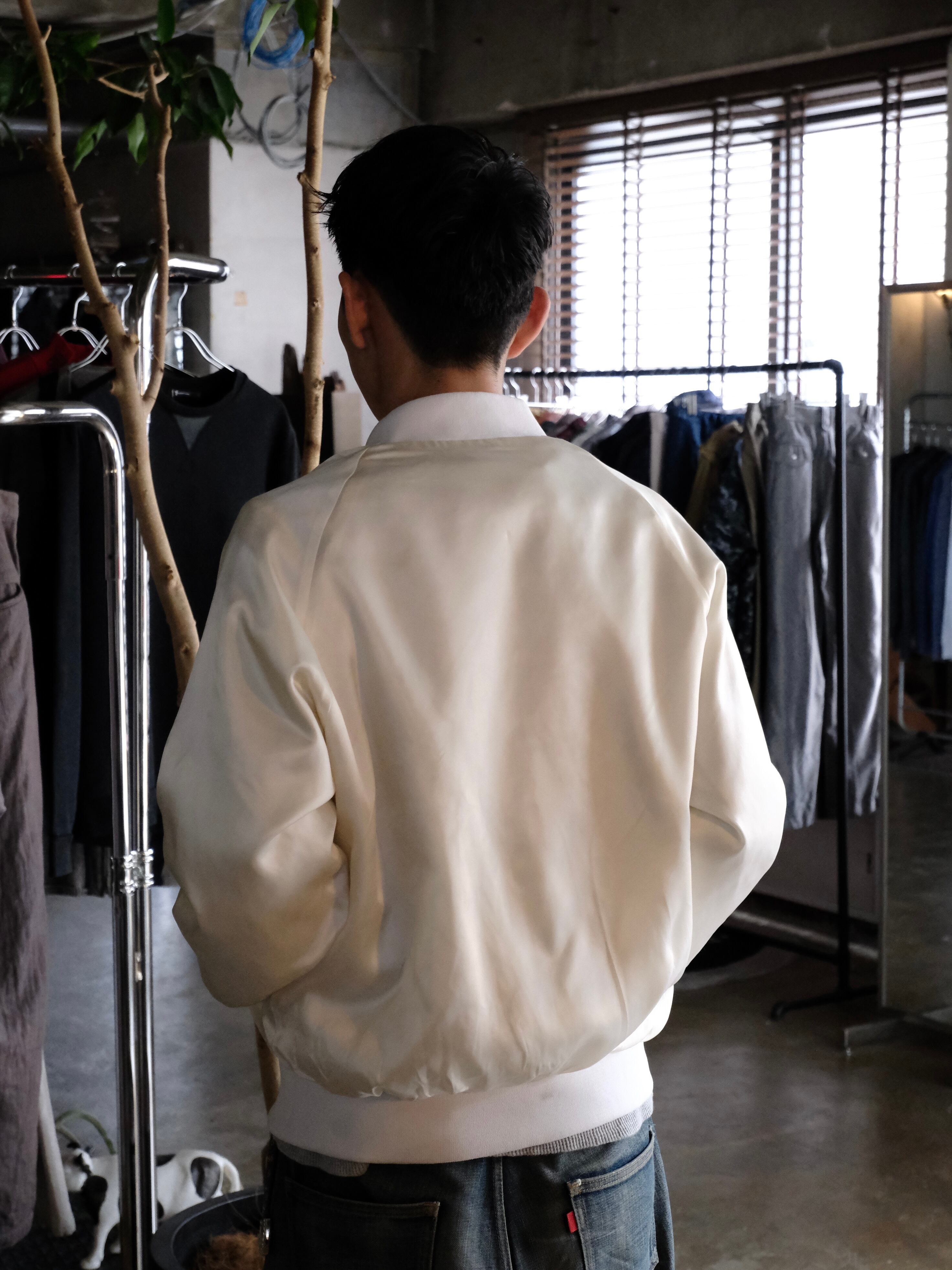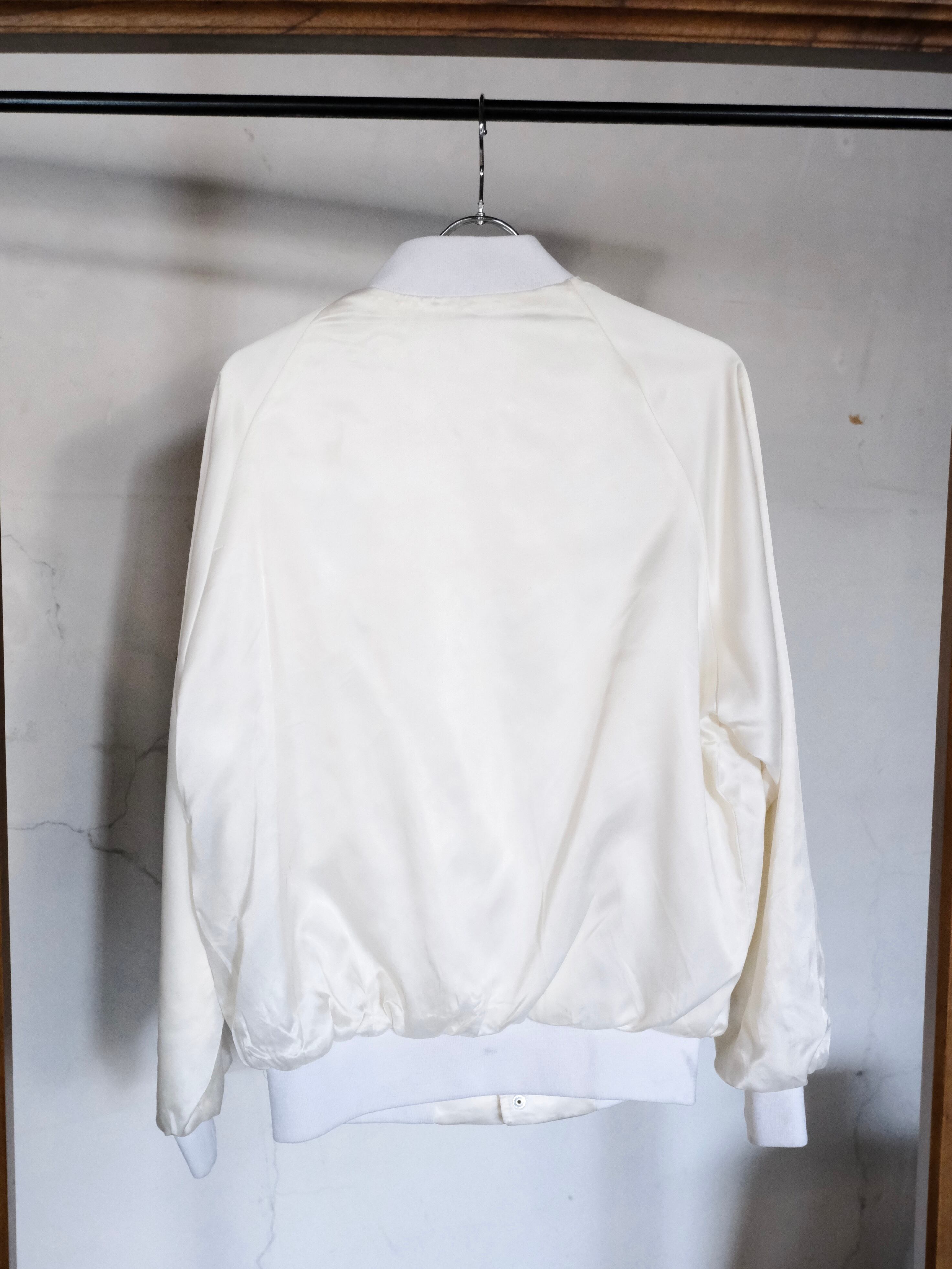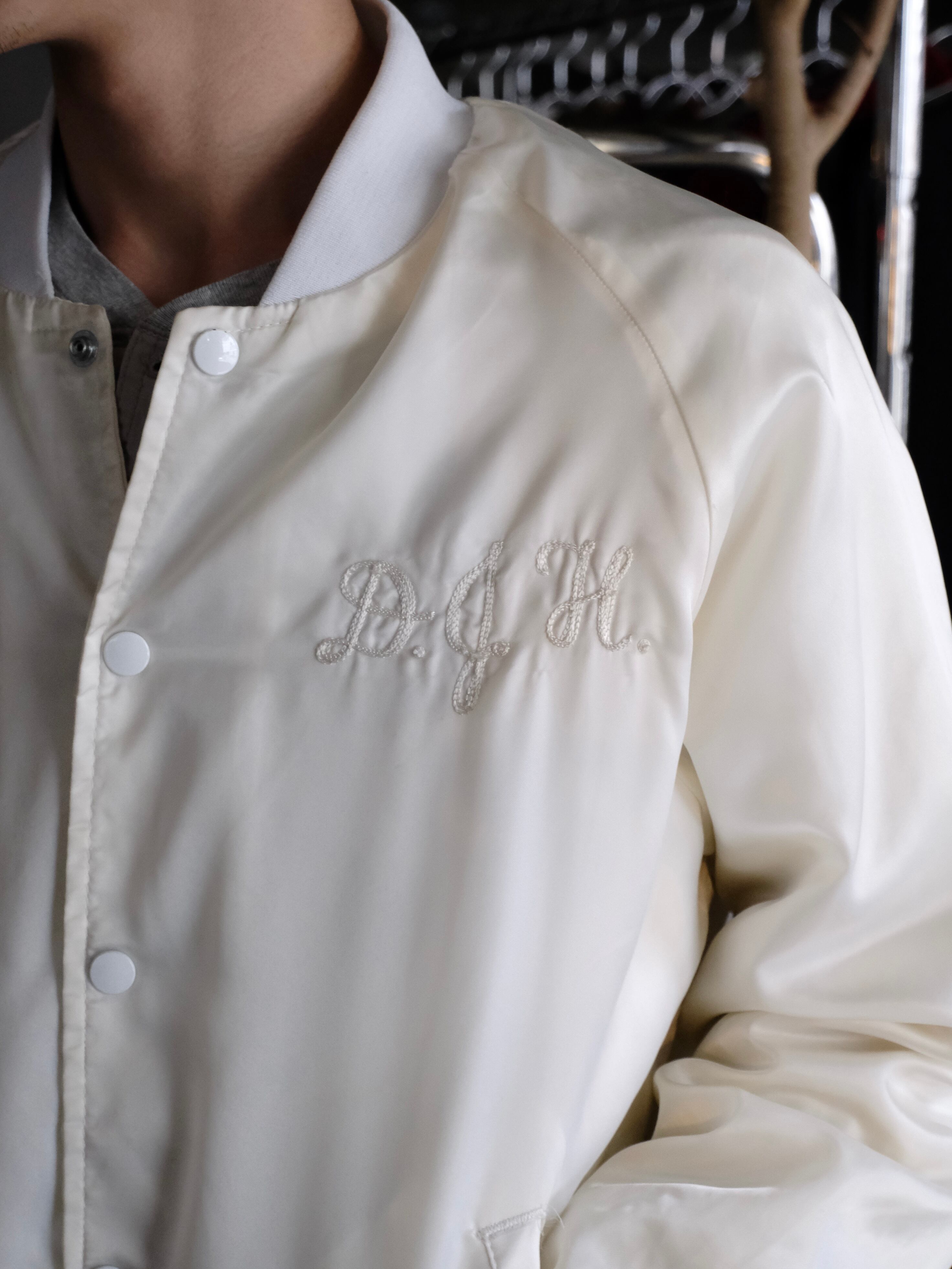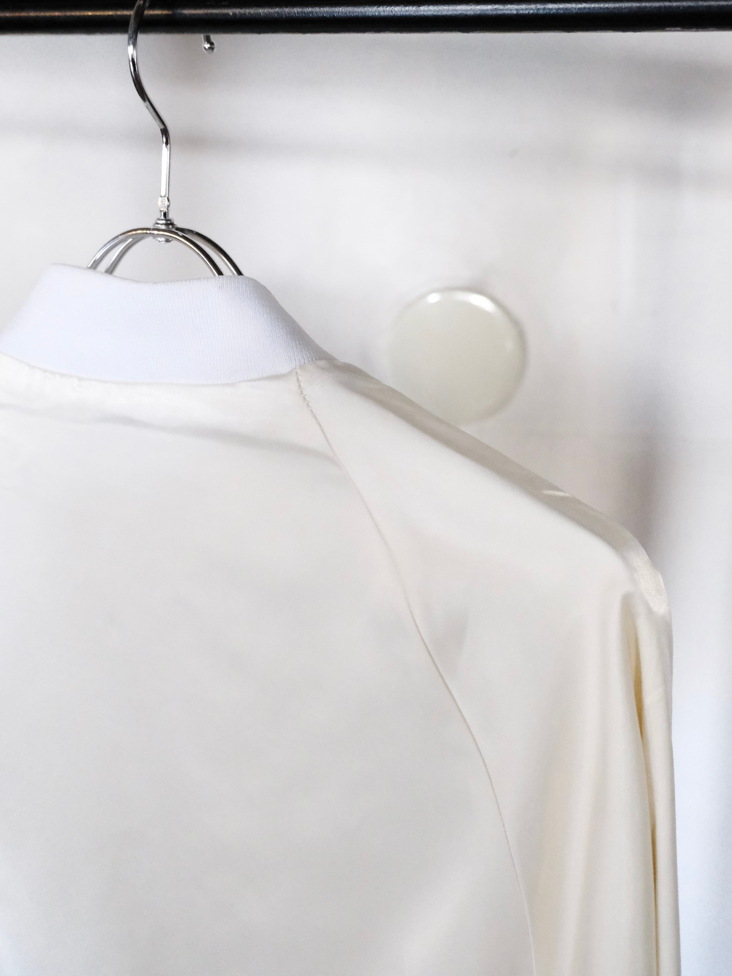 白の光沢感と無駄の無いデザインが目を引くナイロンブルゾンです。