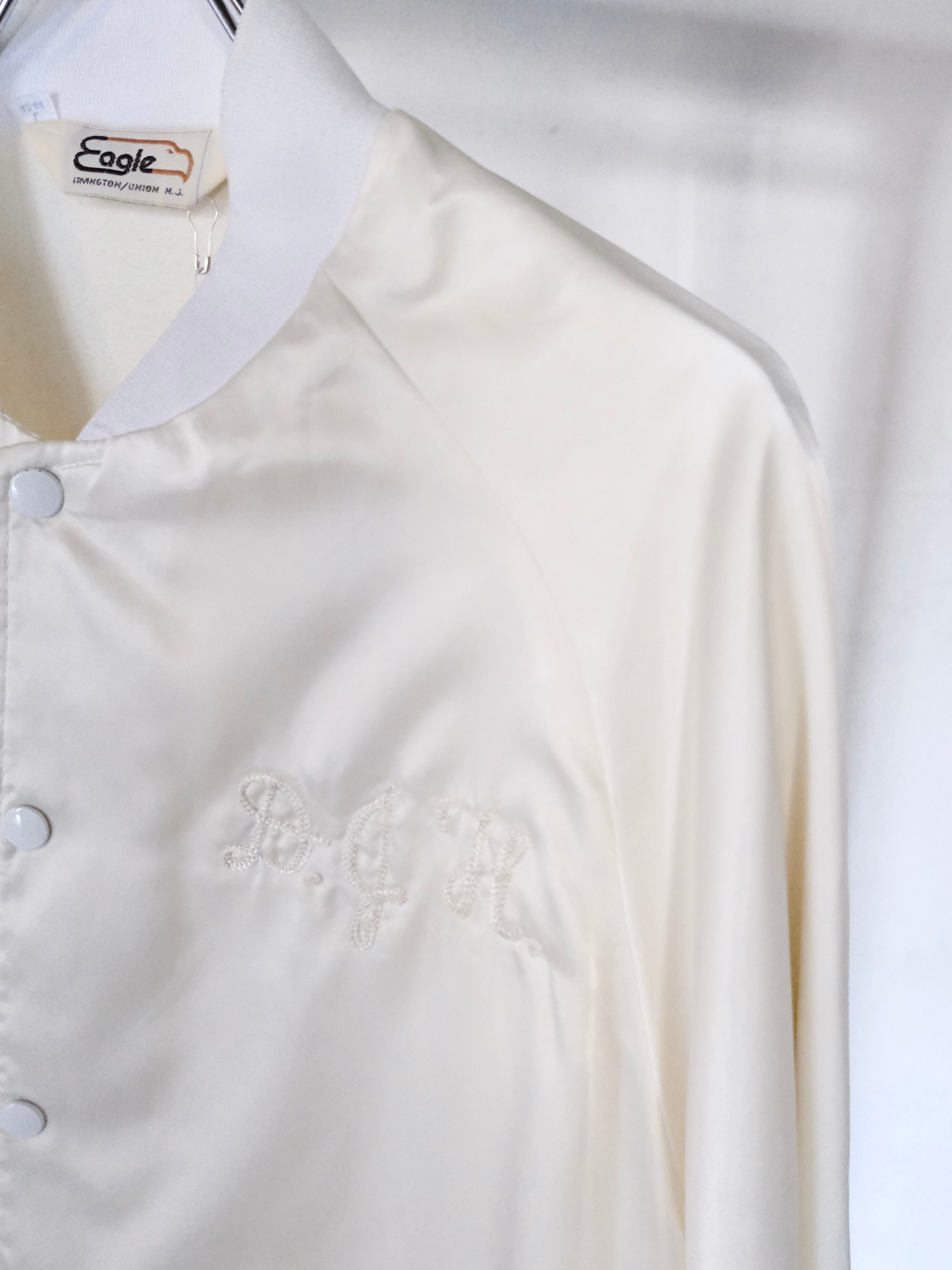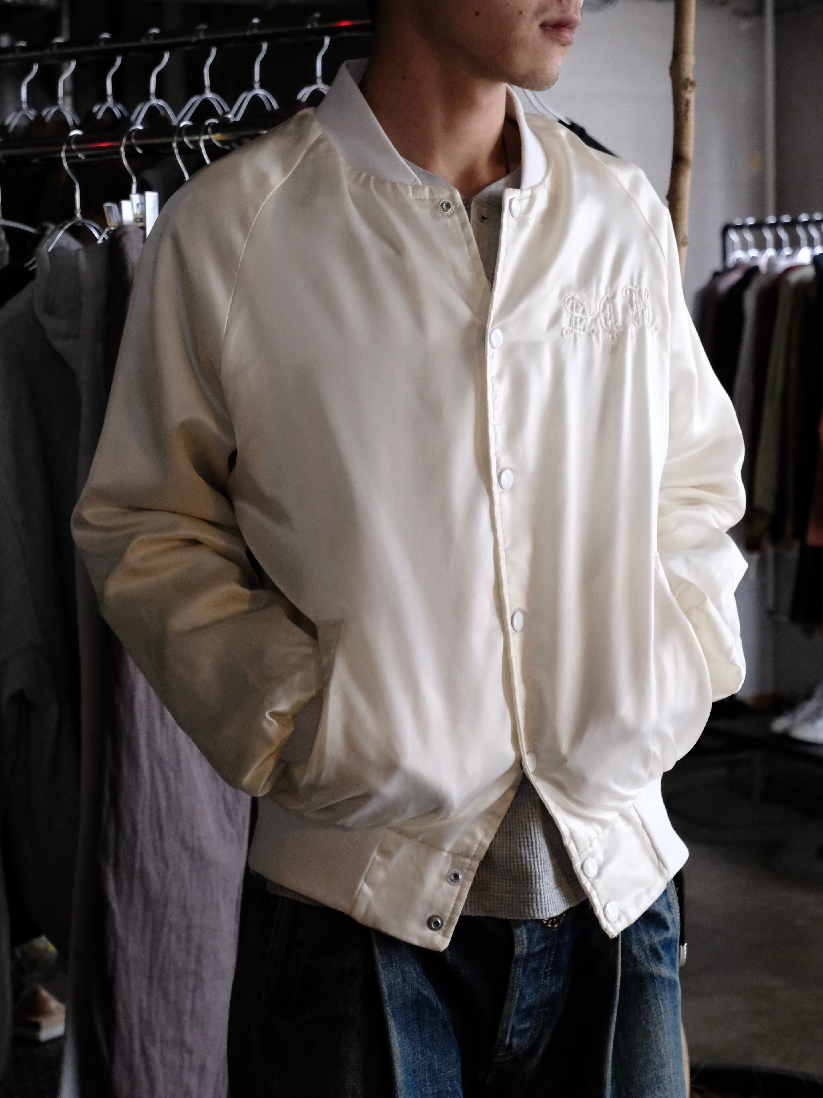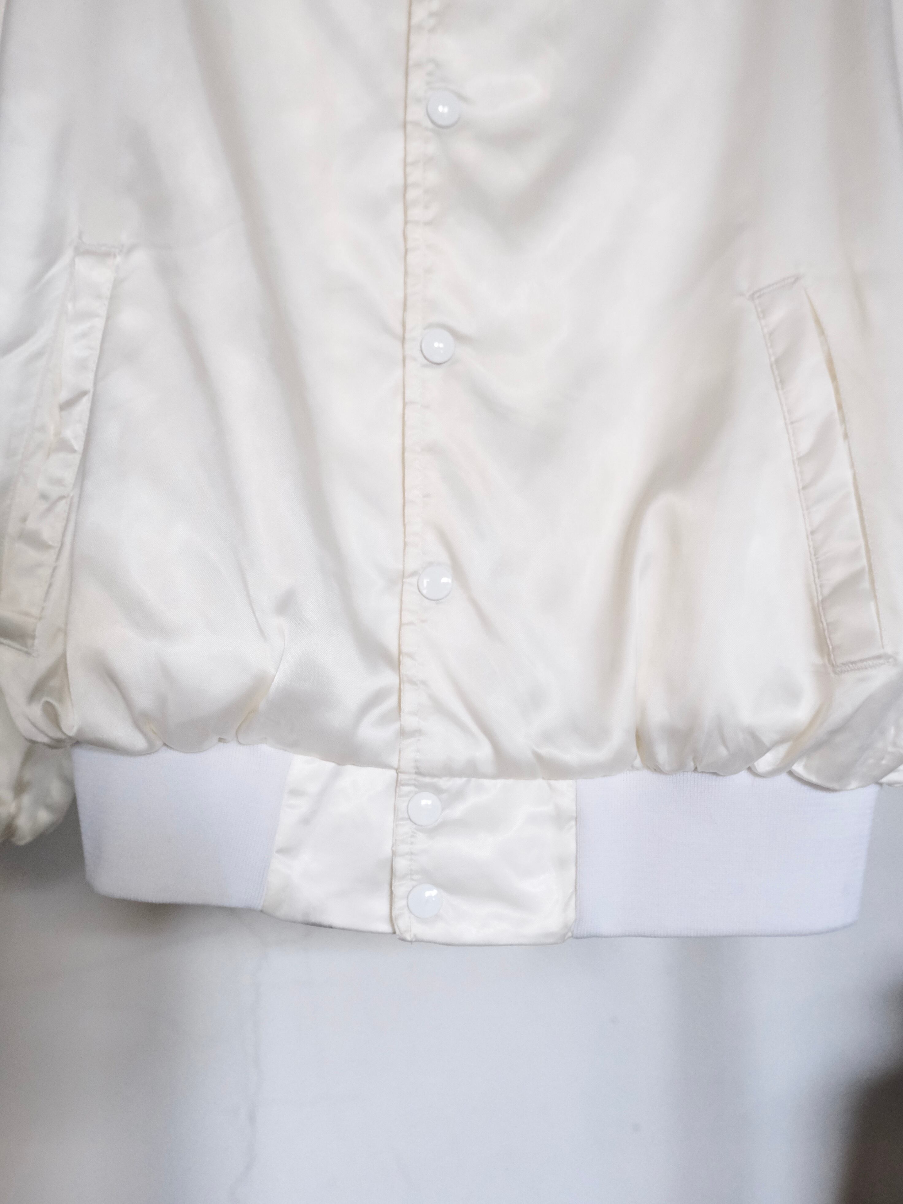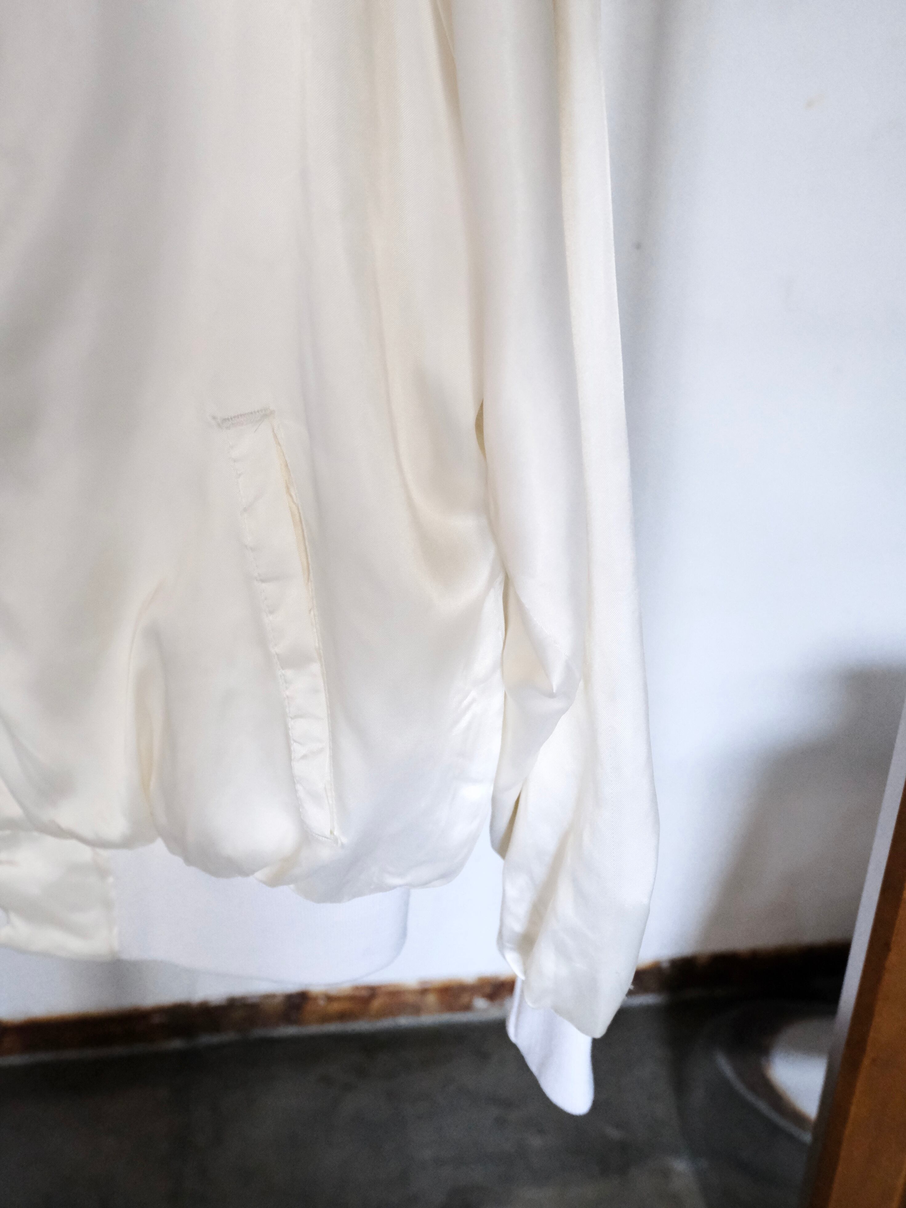 白の光沢感と無駄の無いデザインが目を引くナイロンブルゾンです。