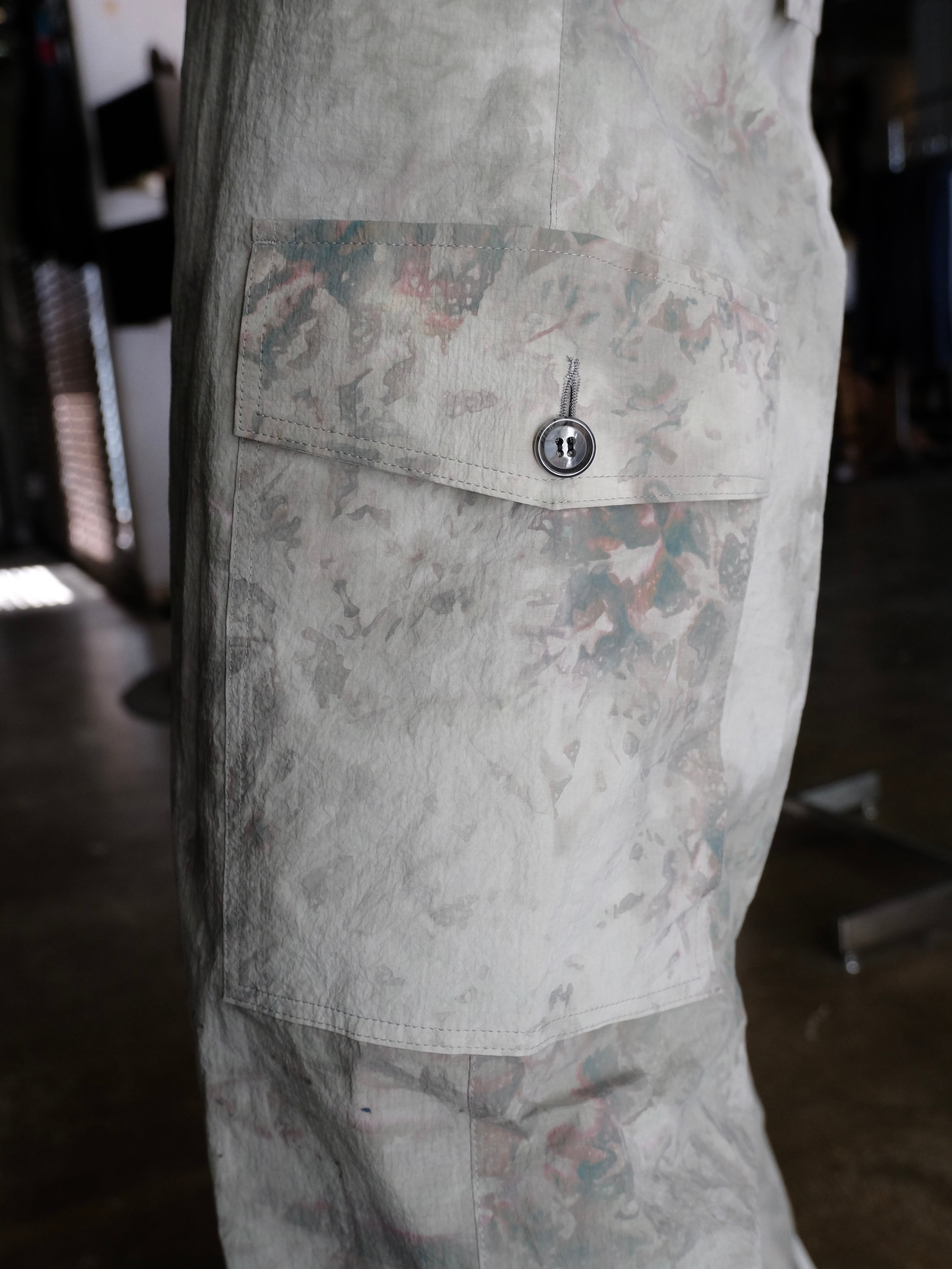 撥水機能を維持しながら、ランダム染色を施すことで、唯一無二のテキスタイルパターンを表現しています。
