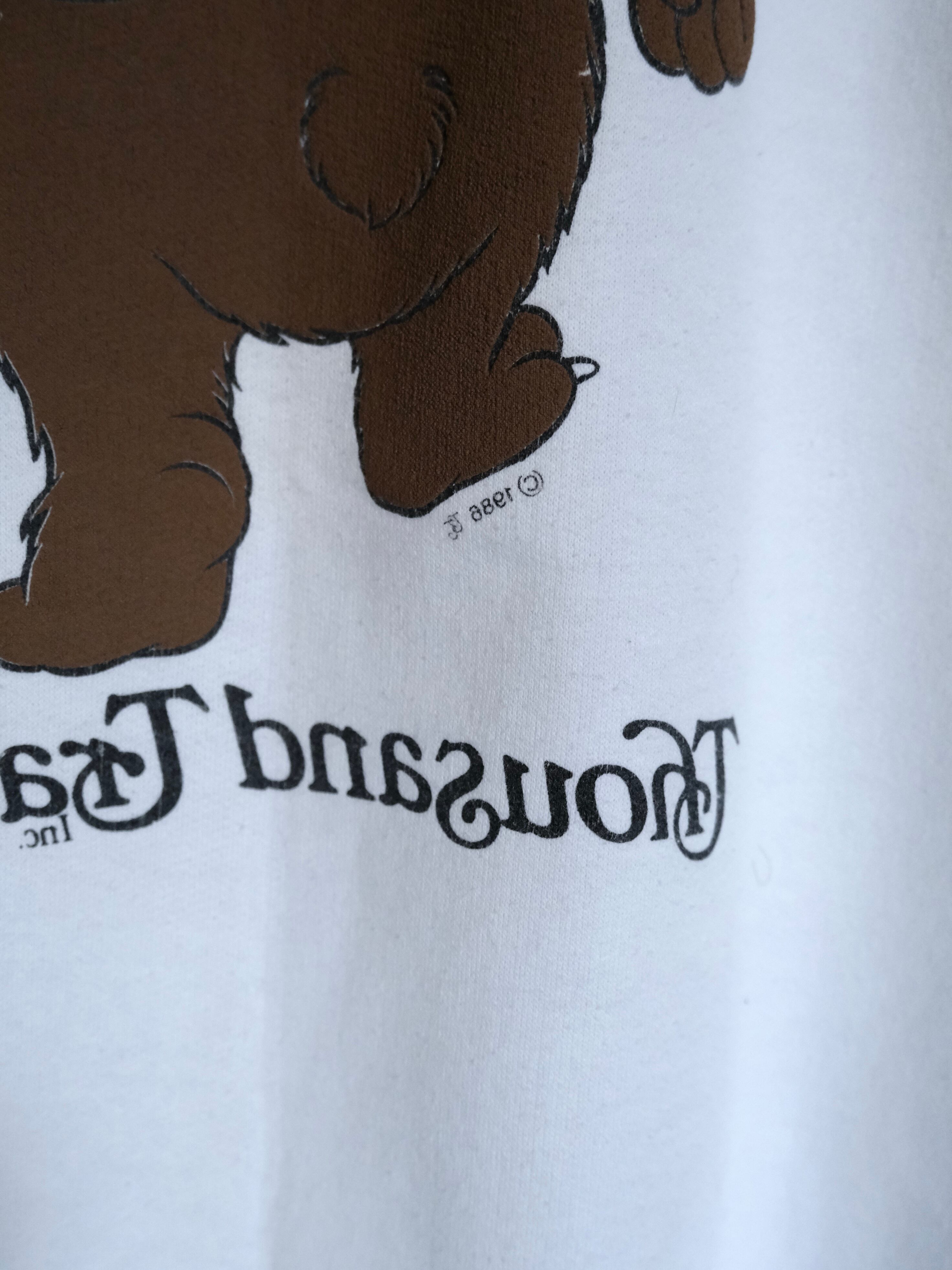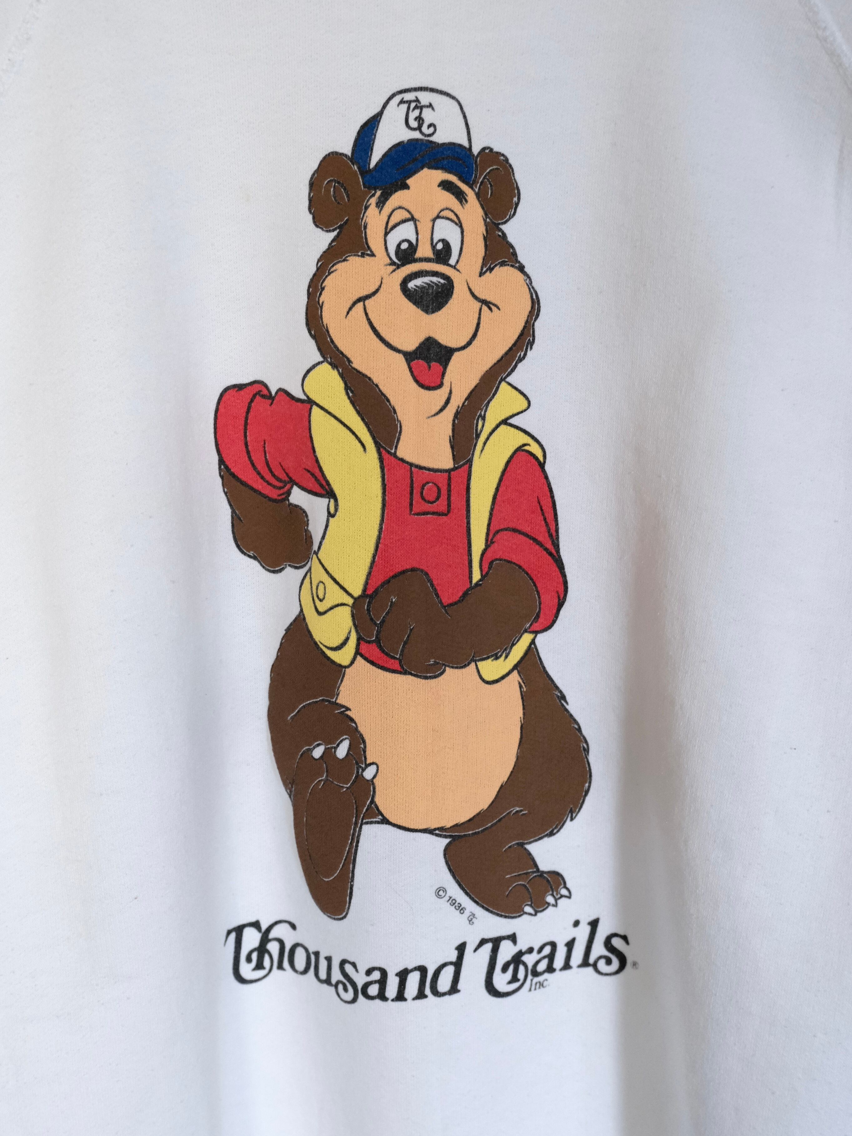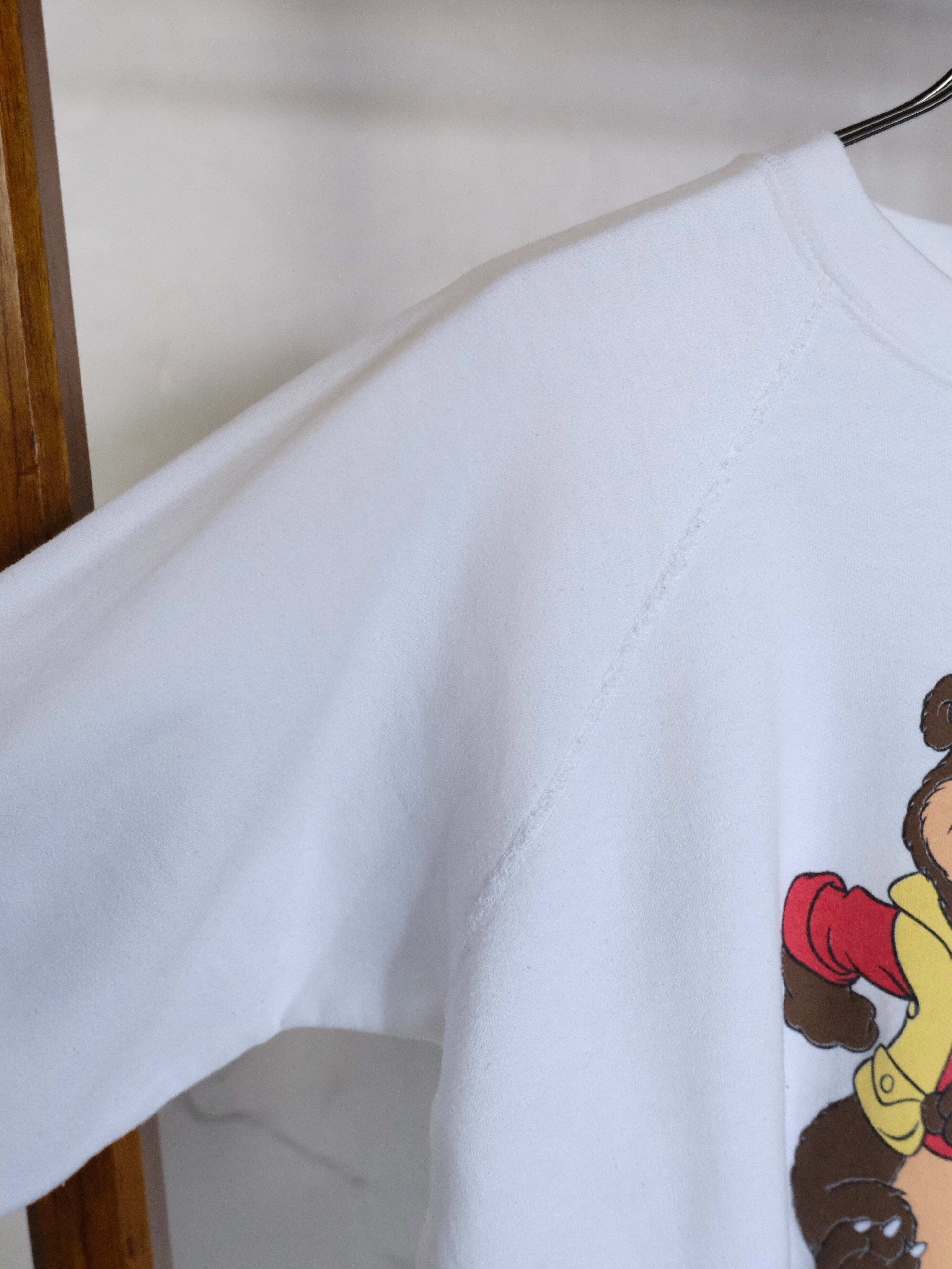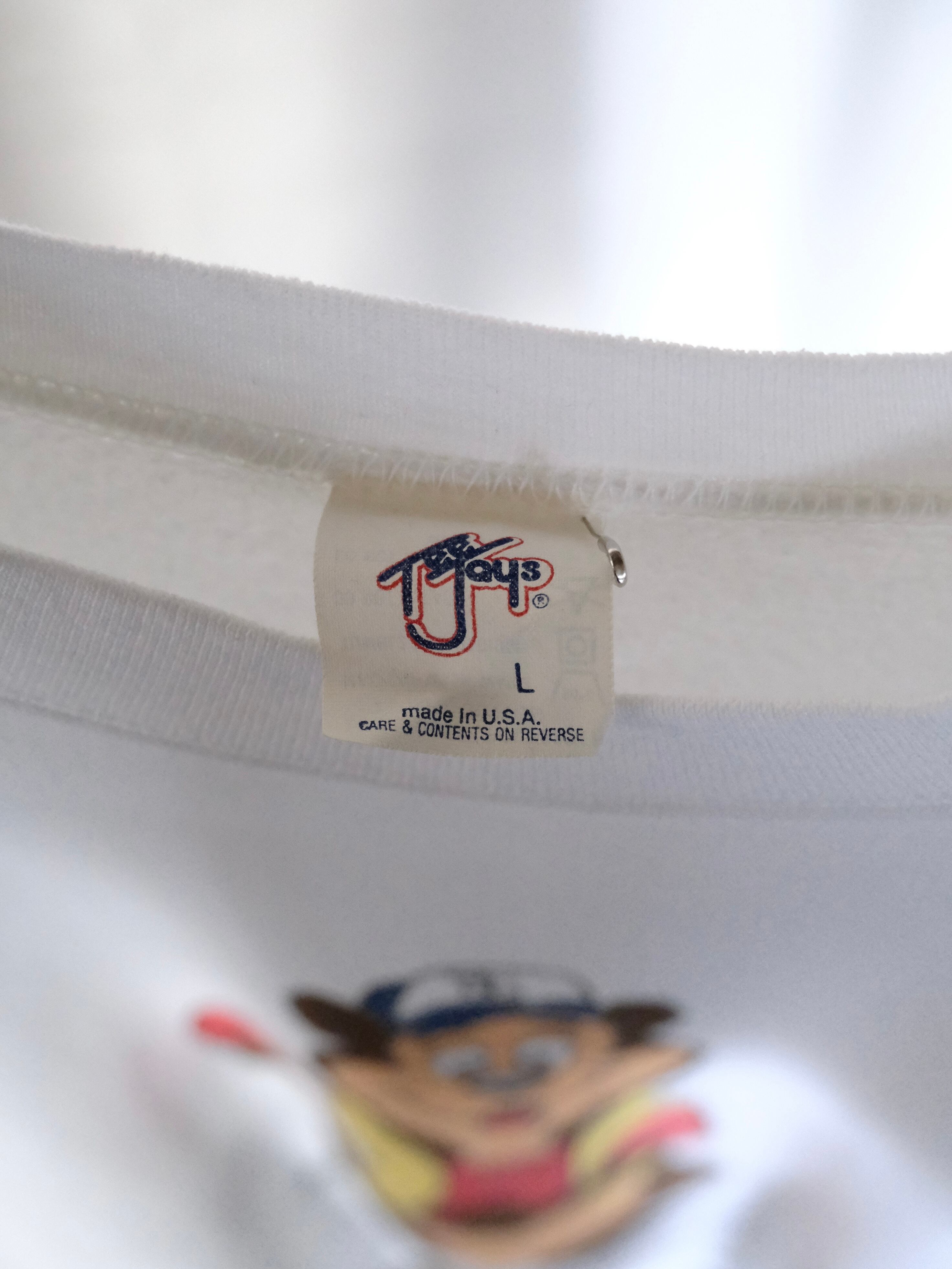 ホワイトボディのスウェットにキャラクターが両面にプリントされたこちら。