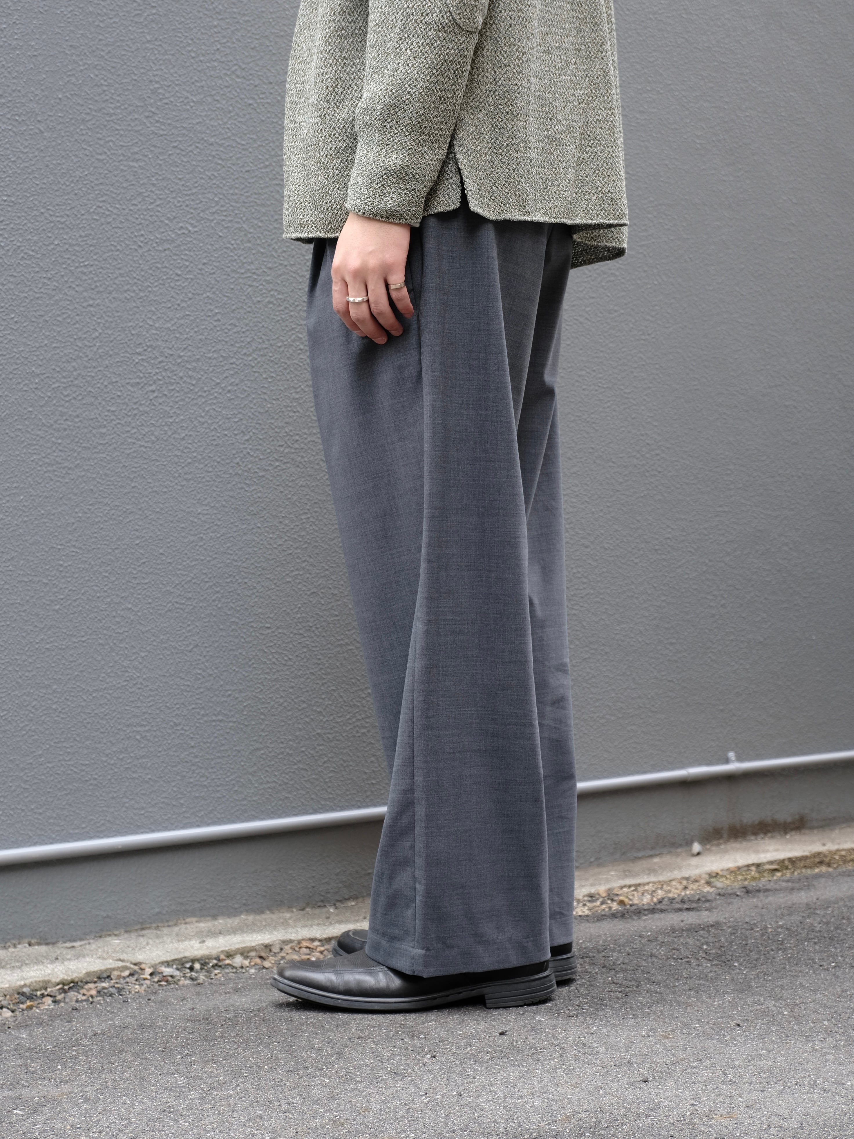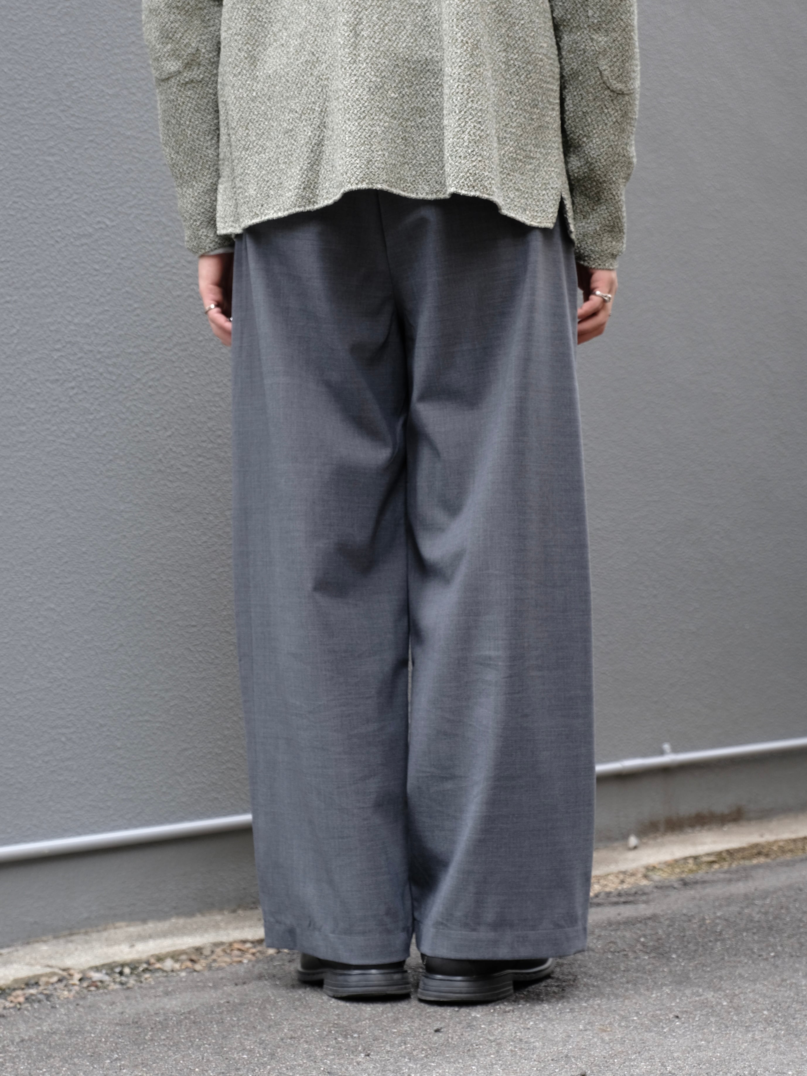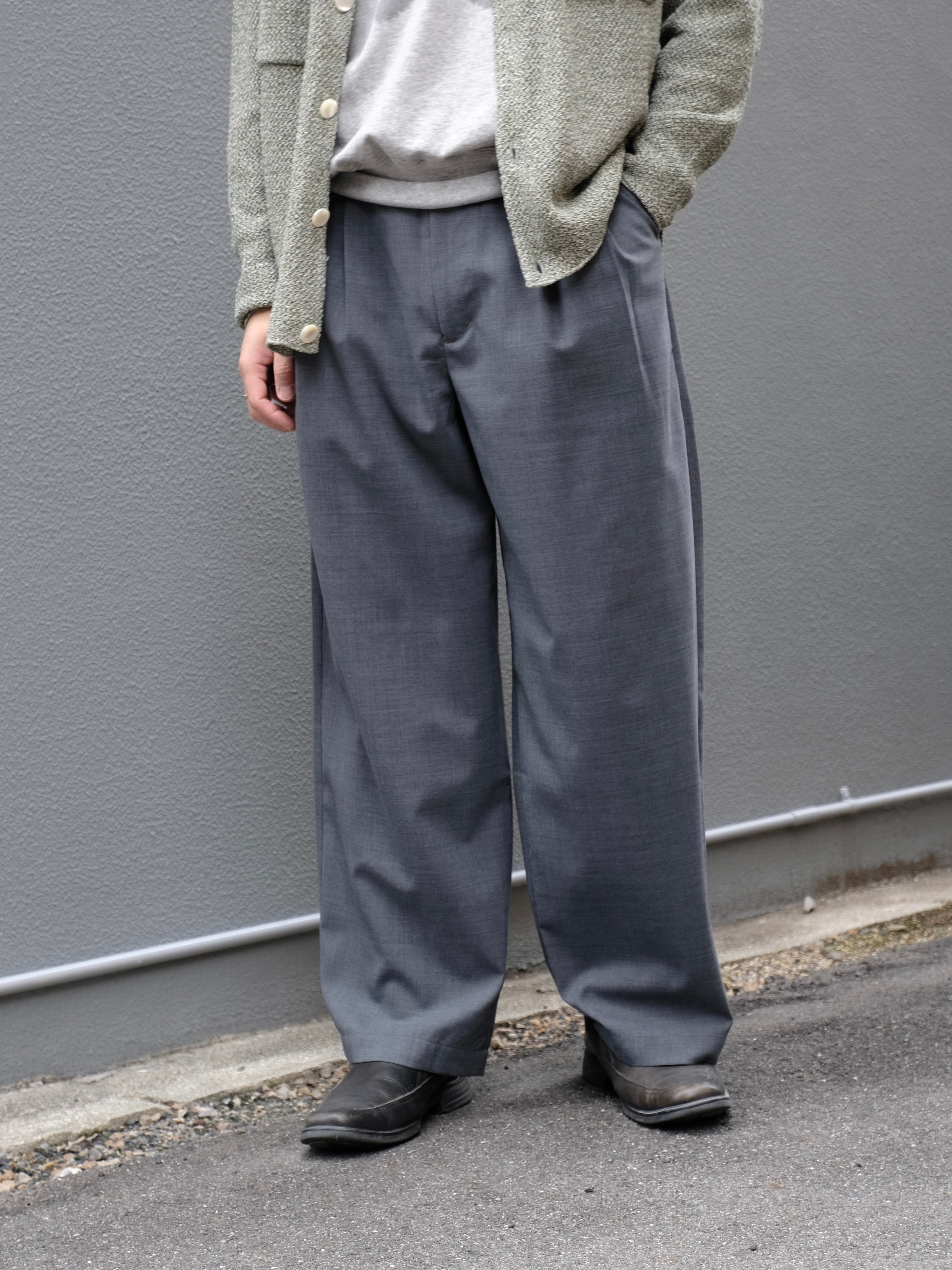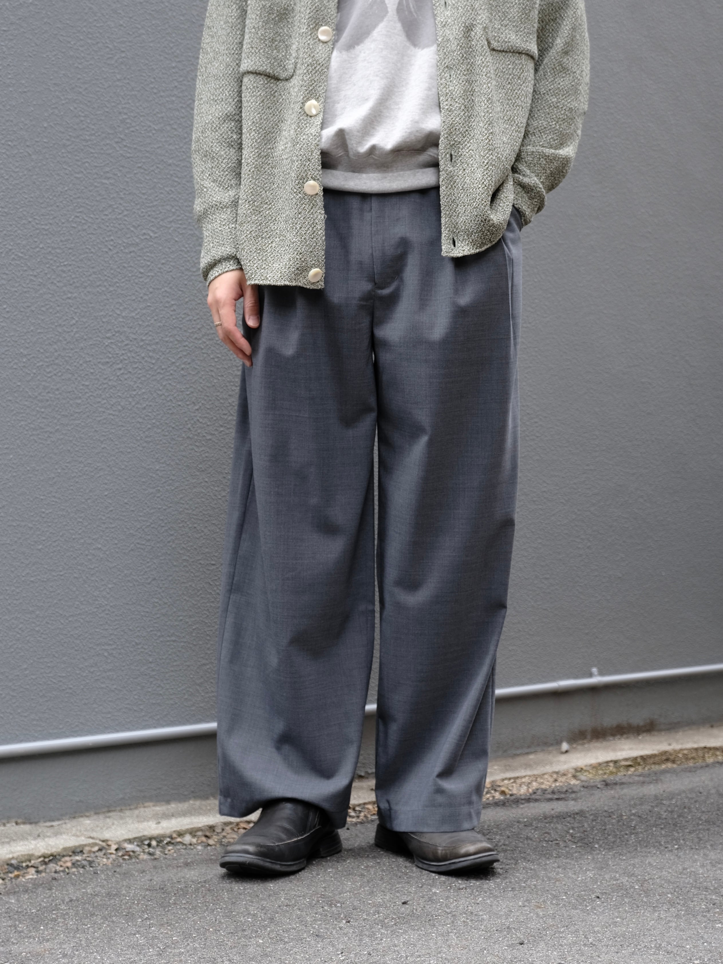 サマーウールを使用した新型のワイドスラックス。春夏にも快適に過ごせる生地感。