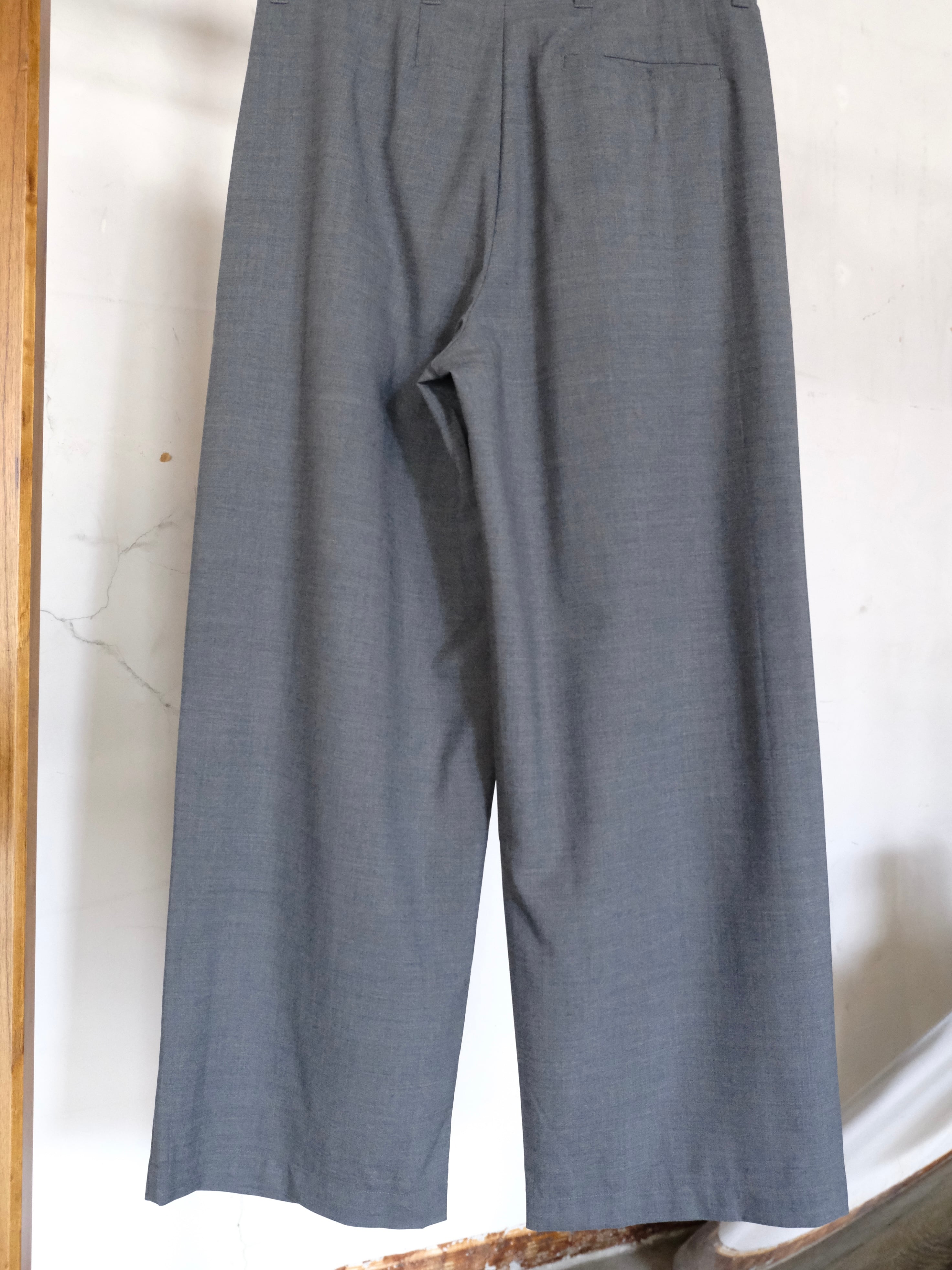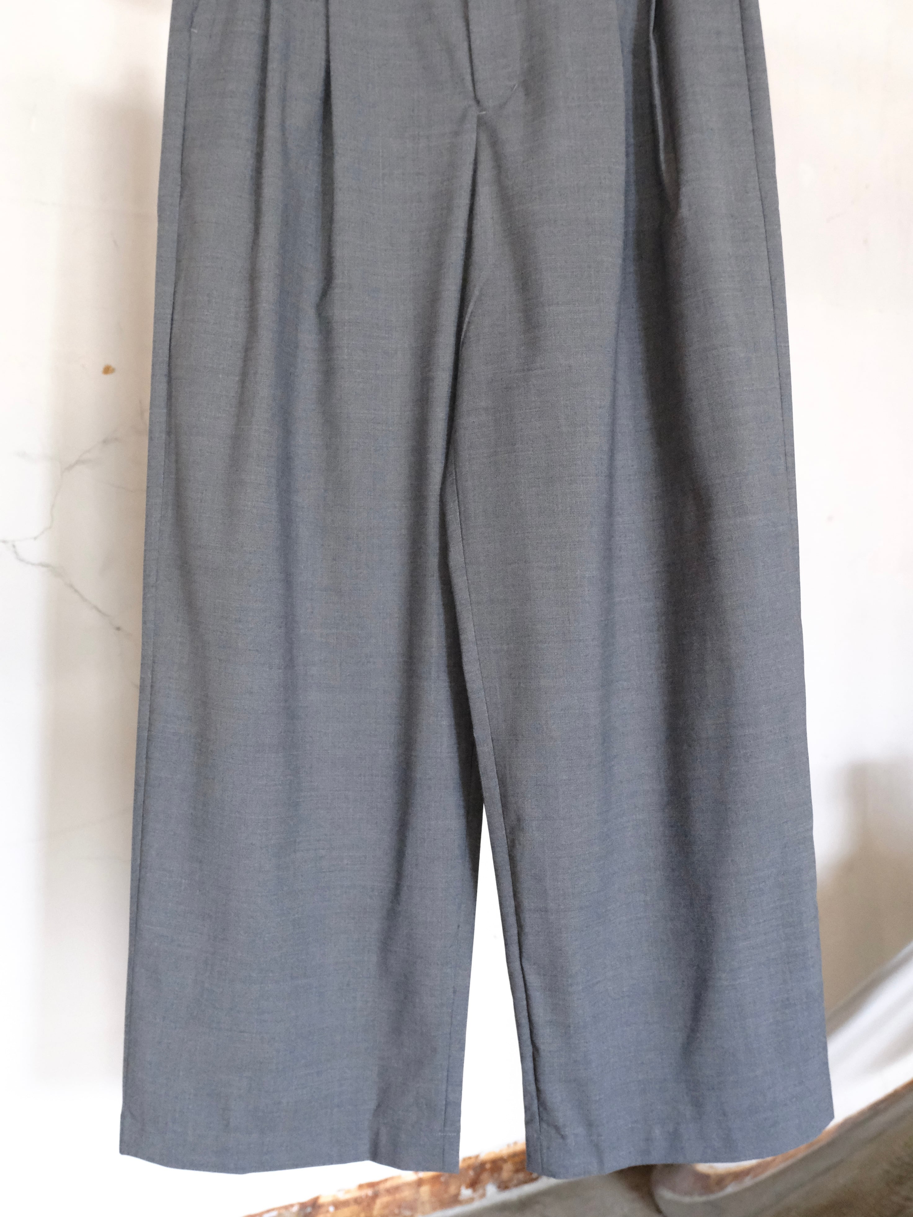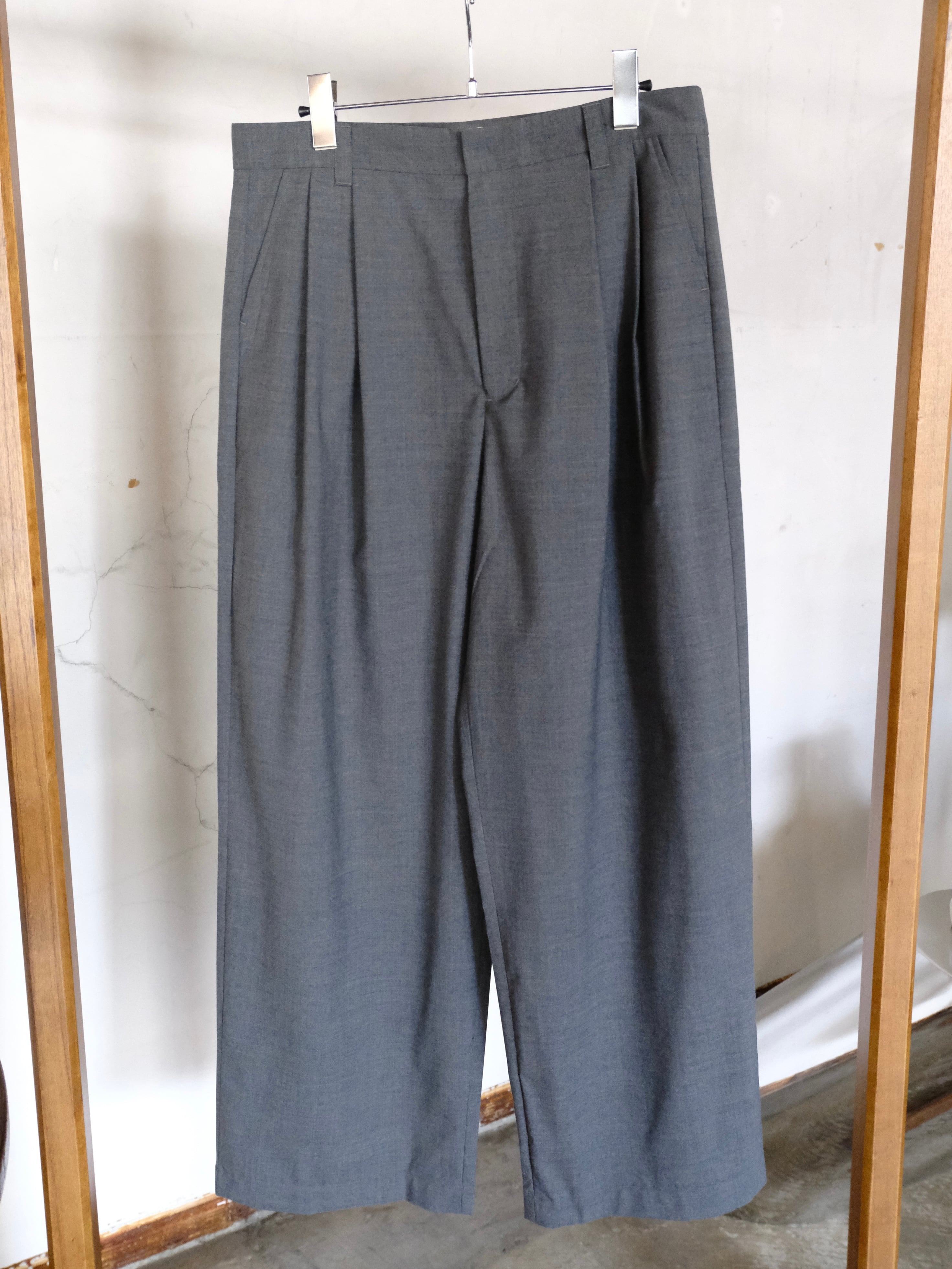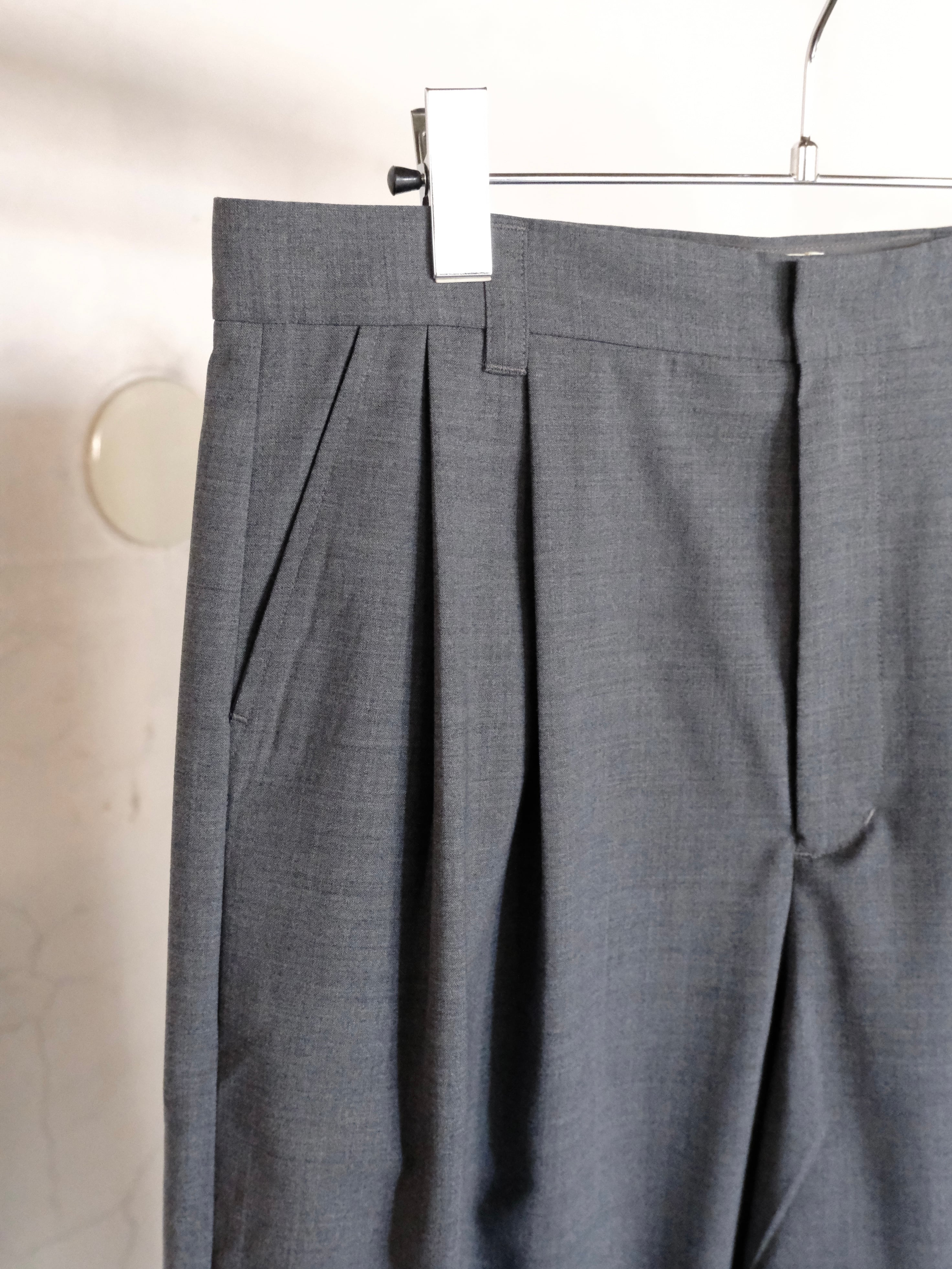 サマーウールを使用した新型のワイドスラックス。春夏にも快適に過ごせる生地感。