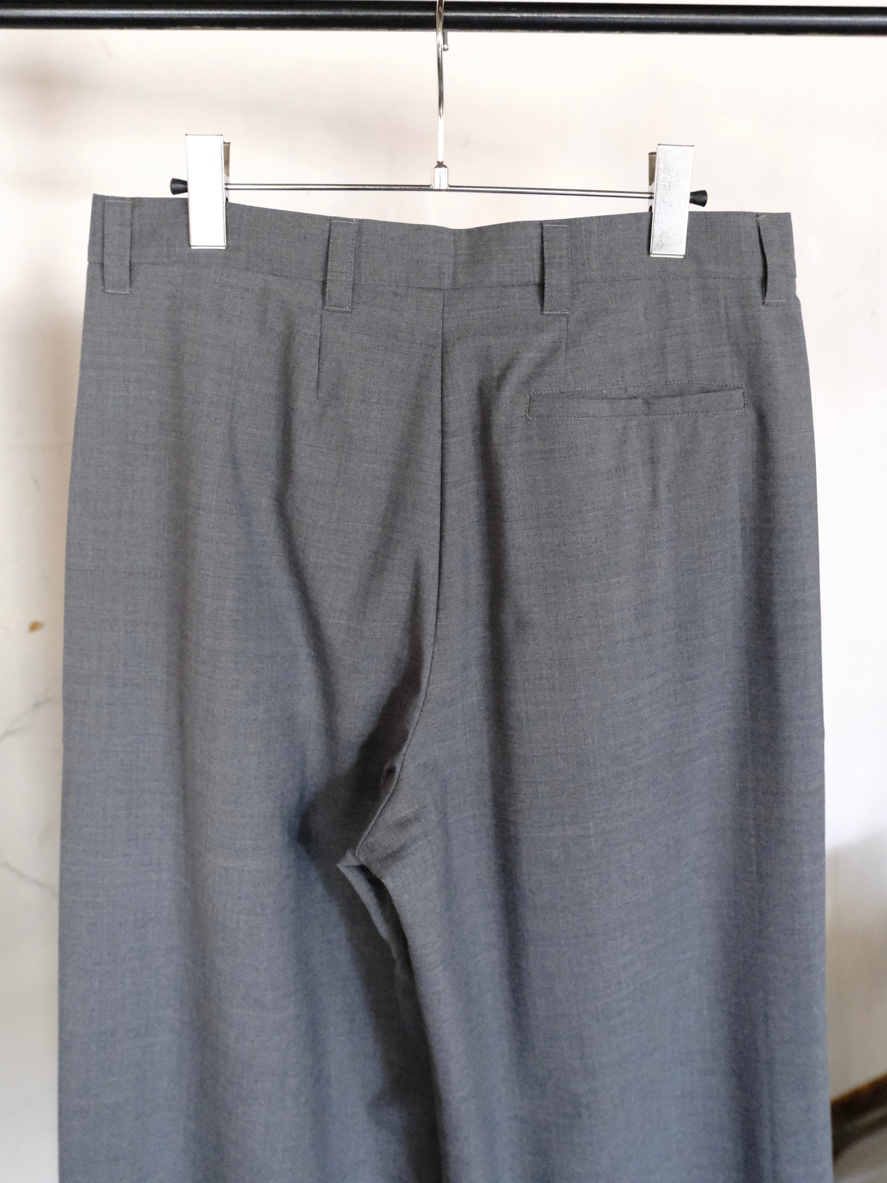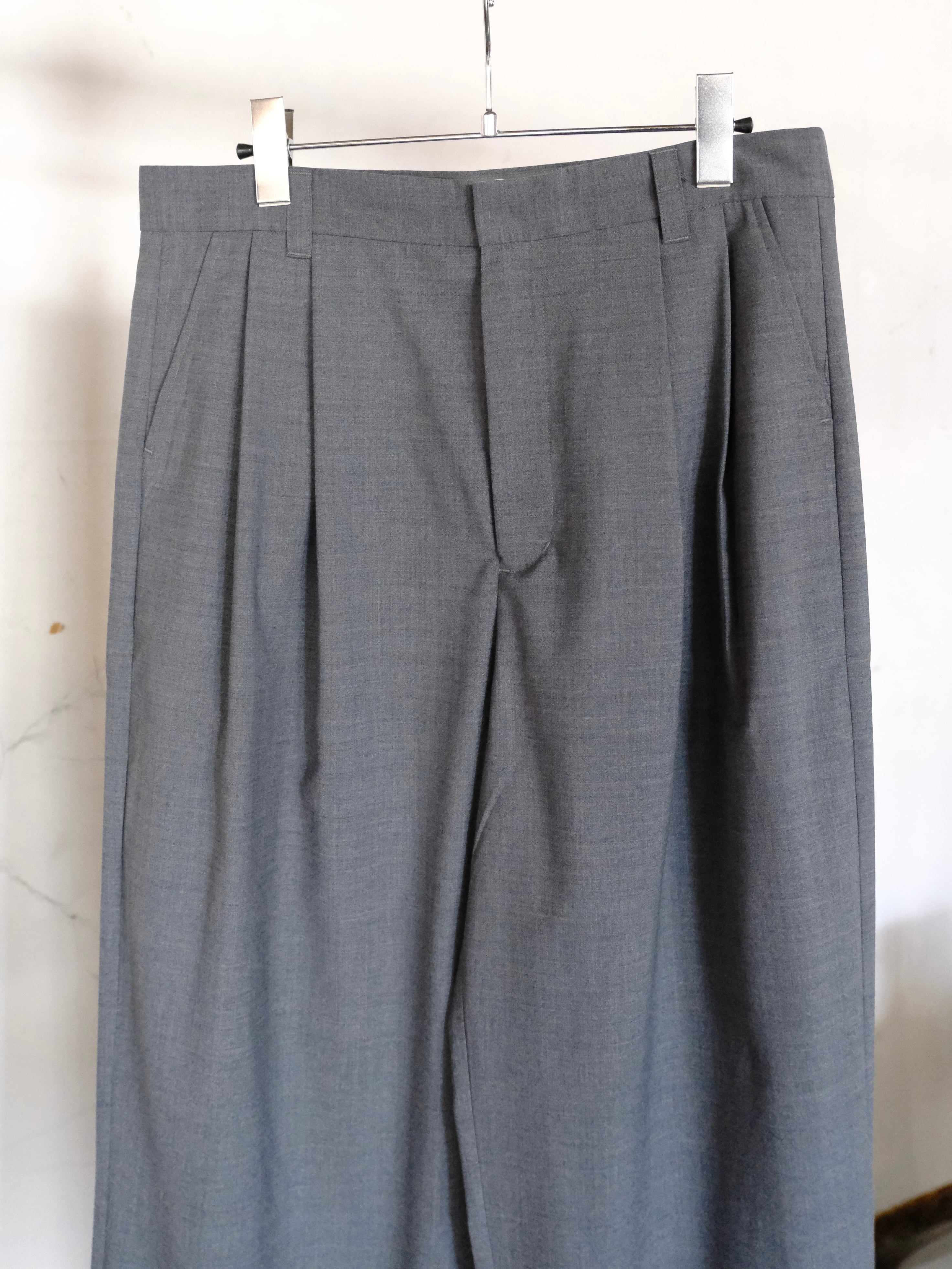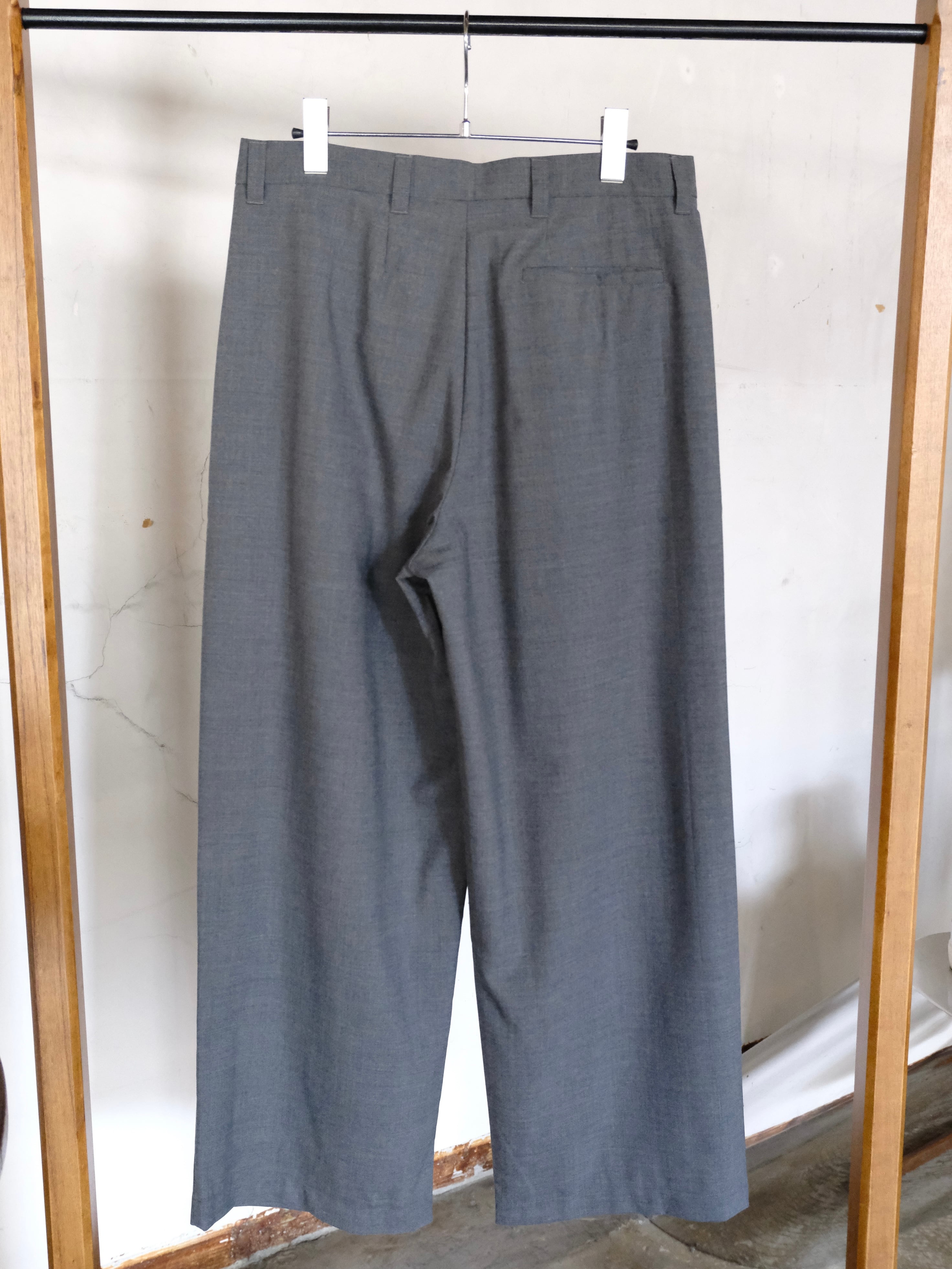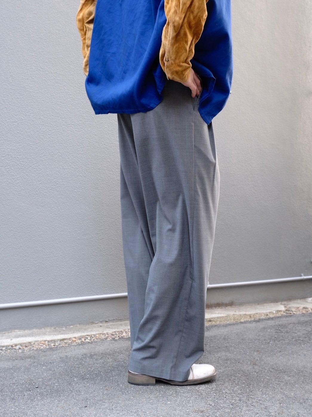 サマーウールを使用した新型のワイドスラックス。春夏にも快適に過ごせる生地感。