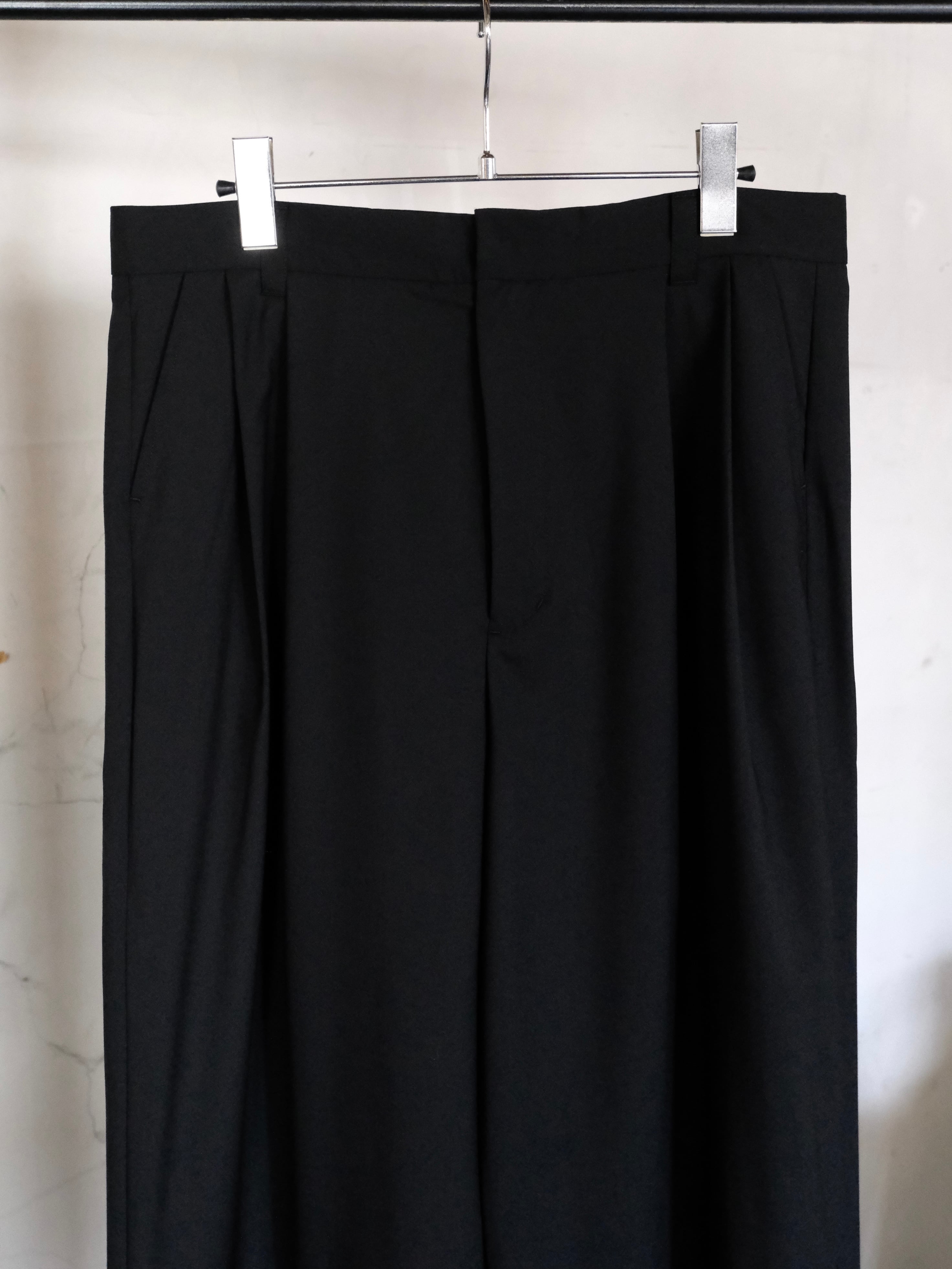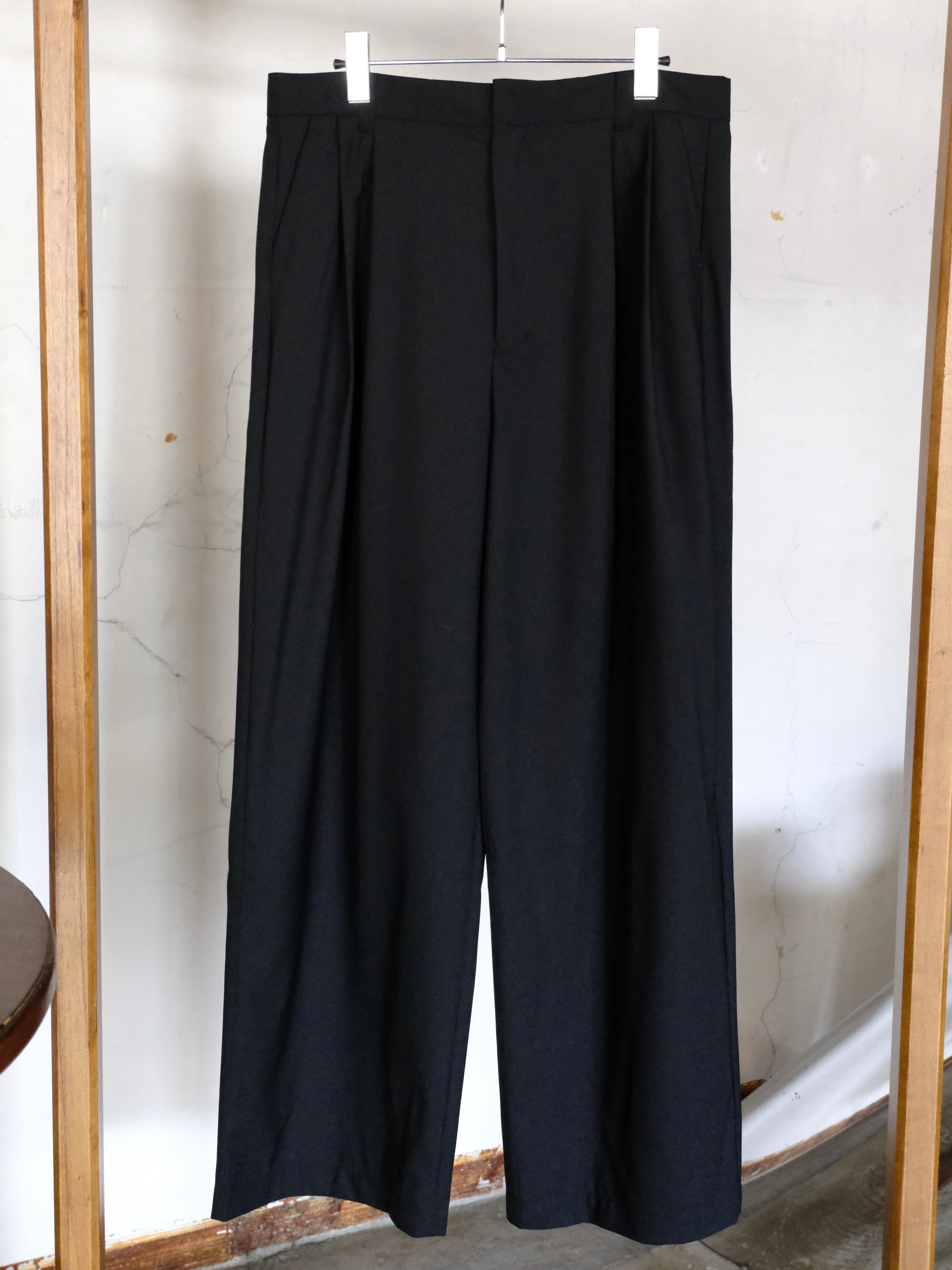 サマーウールを使用した新型のワイドスラックス。春夏にも快適に過ごせる生地感。