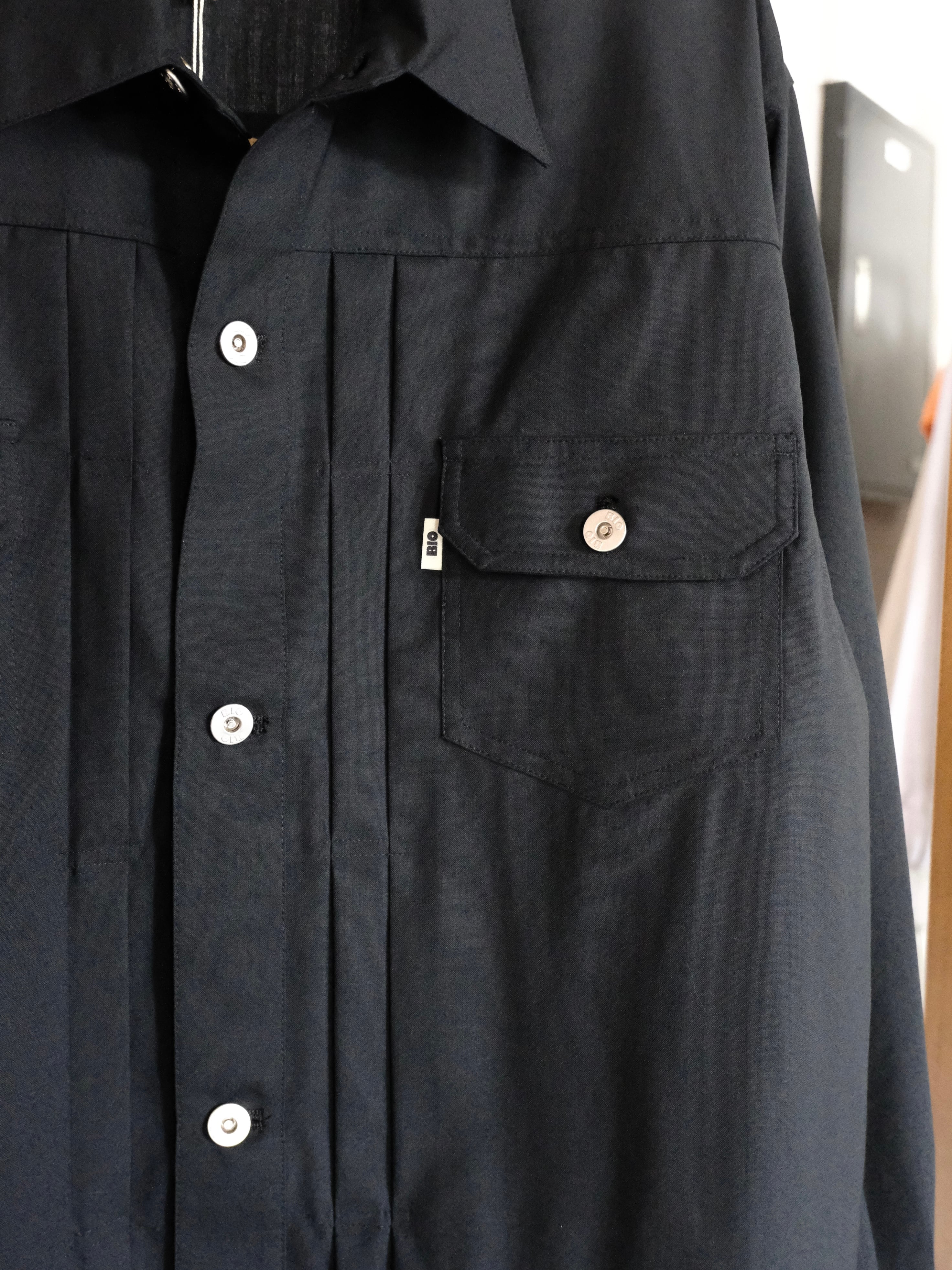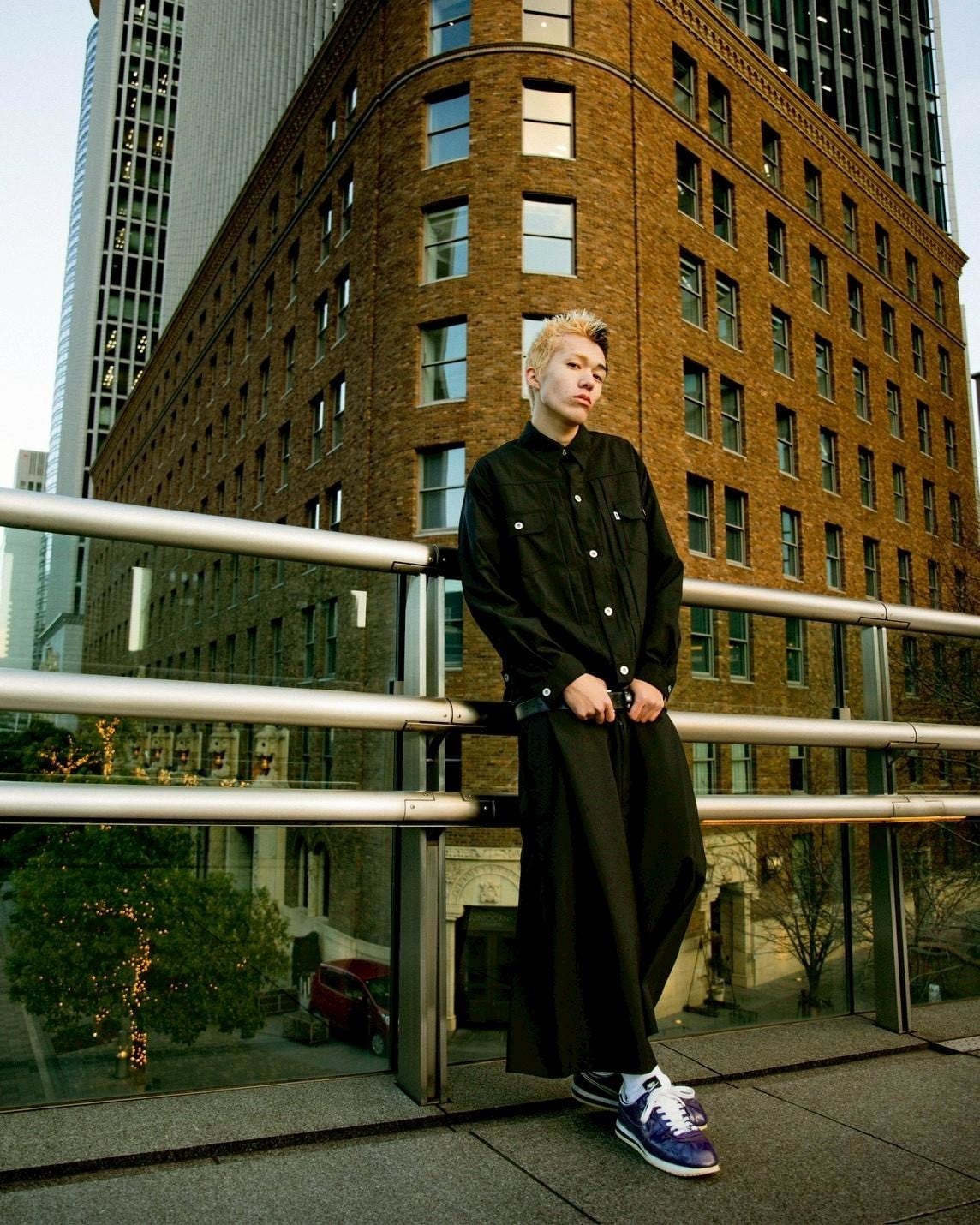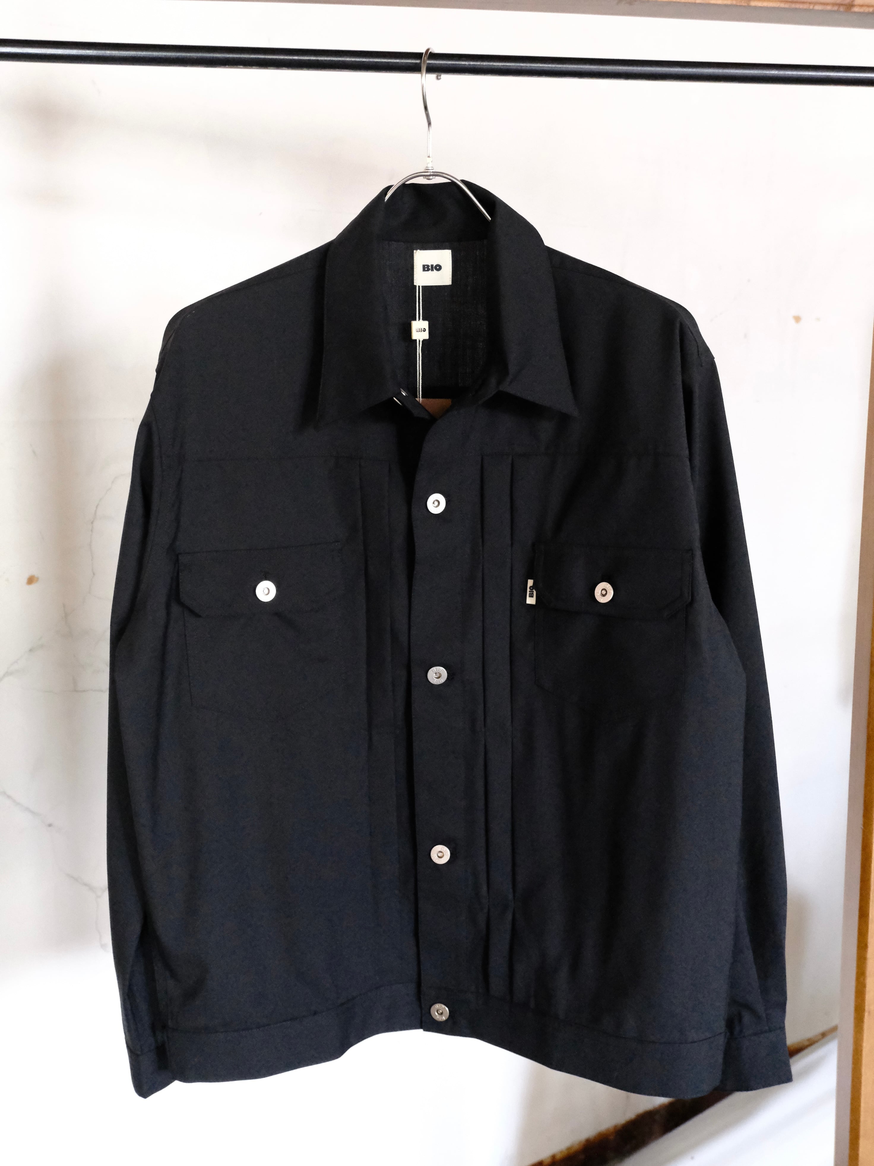 WIDE SLACKSのブラックと同生地となっているので、セットアップでも着用可能。