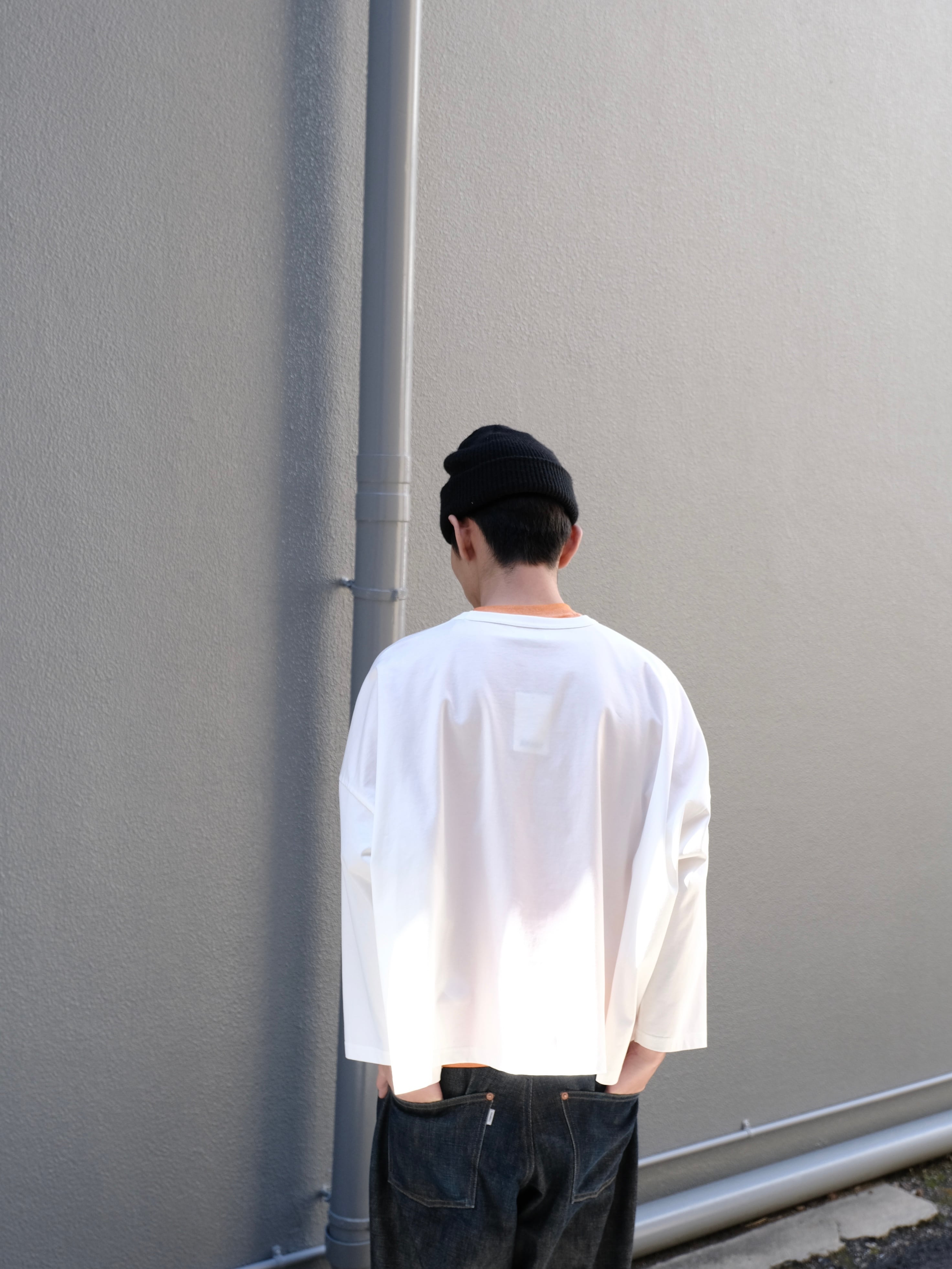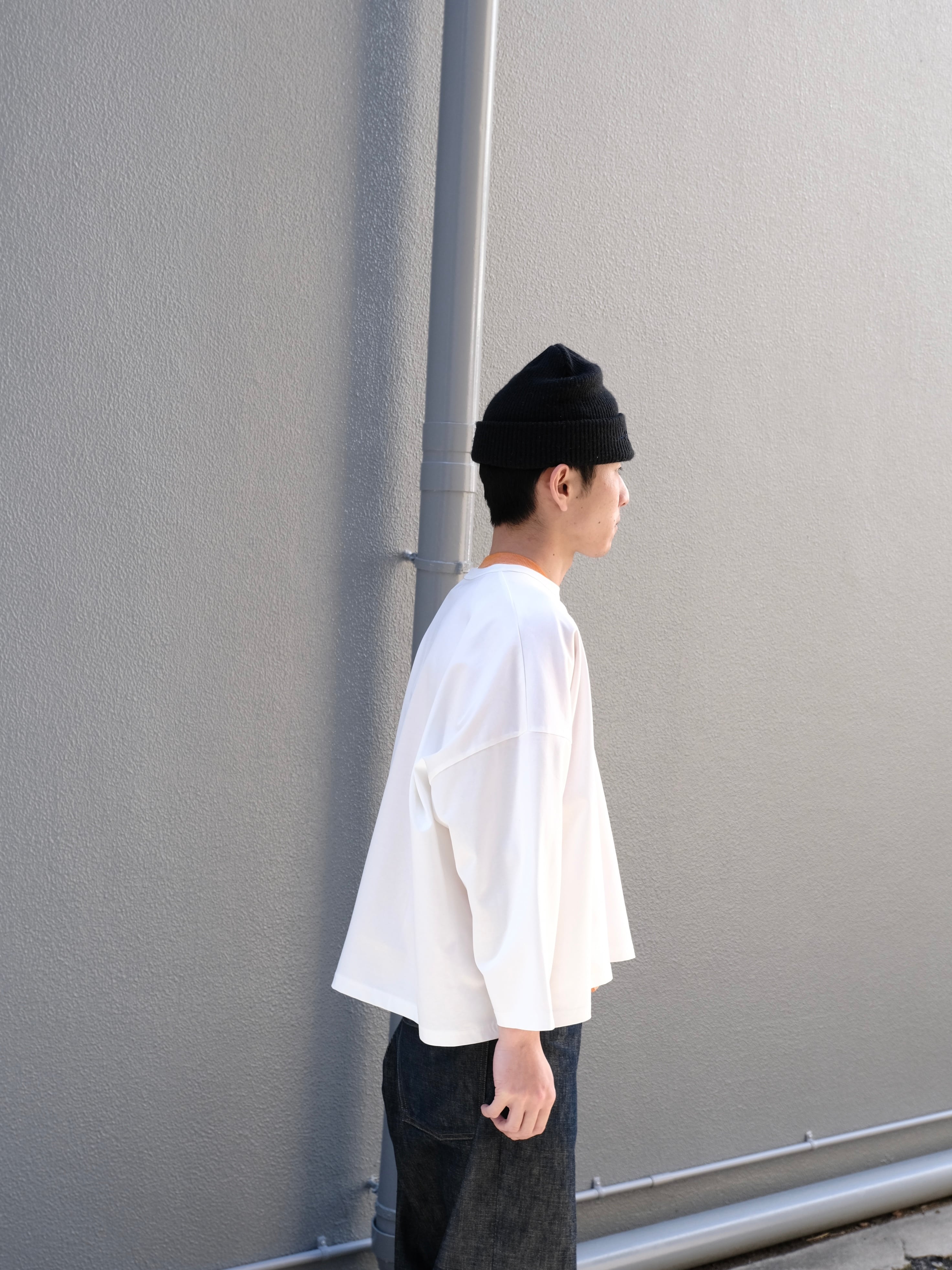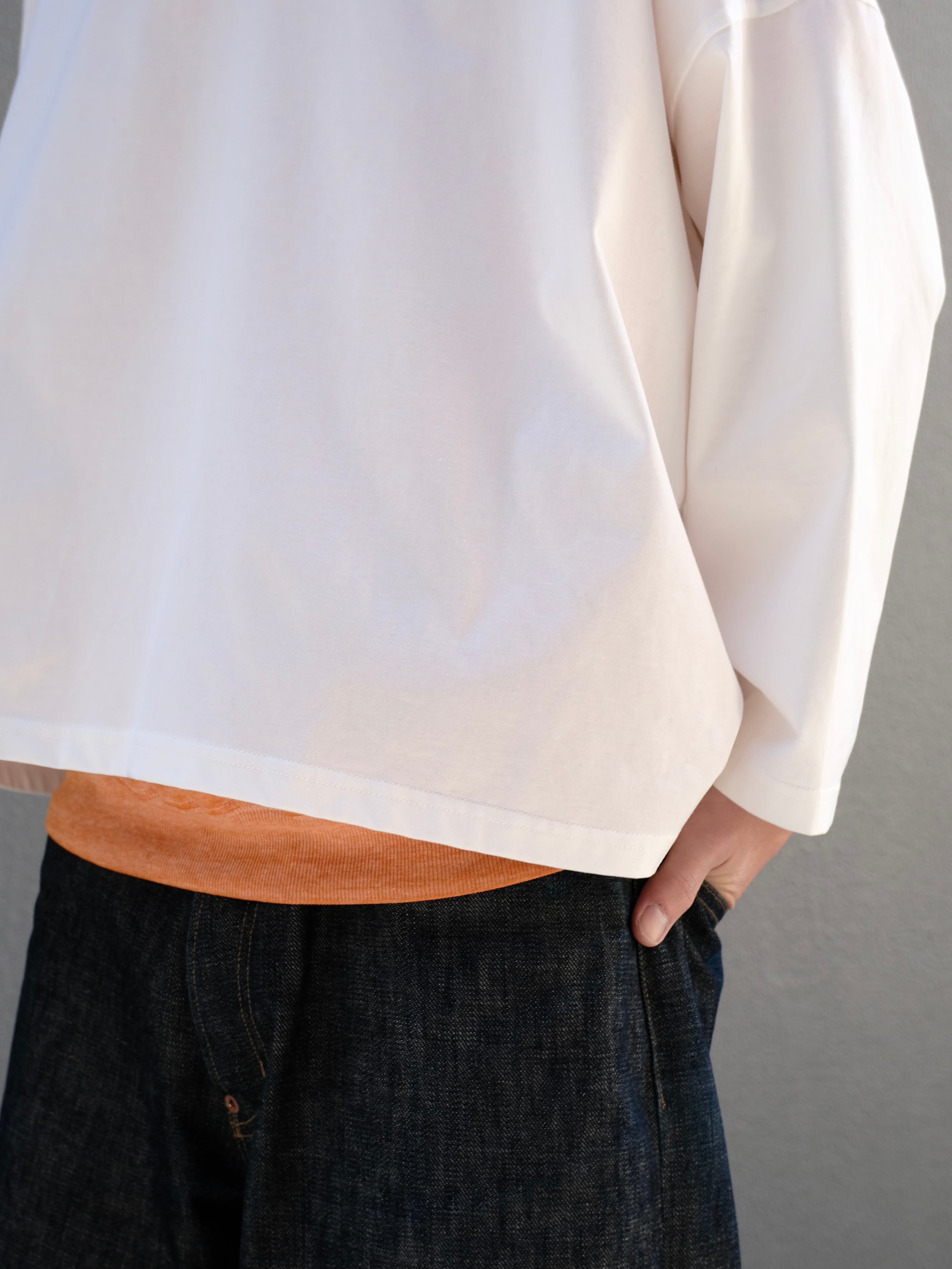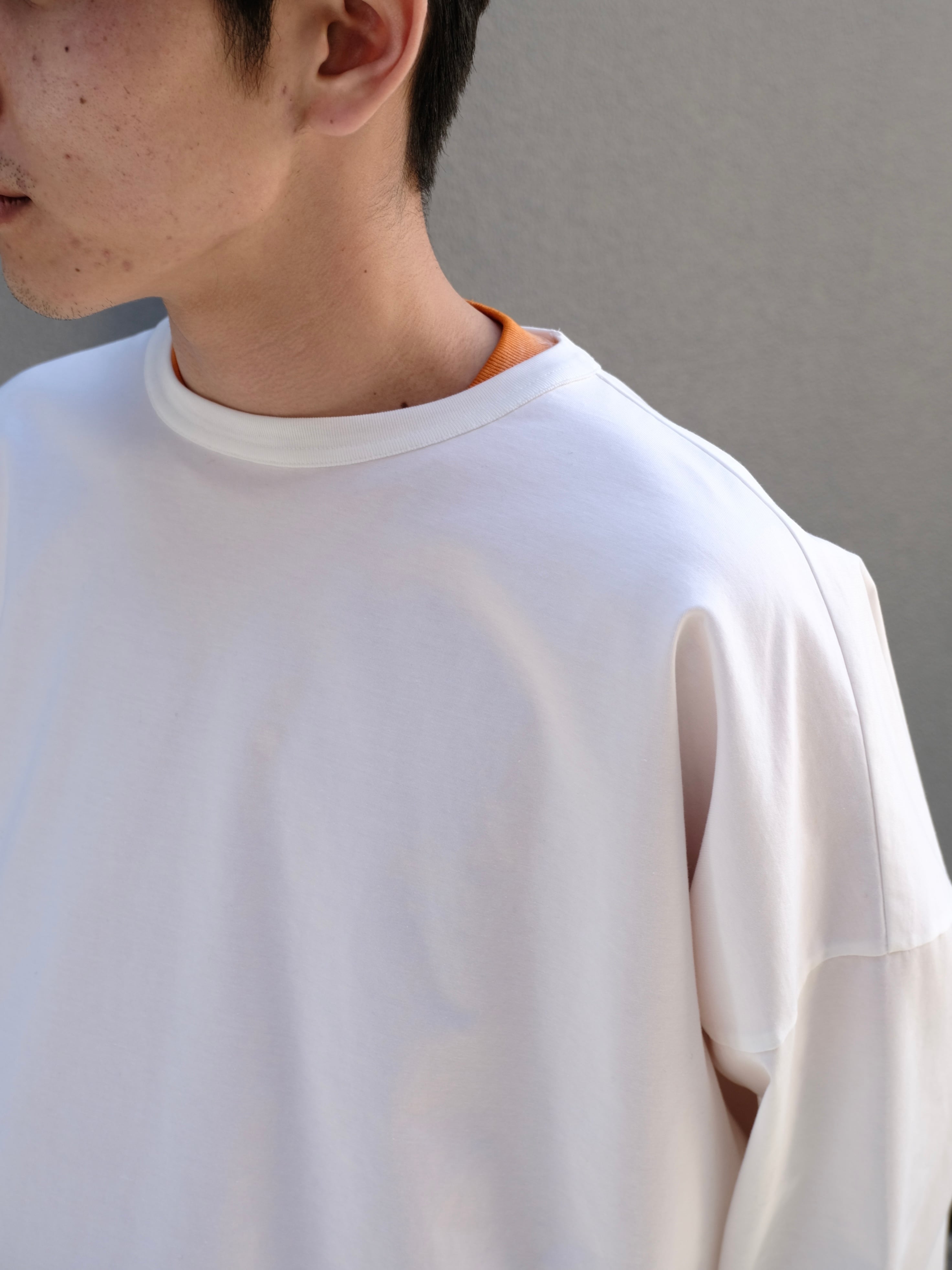 身幅をぐっと伸ばしたシルエットのTシャツ。