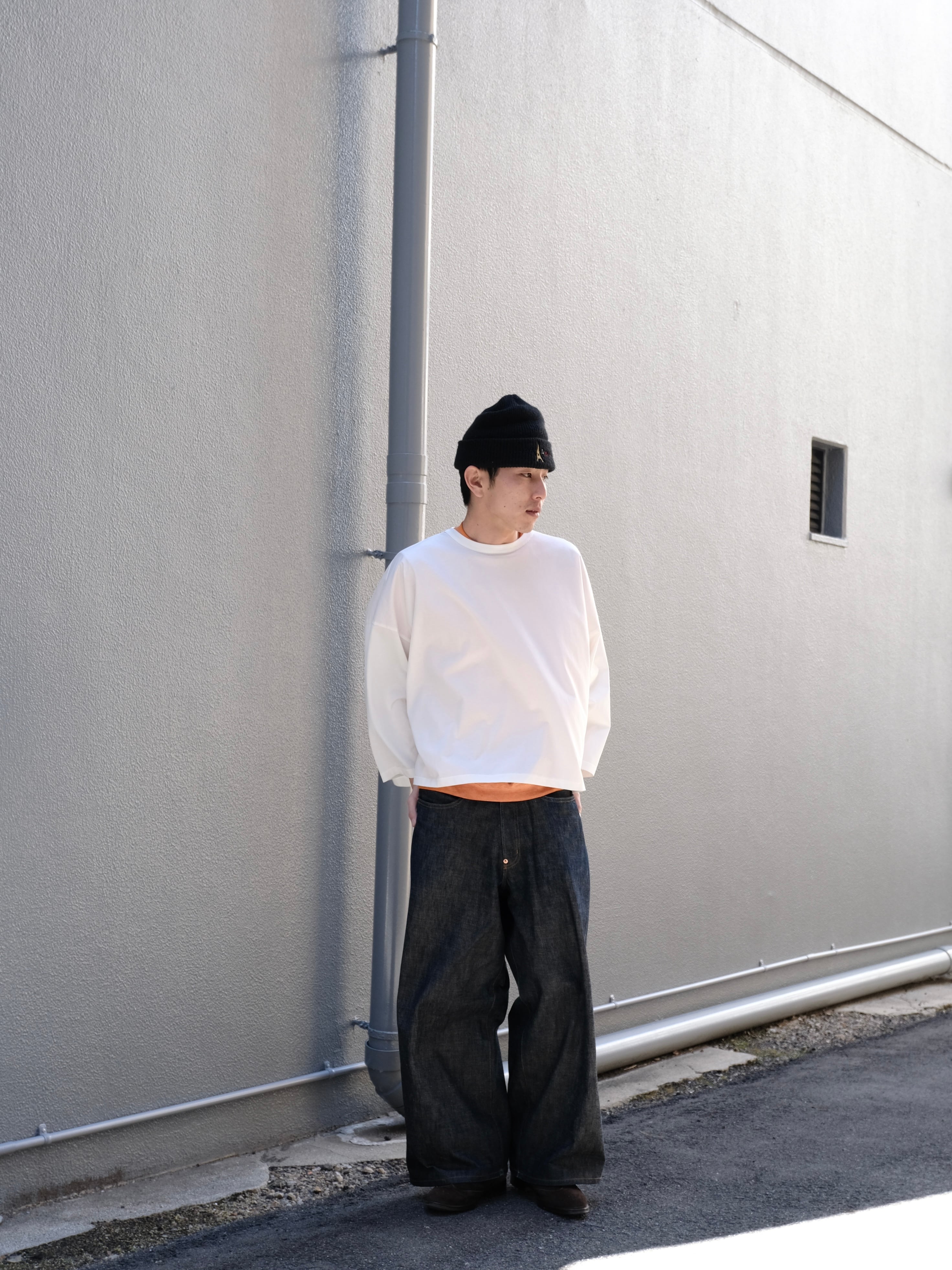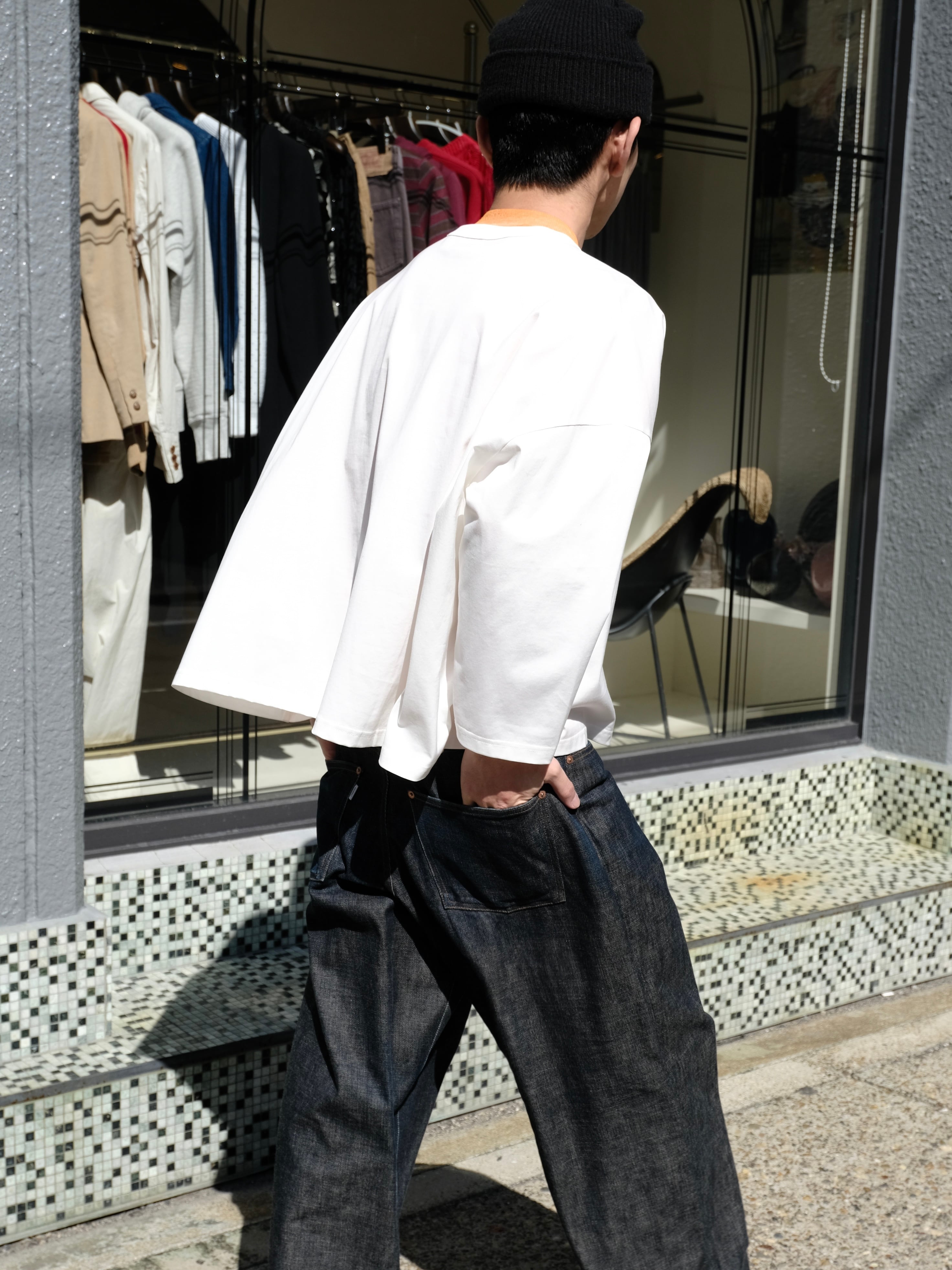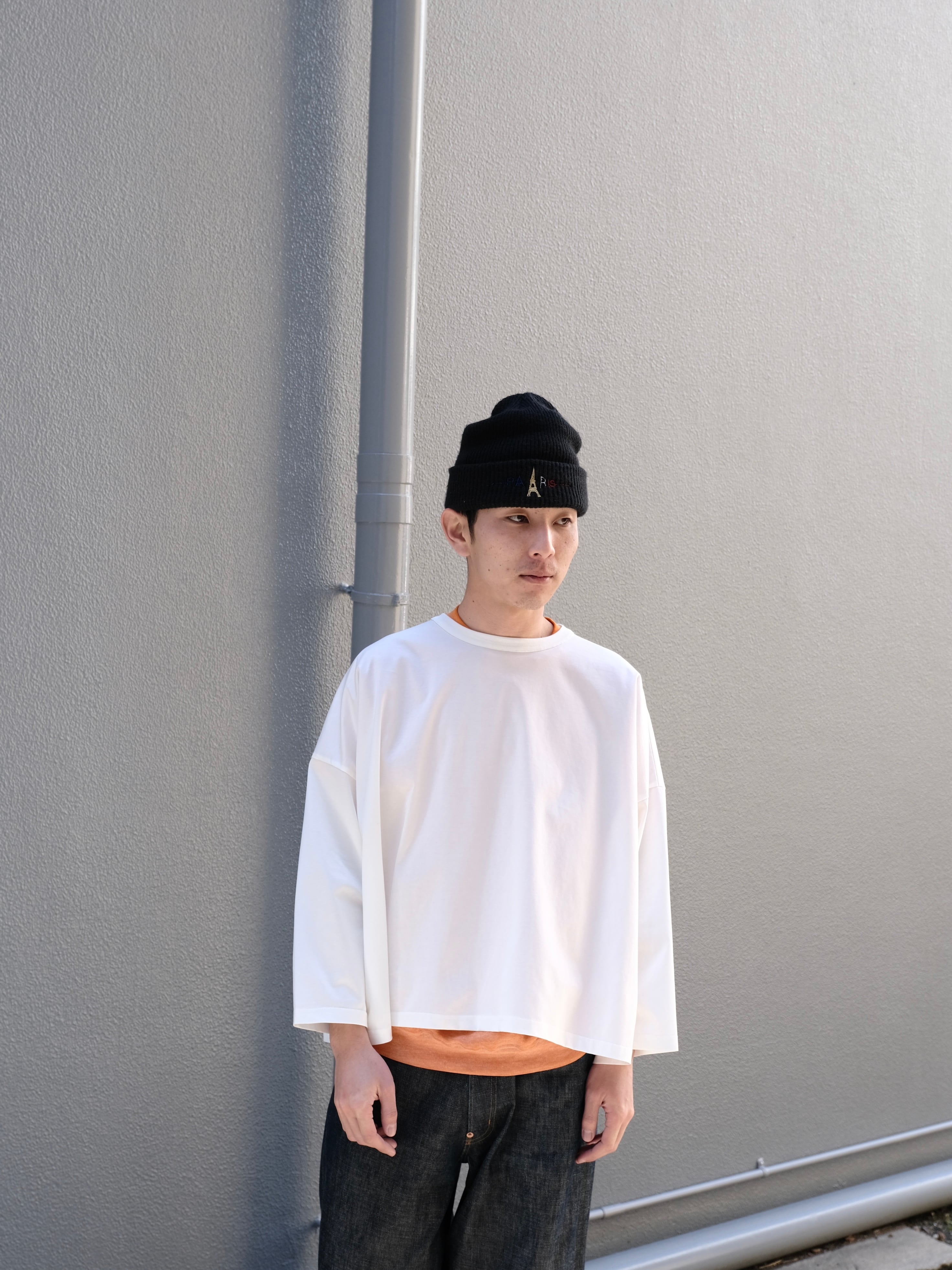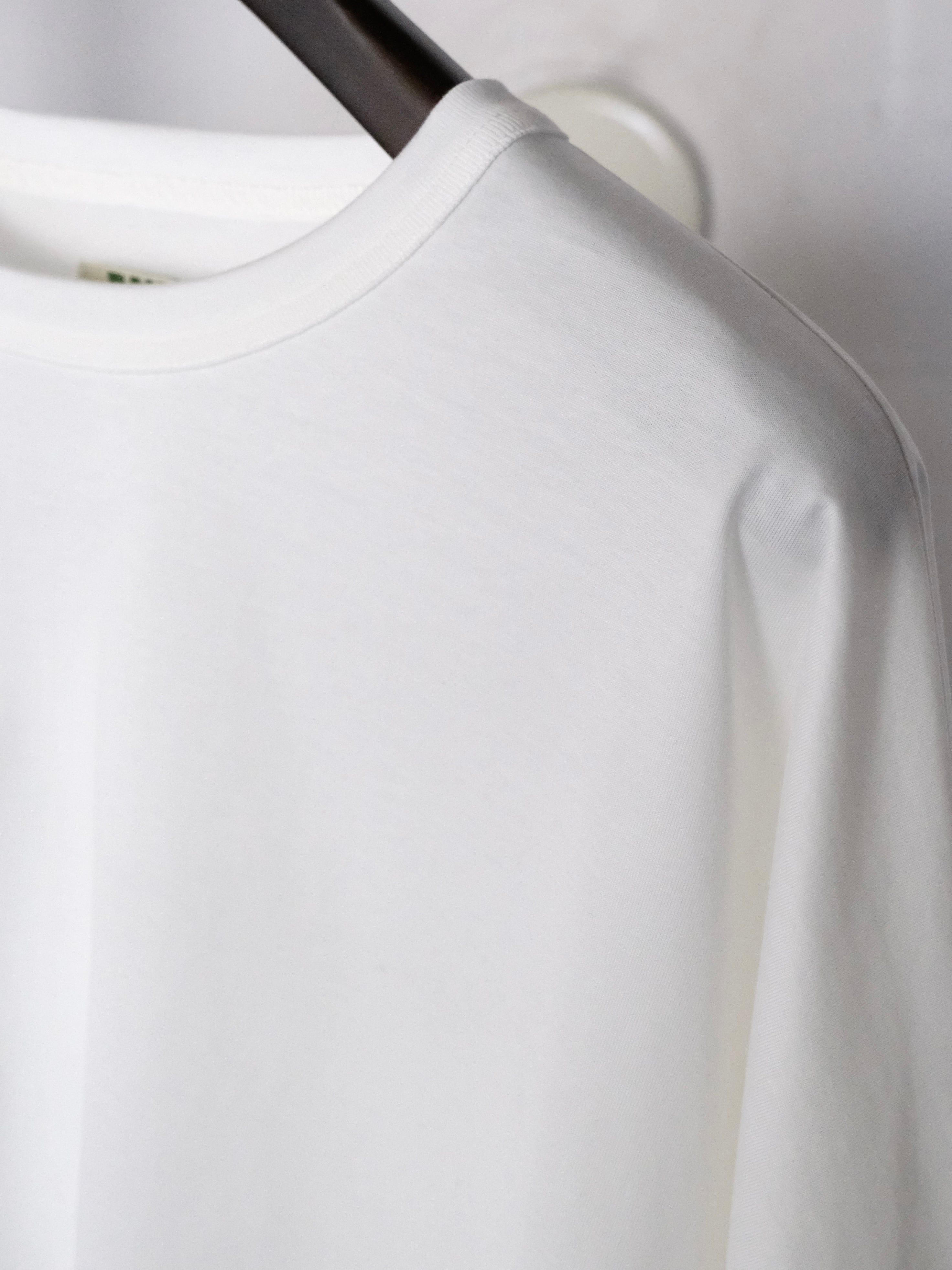 身幅をぐっと伸ばしたシルエットのTシャツ。