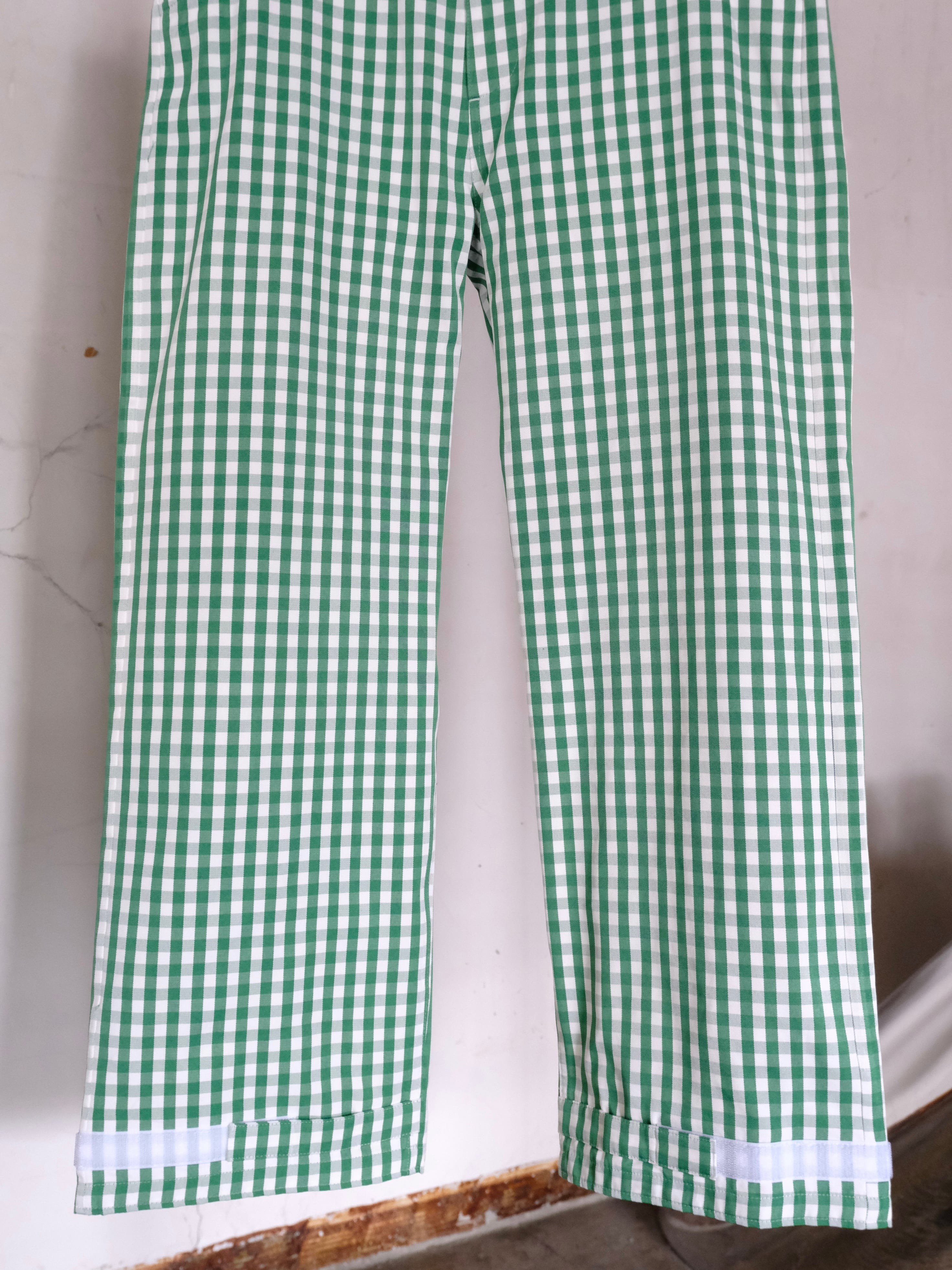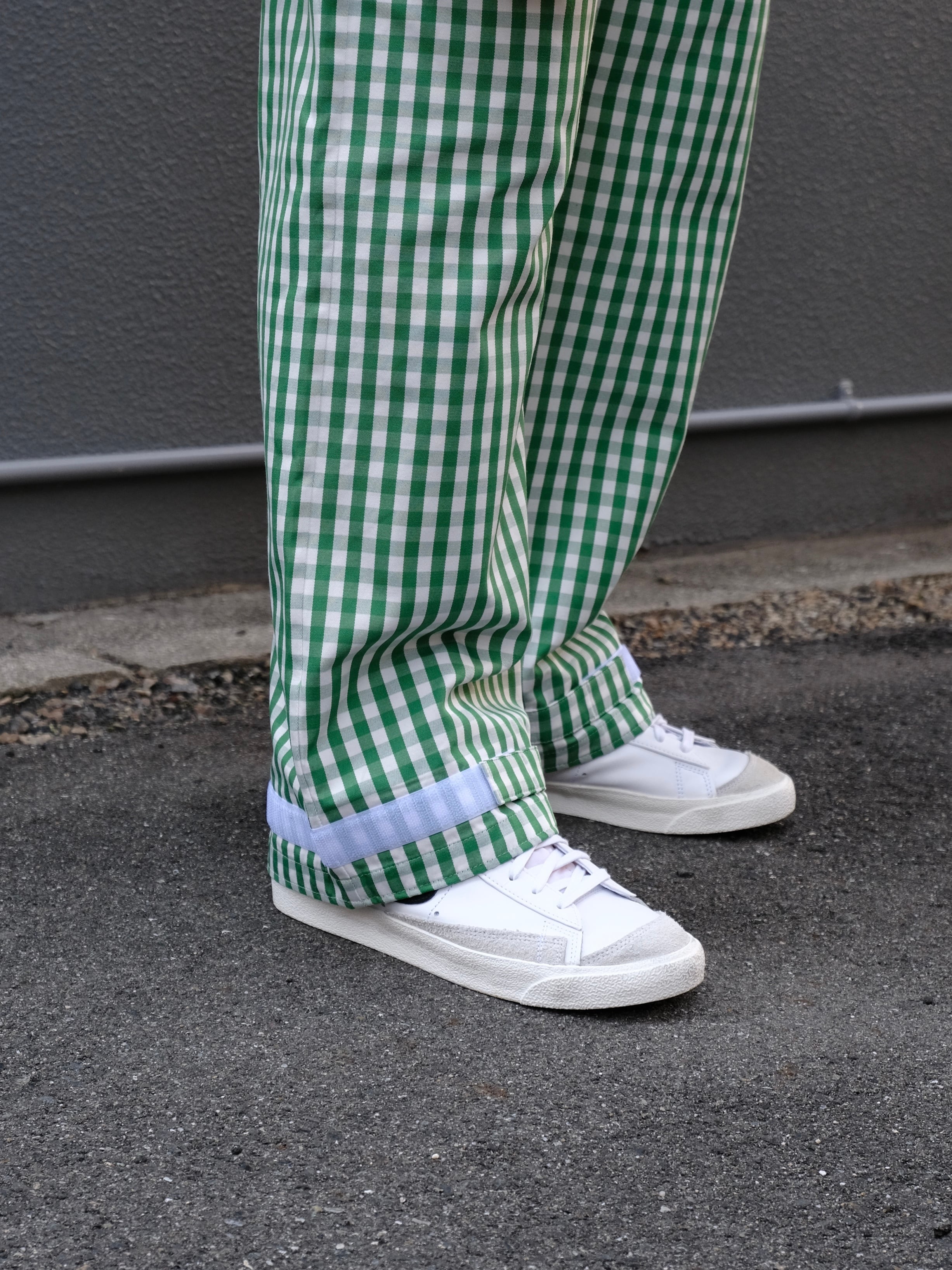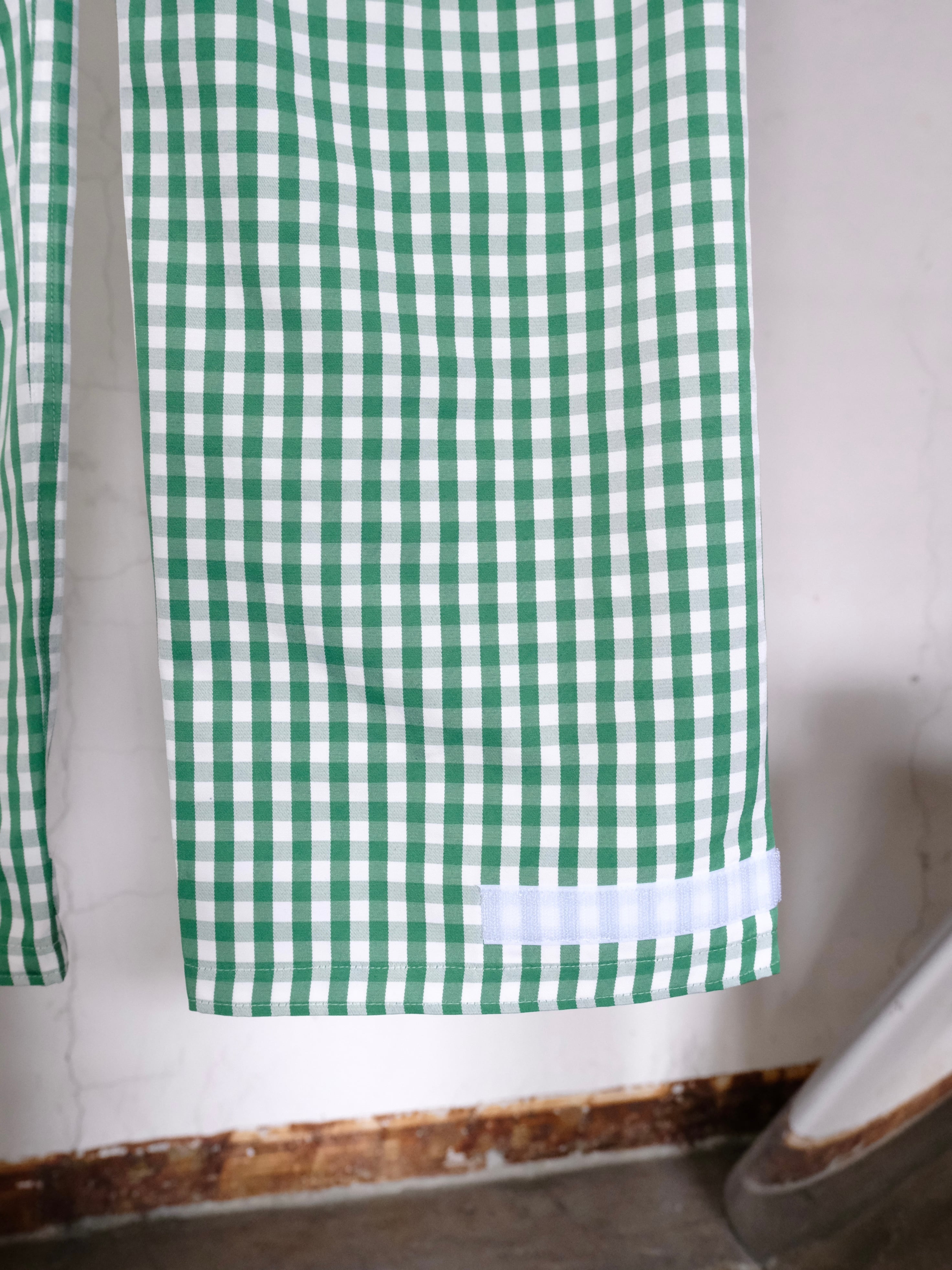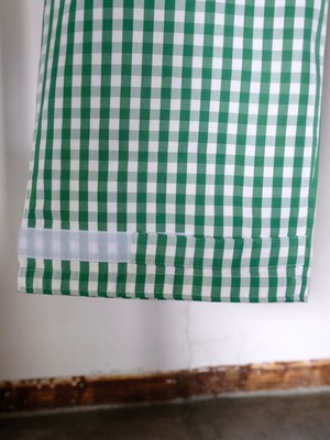 デザイナーの相川氏が裾を引きづることがとても苦手なのでマジックテープでキュっと留める仕様を施した1本。
