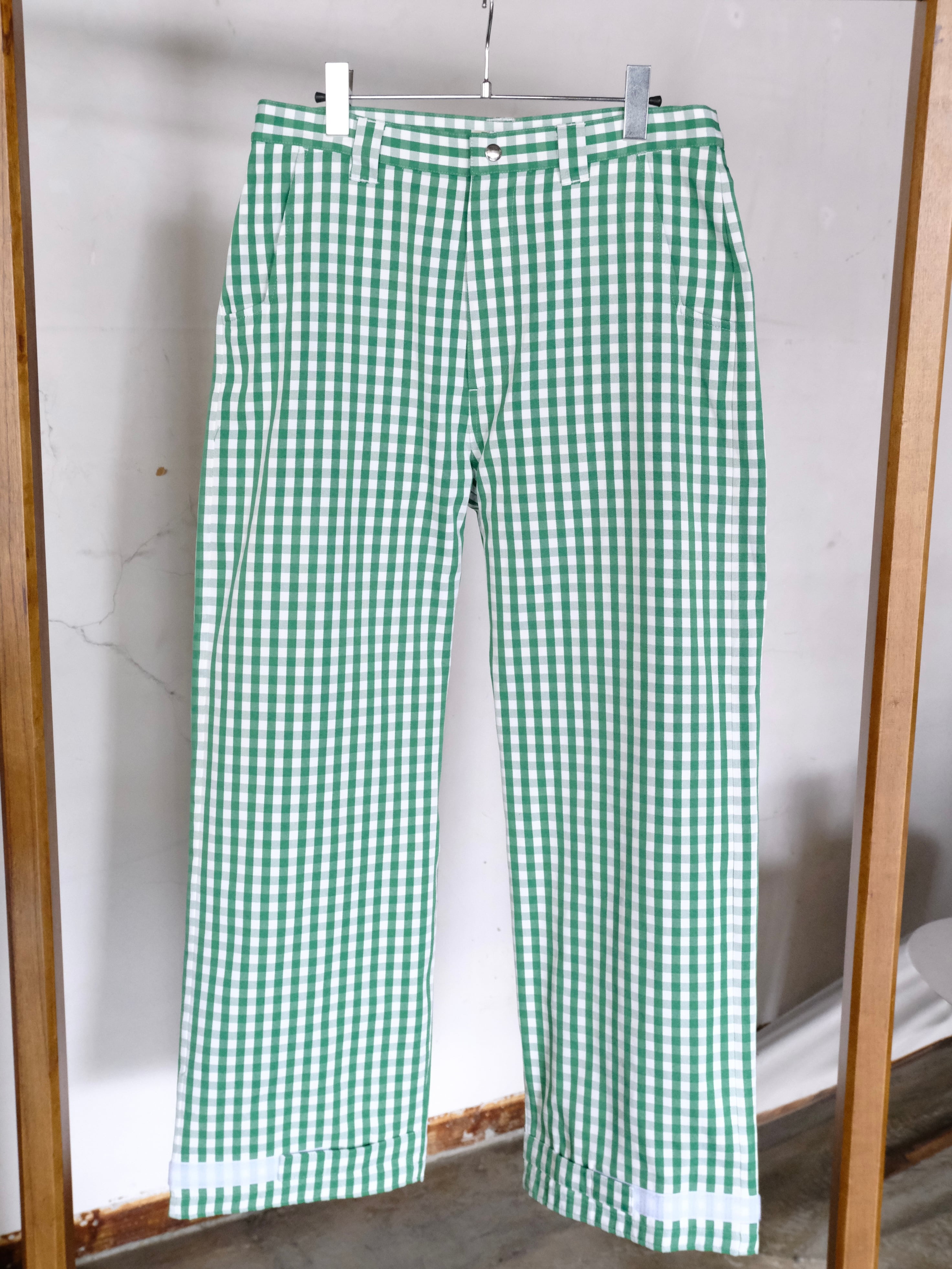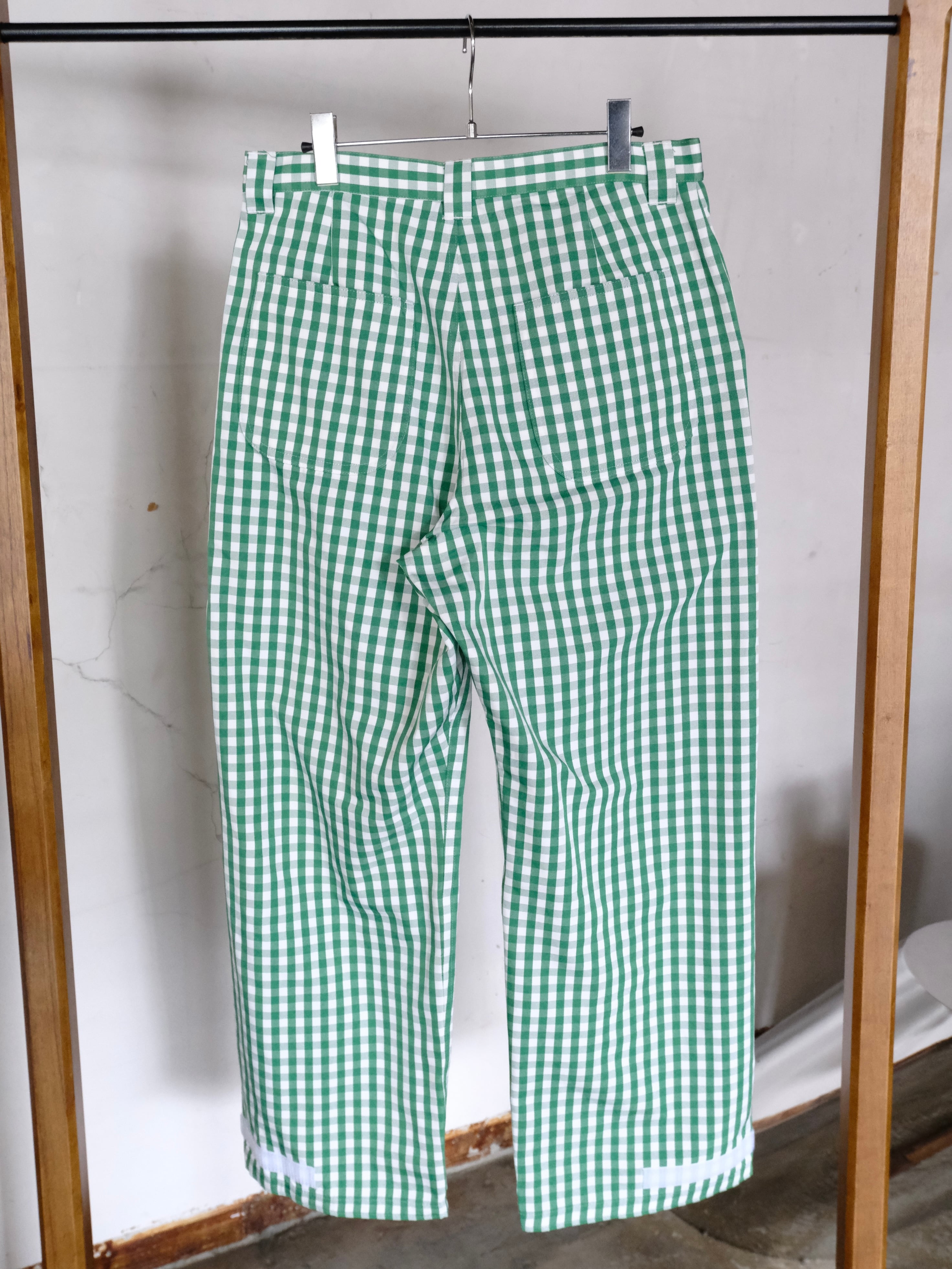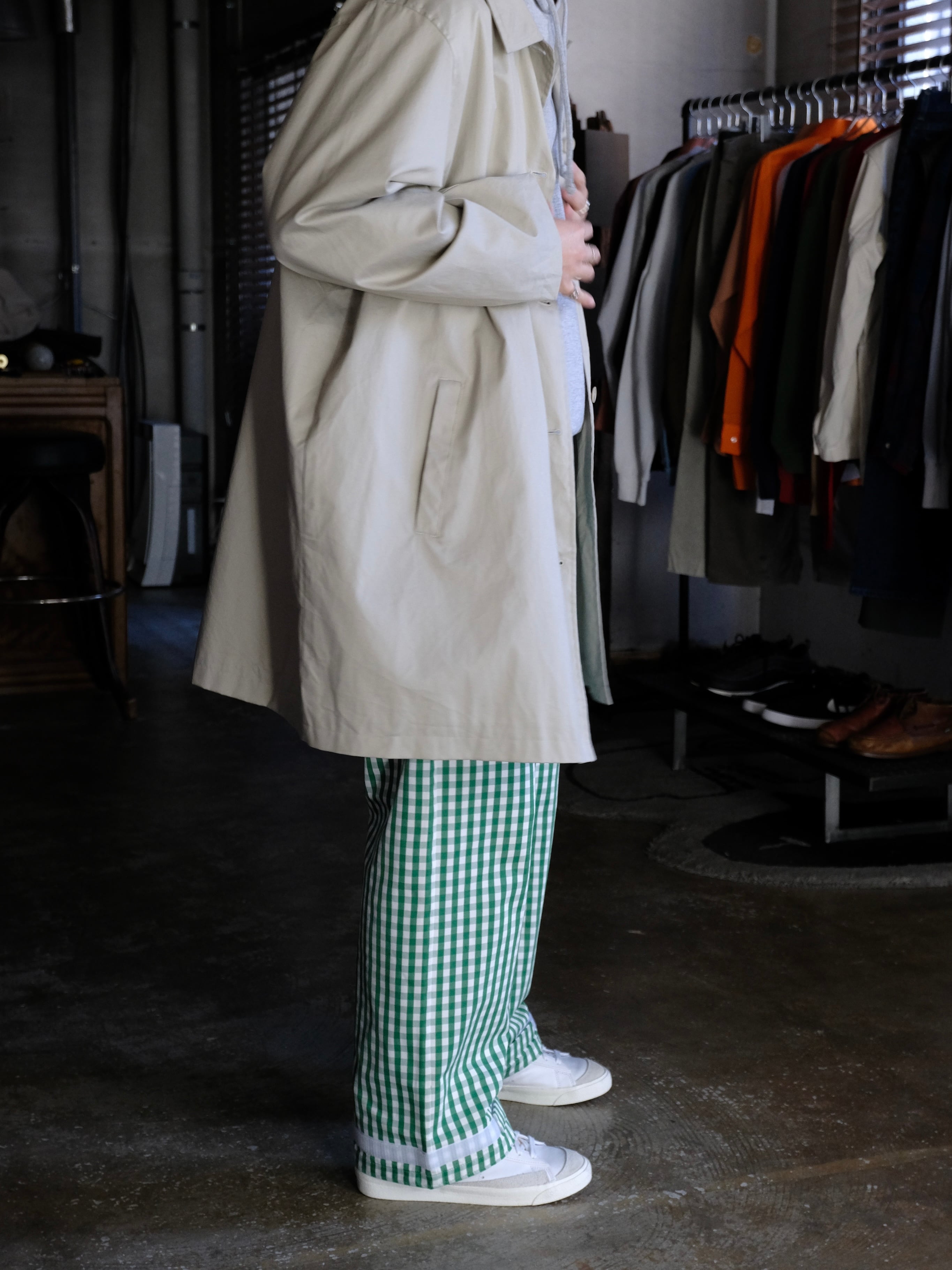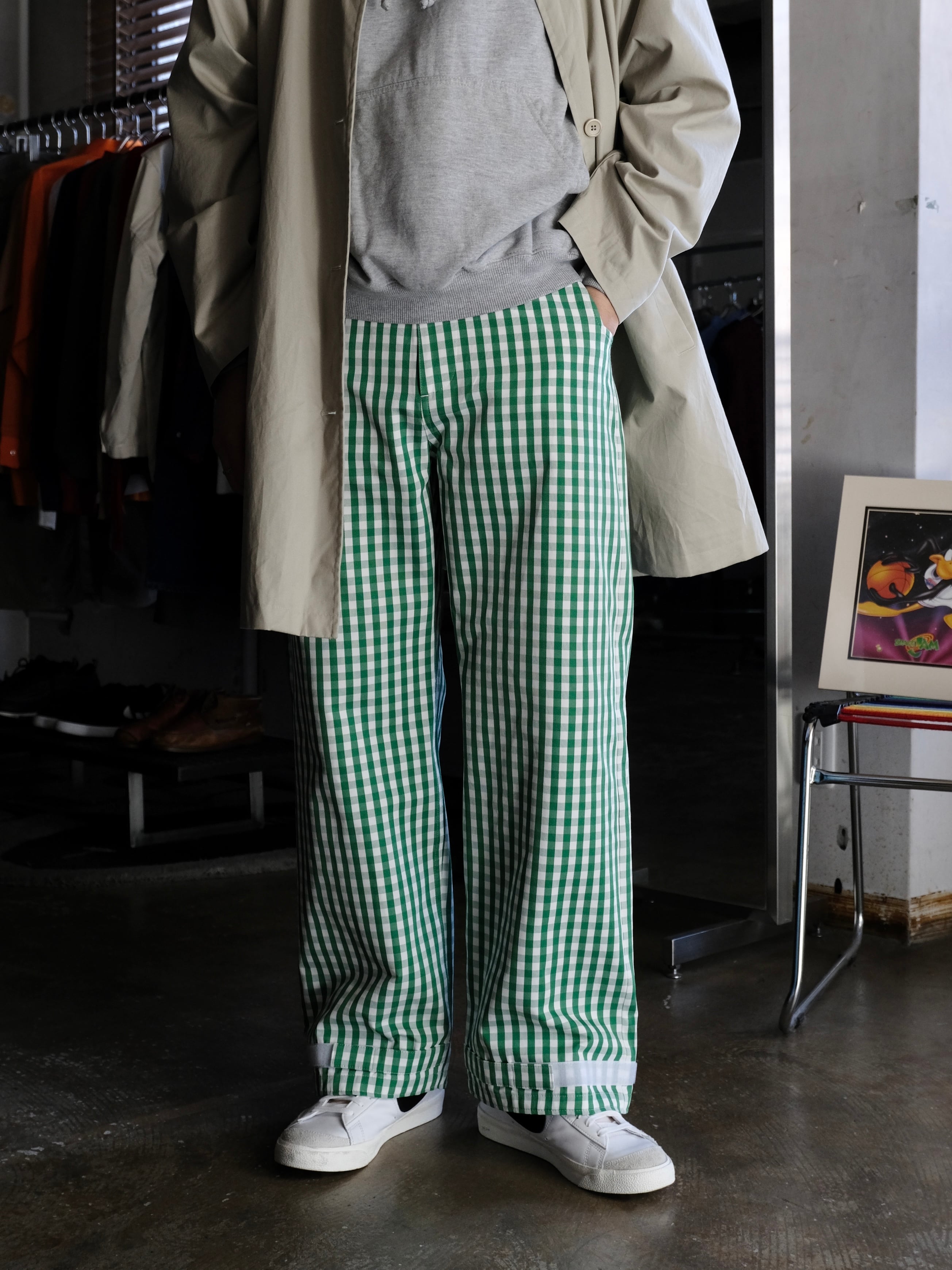 デザイナーの相川氏が裾を引きづることがとても苦手なのでマジックテープでキュっと留める仕様を施した1本。