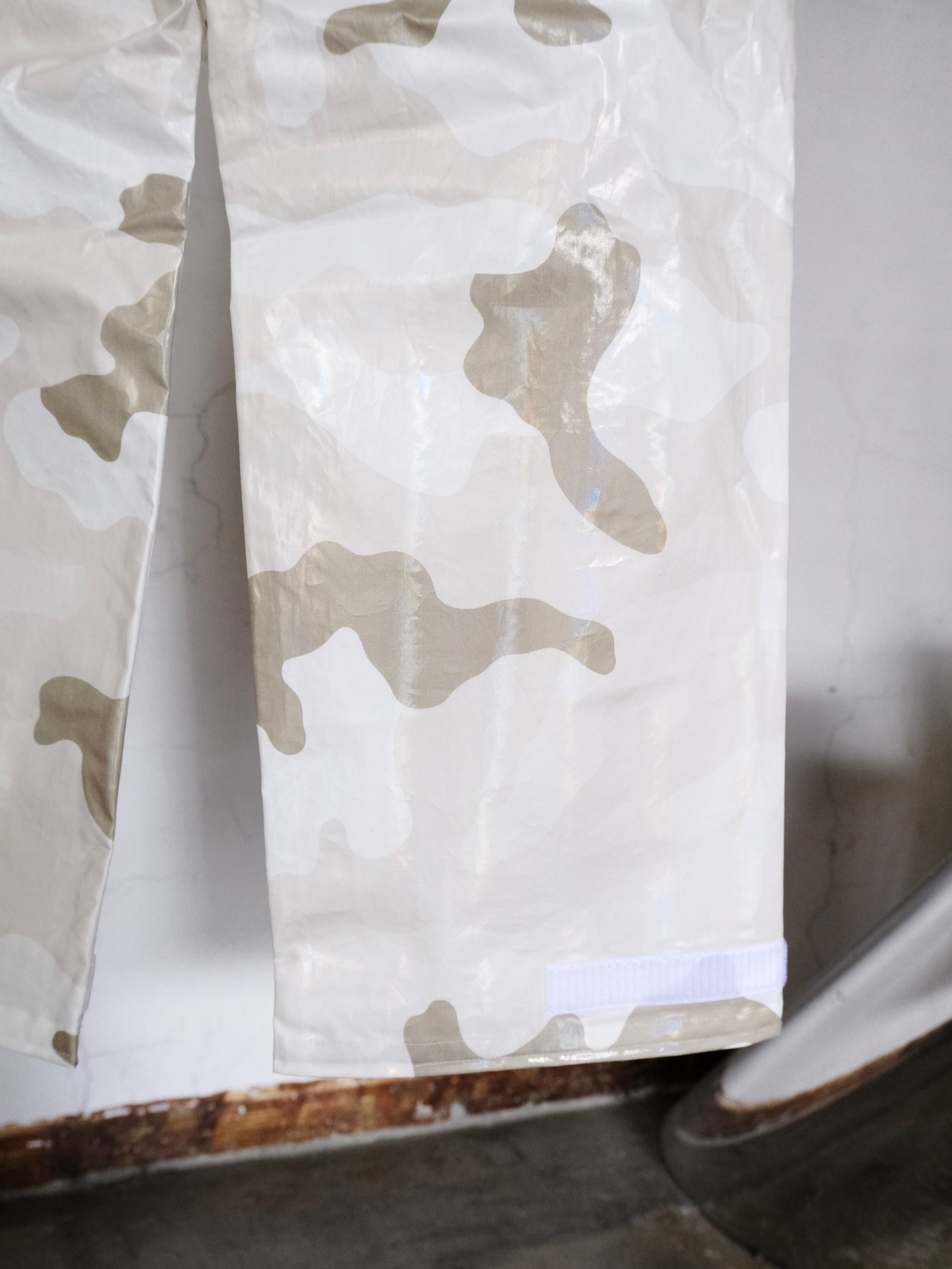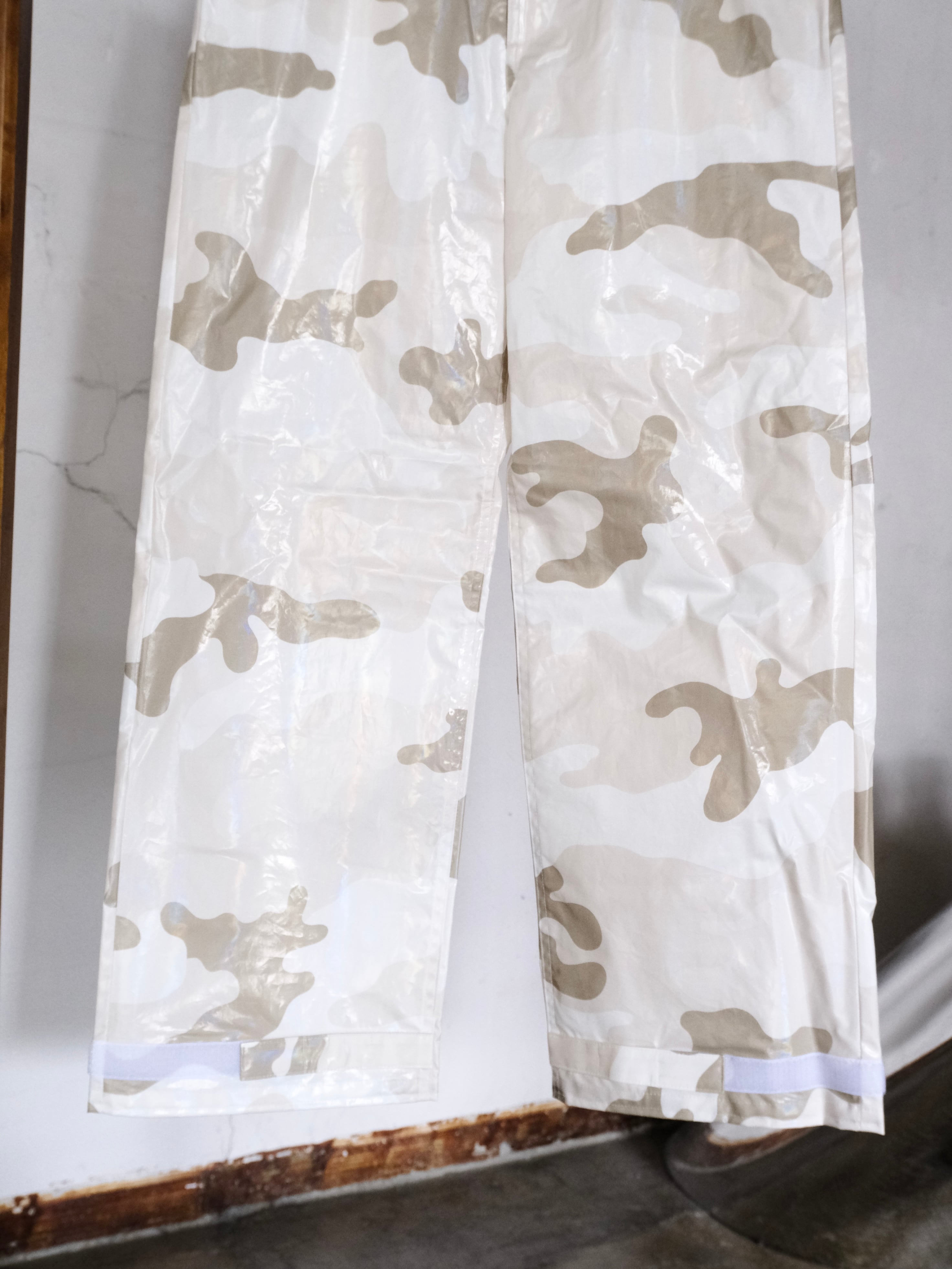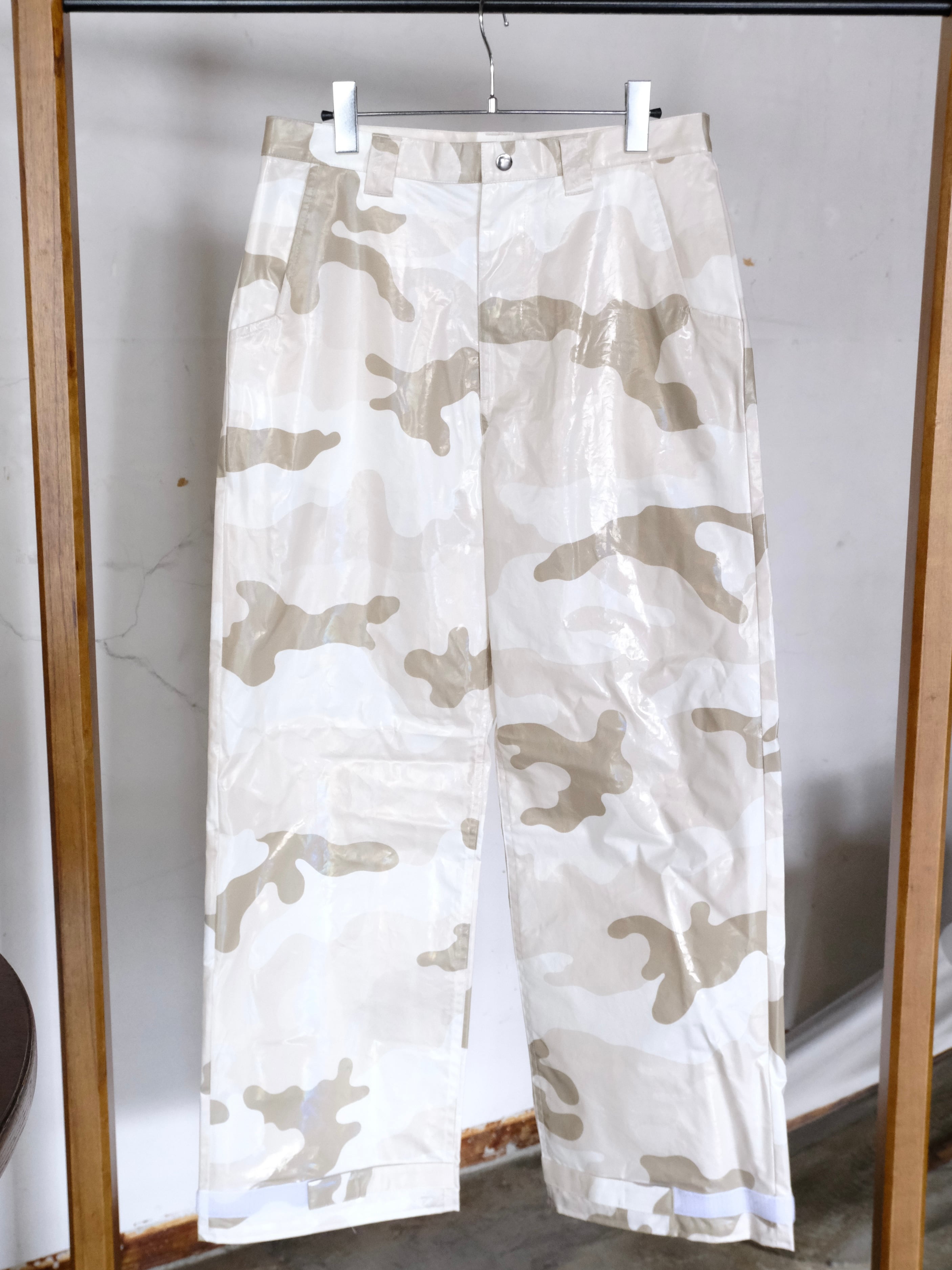 デザイナーの相川氏が裾を引きづることがとても苦手なのでマジックテープでキュっと留める仕様を施した1本。