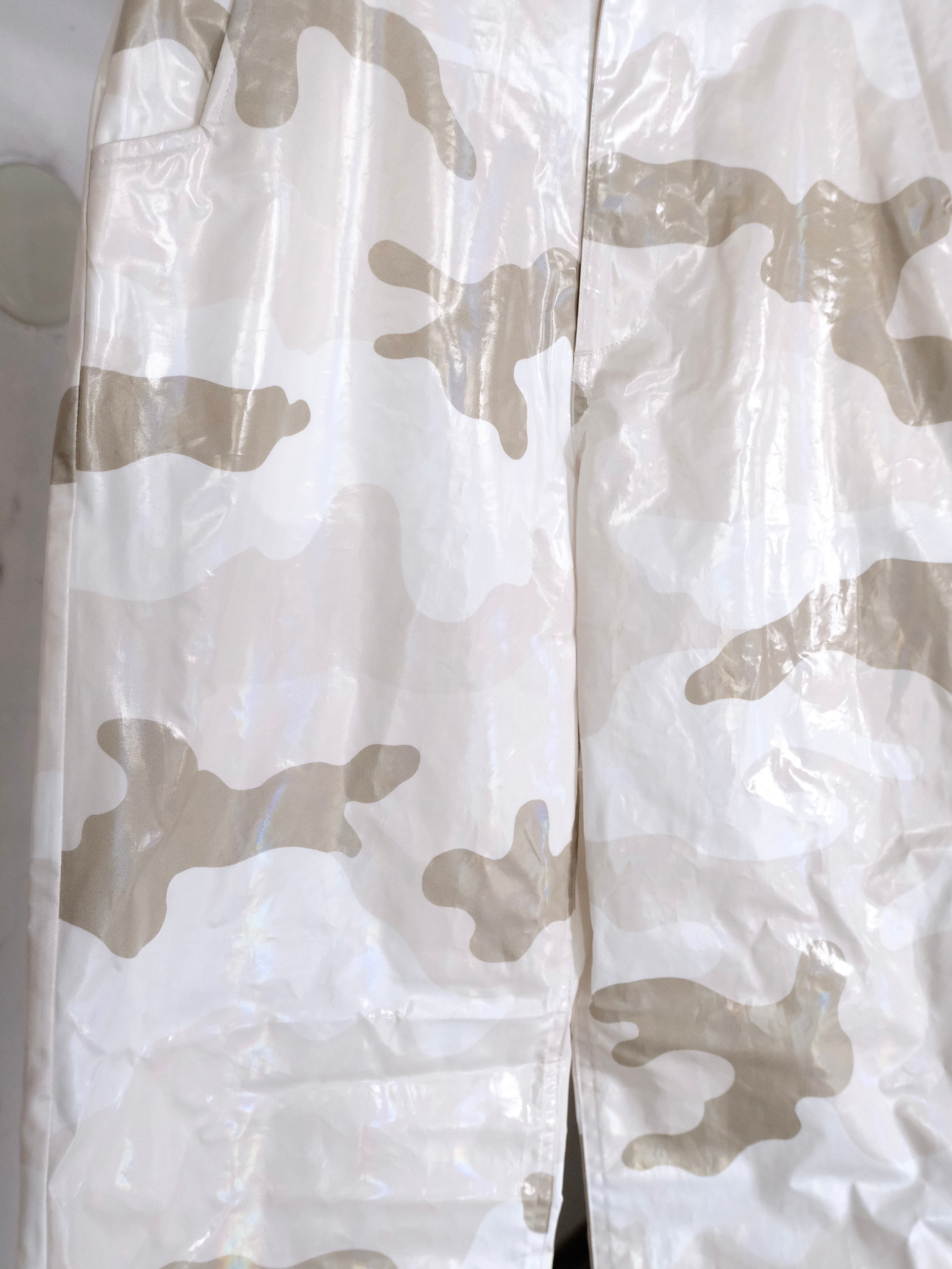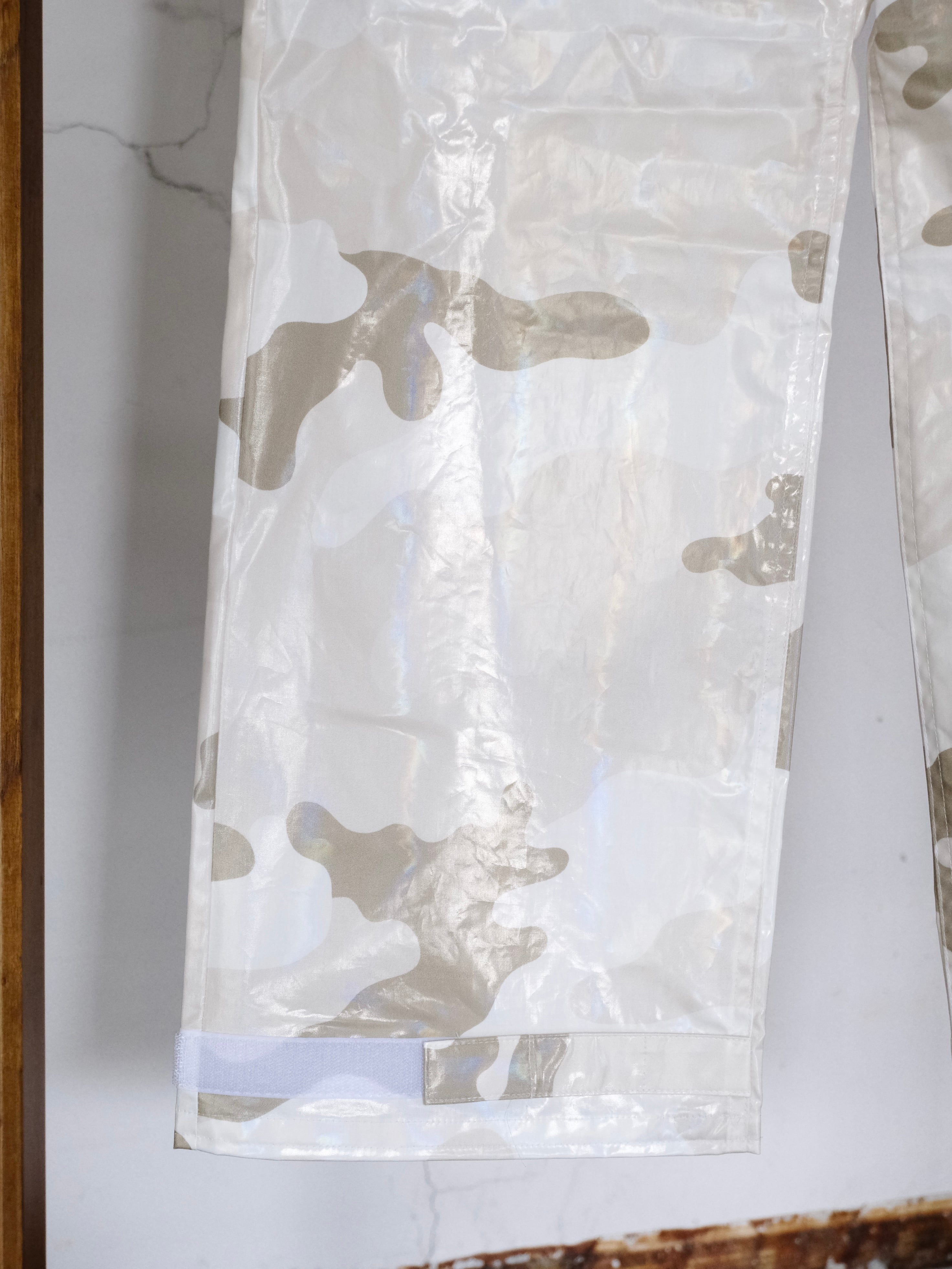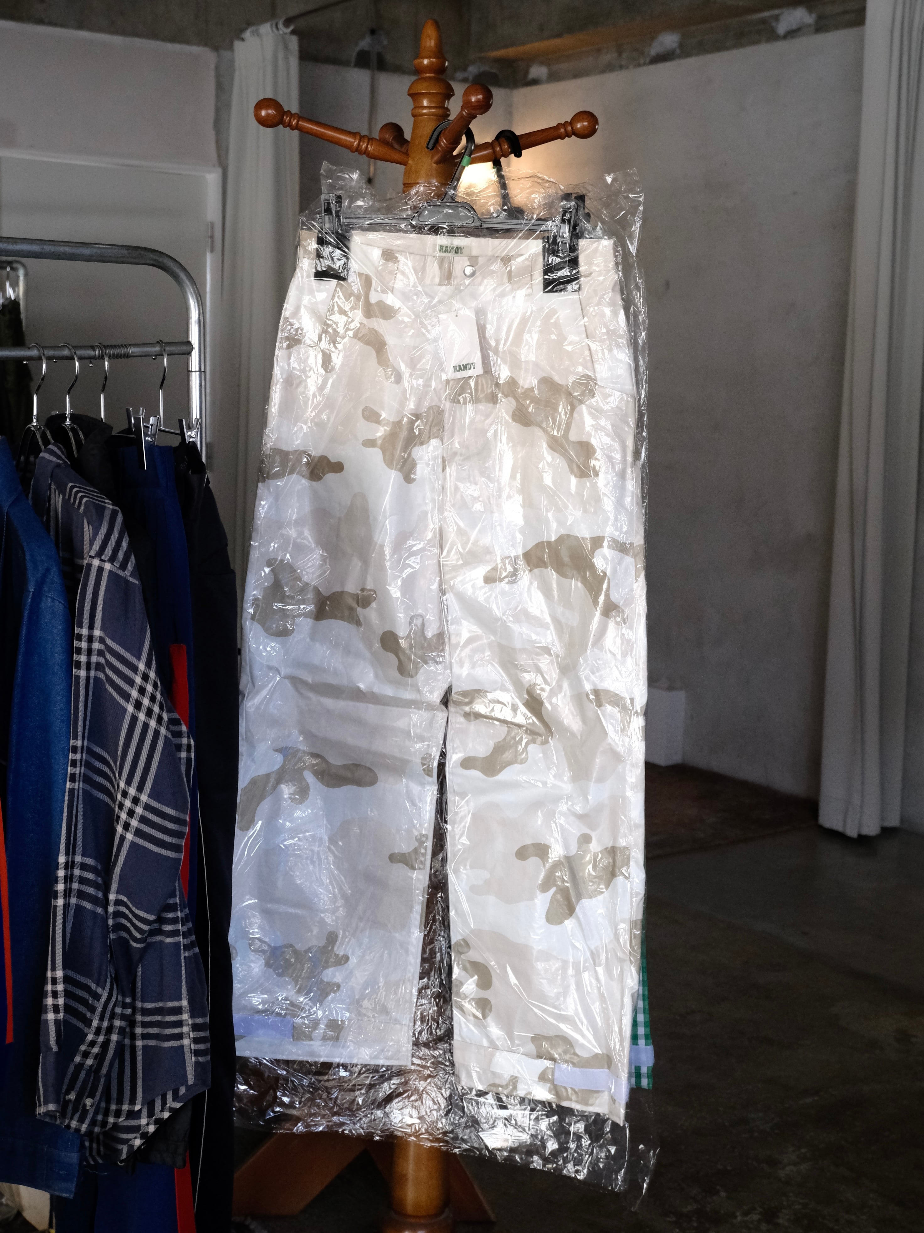 デザイナーの相川氏が裾を引きづることがとても苦手なのでマジックテープでキュっと留める仕様を施した1本。