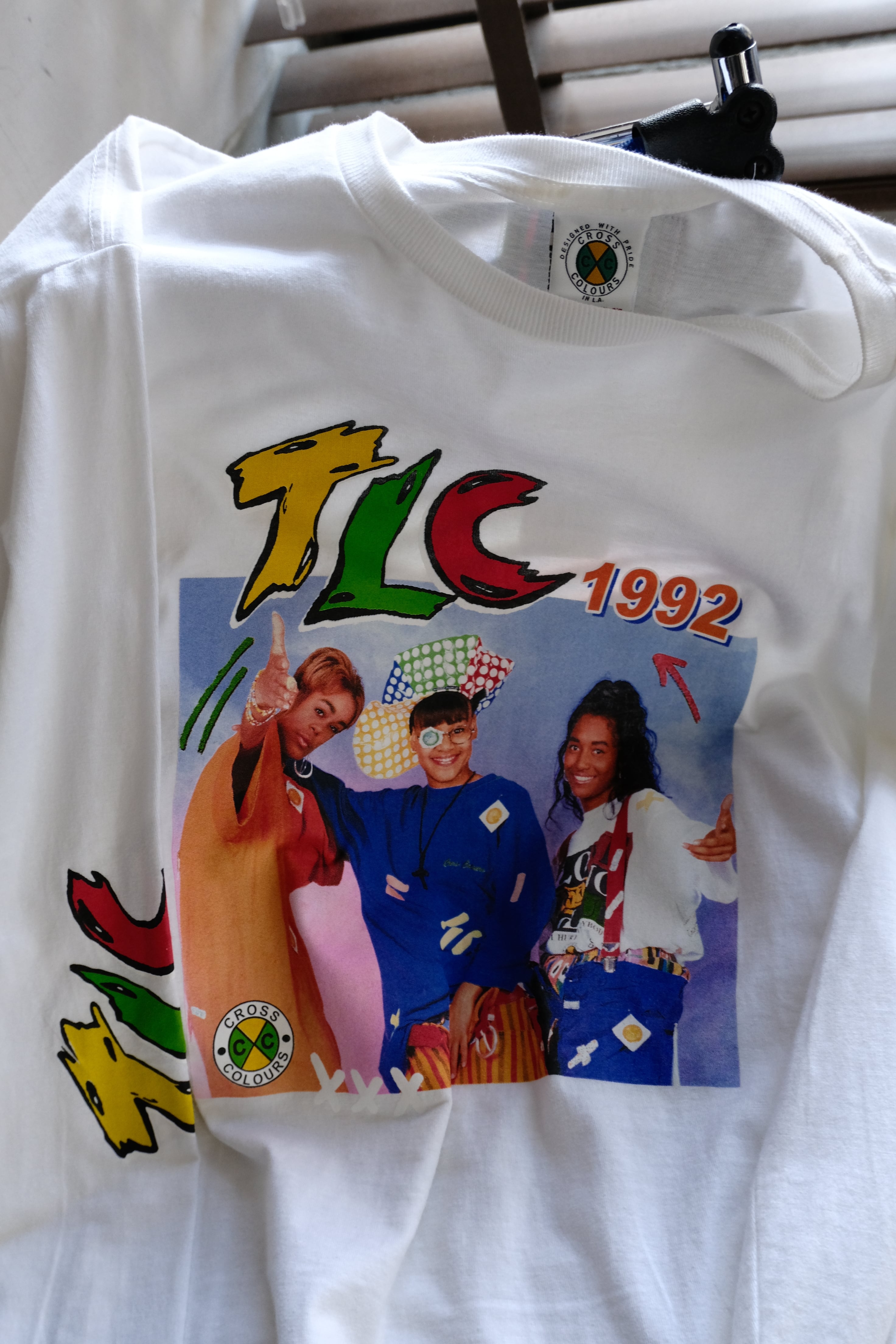 R&Bグループ"TLC"のデビュー当時の写真がプリントされた1着。