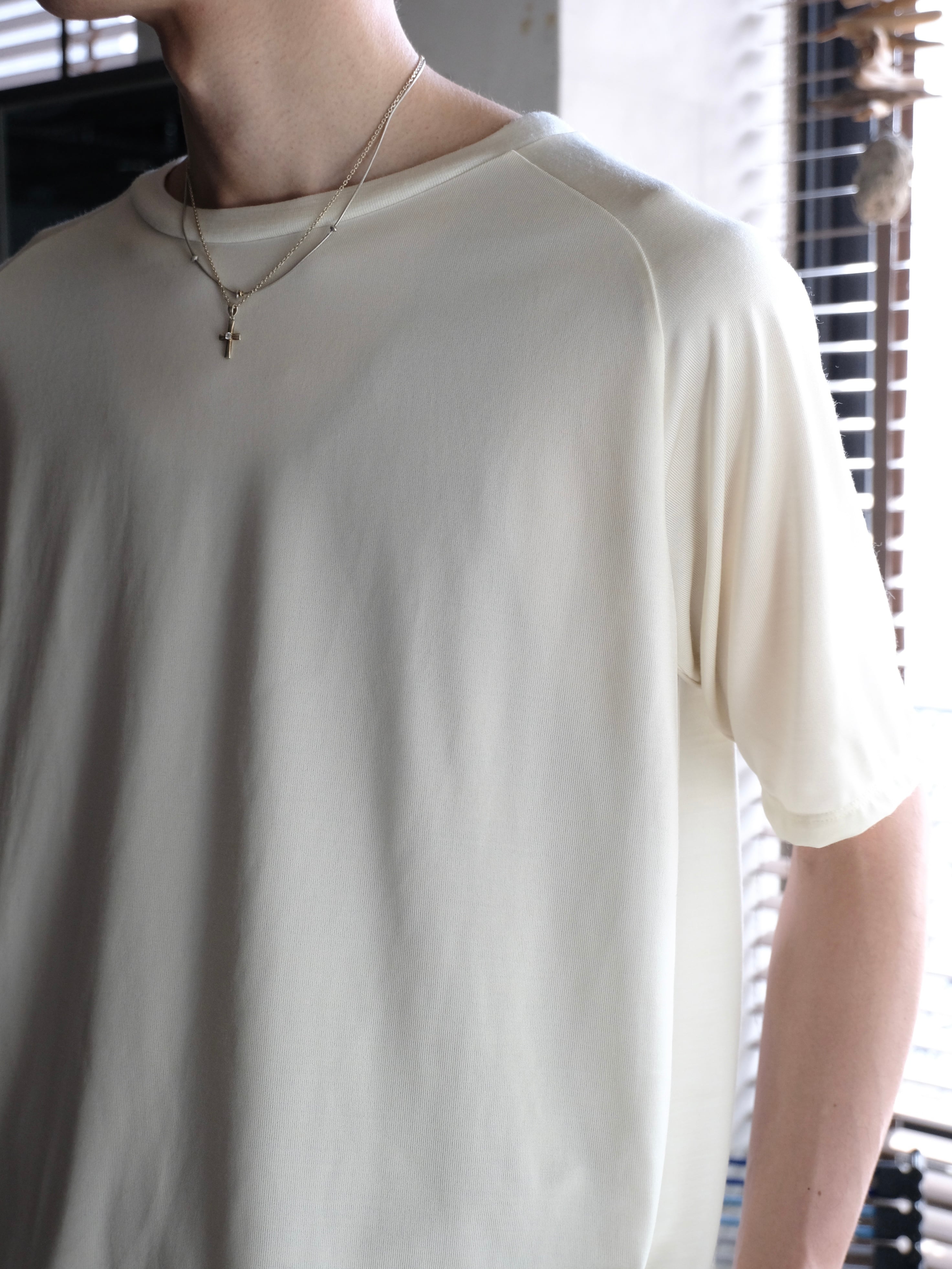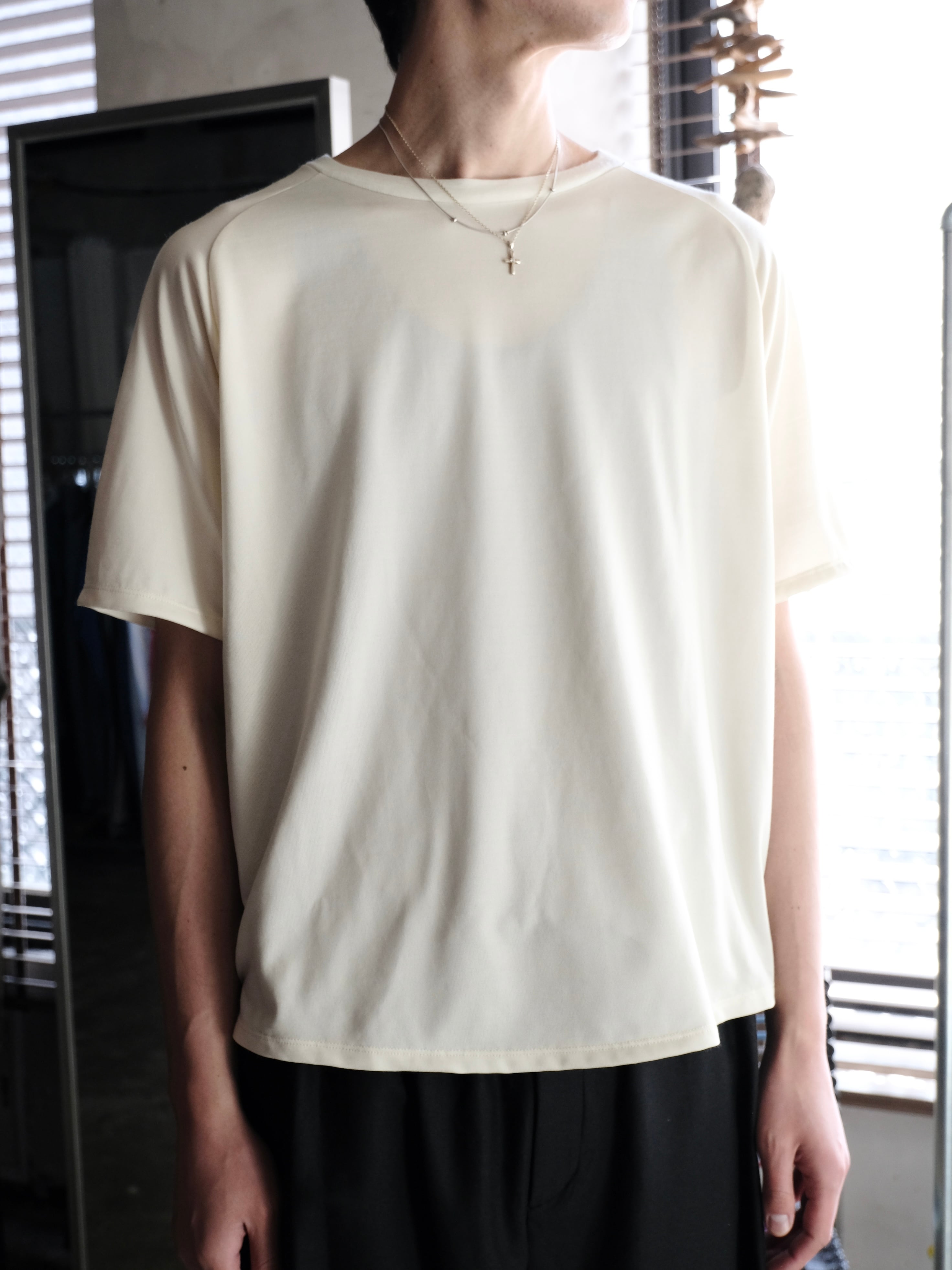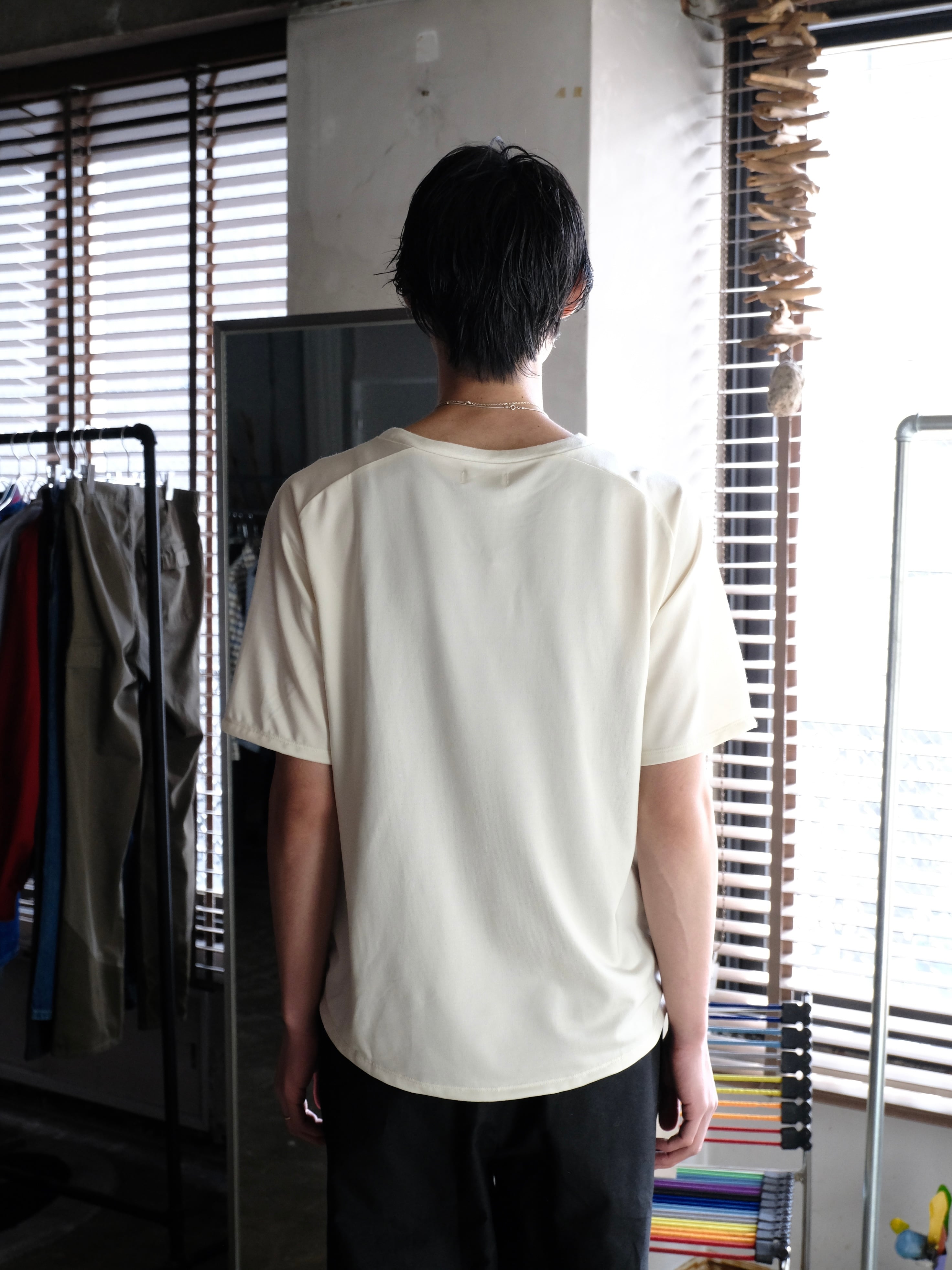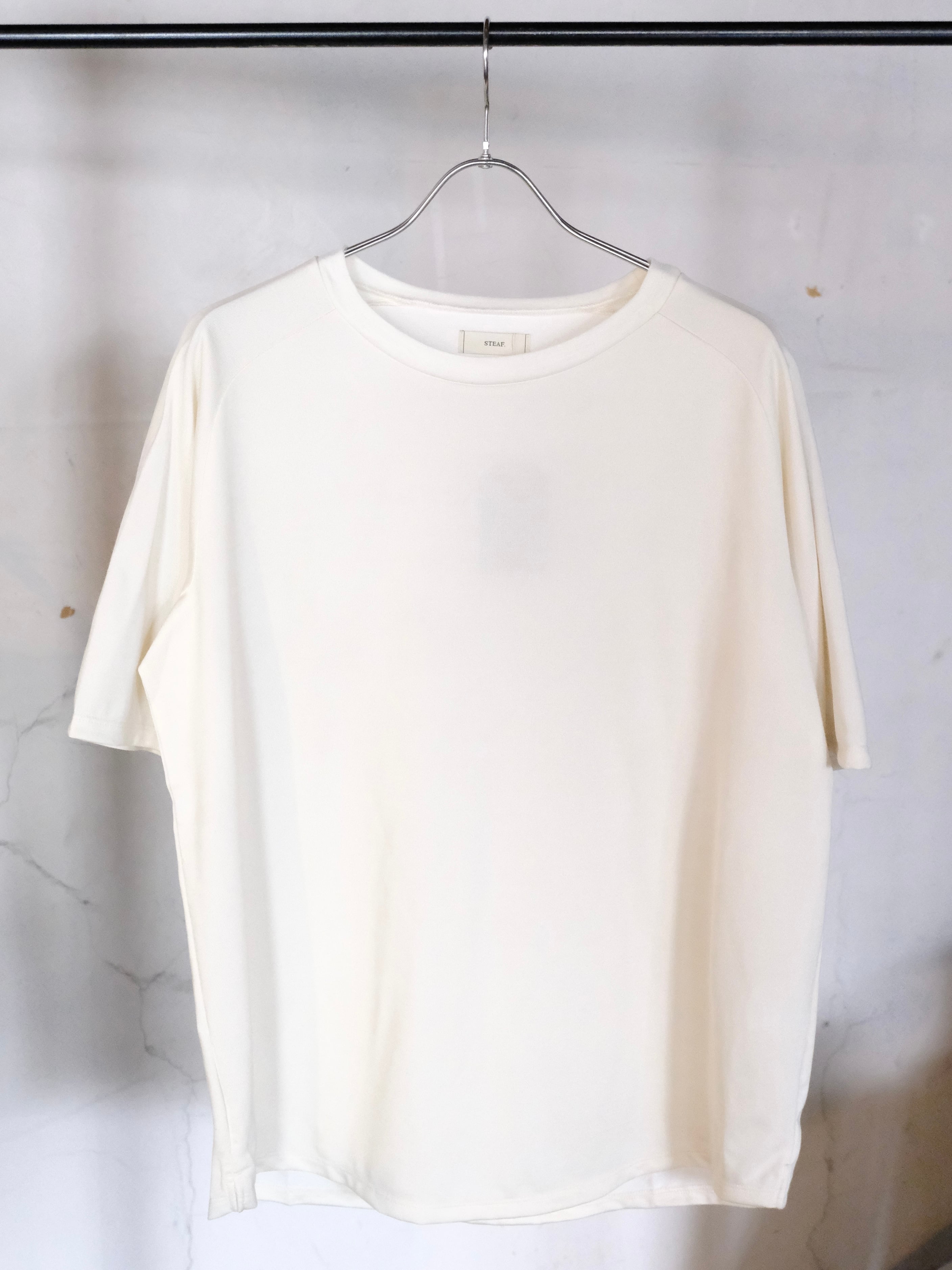STEAFが開発した生地を使用したカットソーが今期は表面ウール、裏面はクールマックスで編み立てた半袖です。