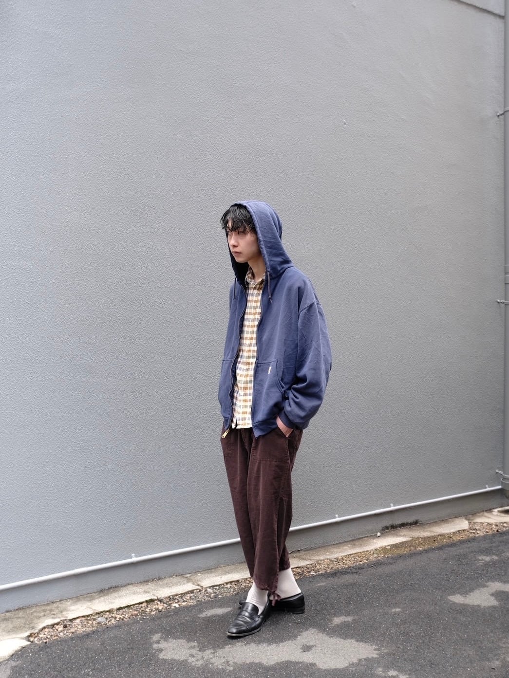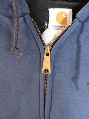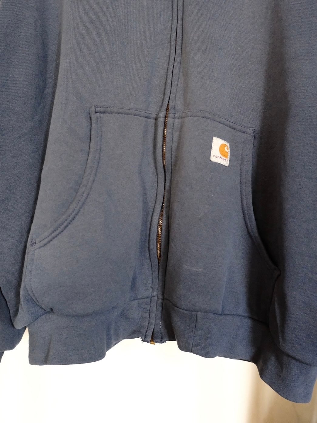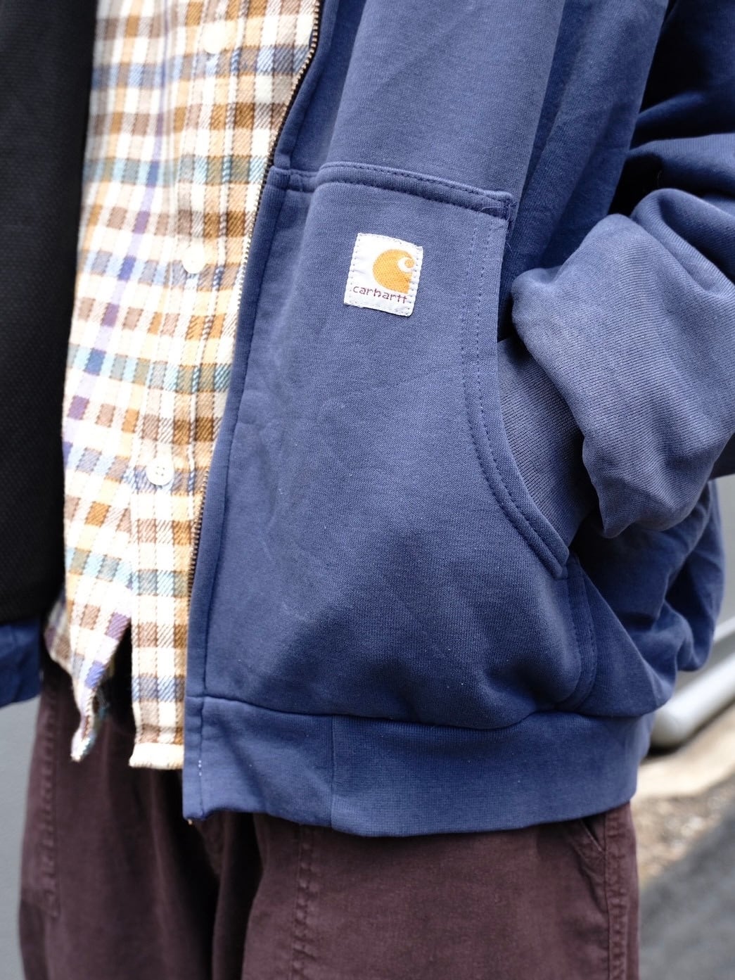 かなりゆったりとしたサイズ感のカーハートのジップフーディーです。