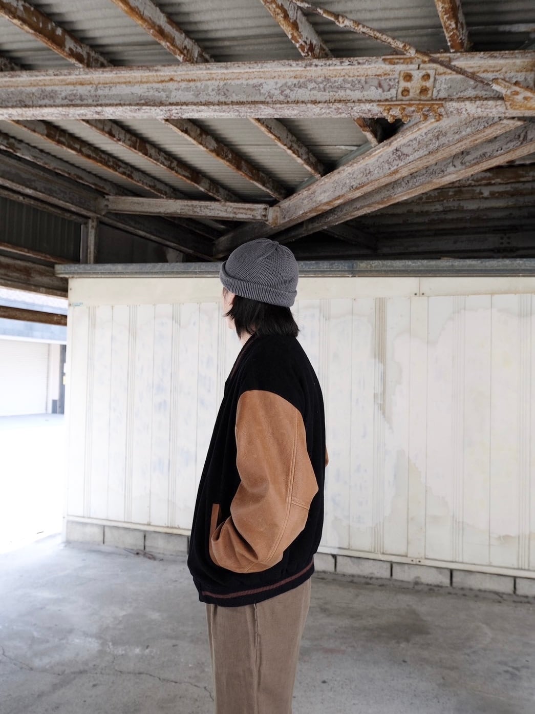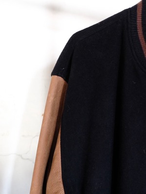 袖はしっかりとレザーで切り替えられておりクオリティの高い1着。