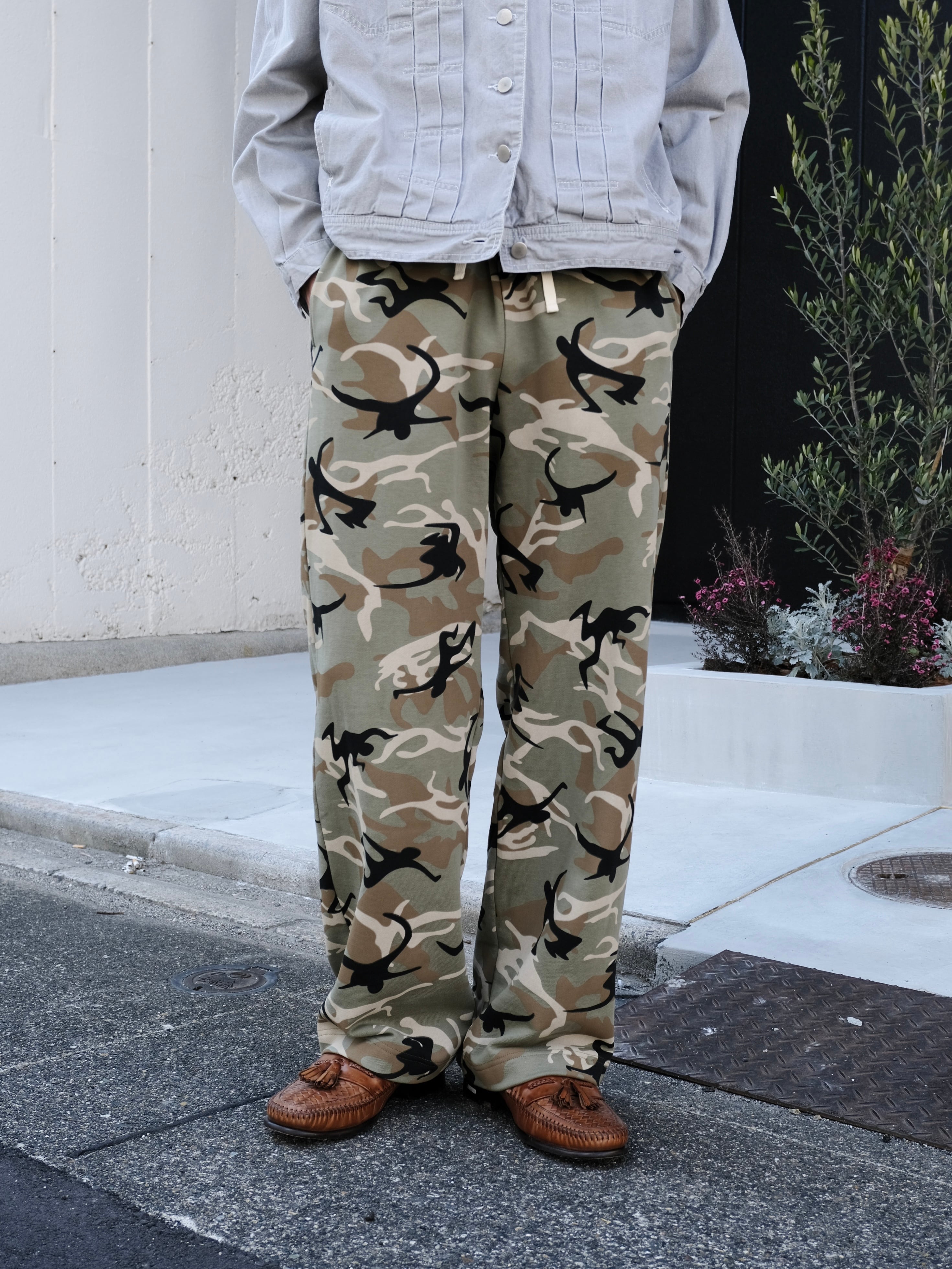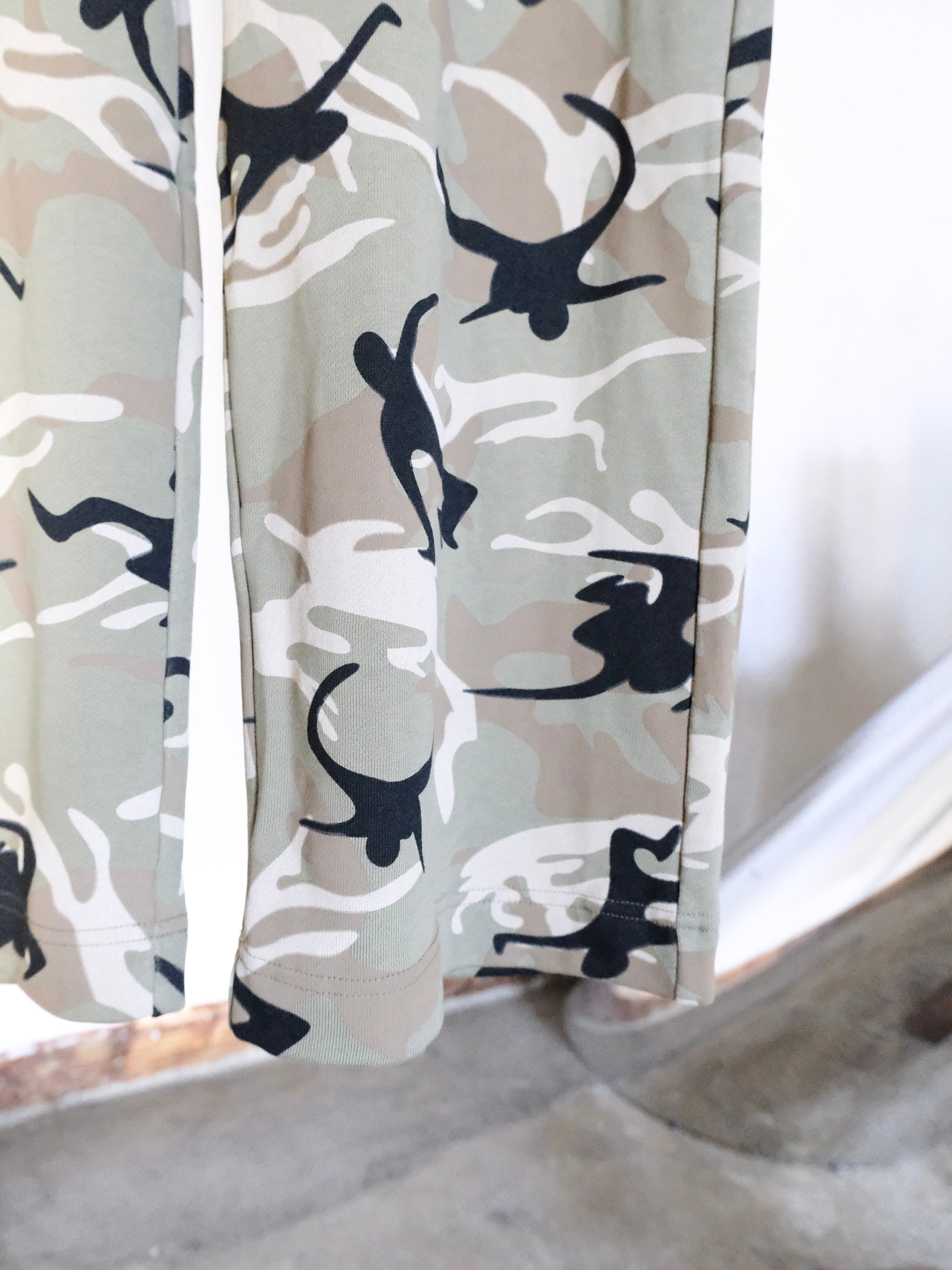 オリジナルのダンシングカモフラージュをソフトなスウェット生地にプリント。