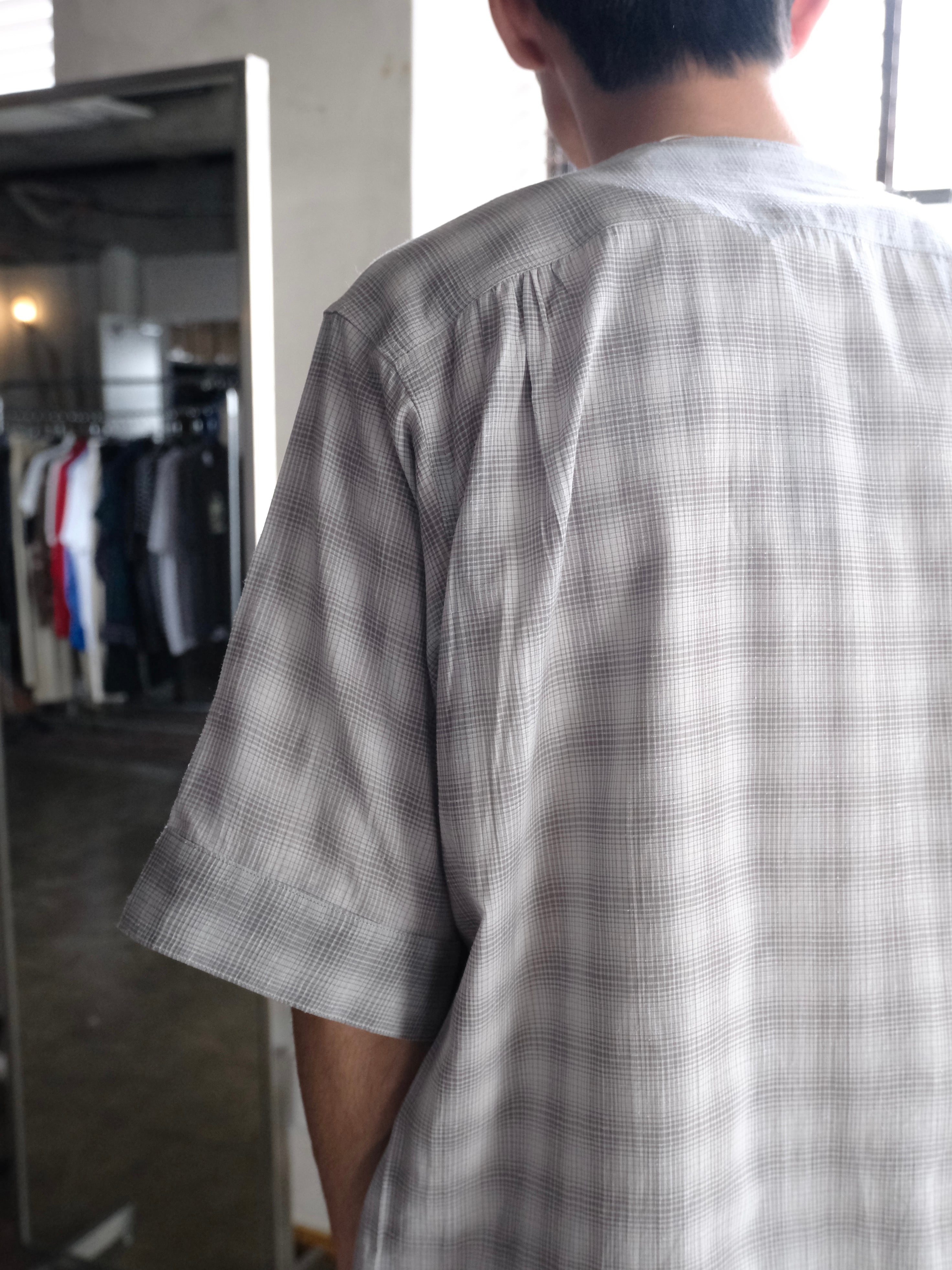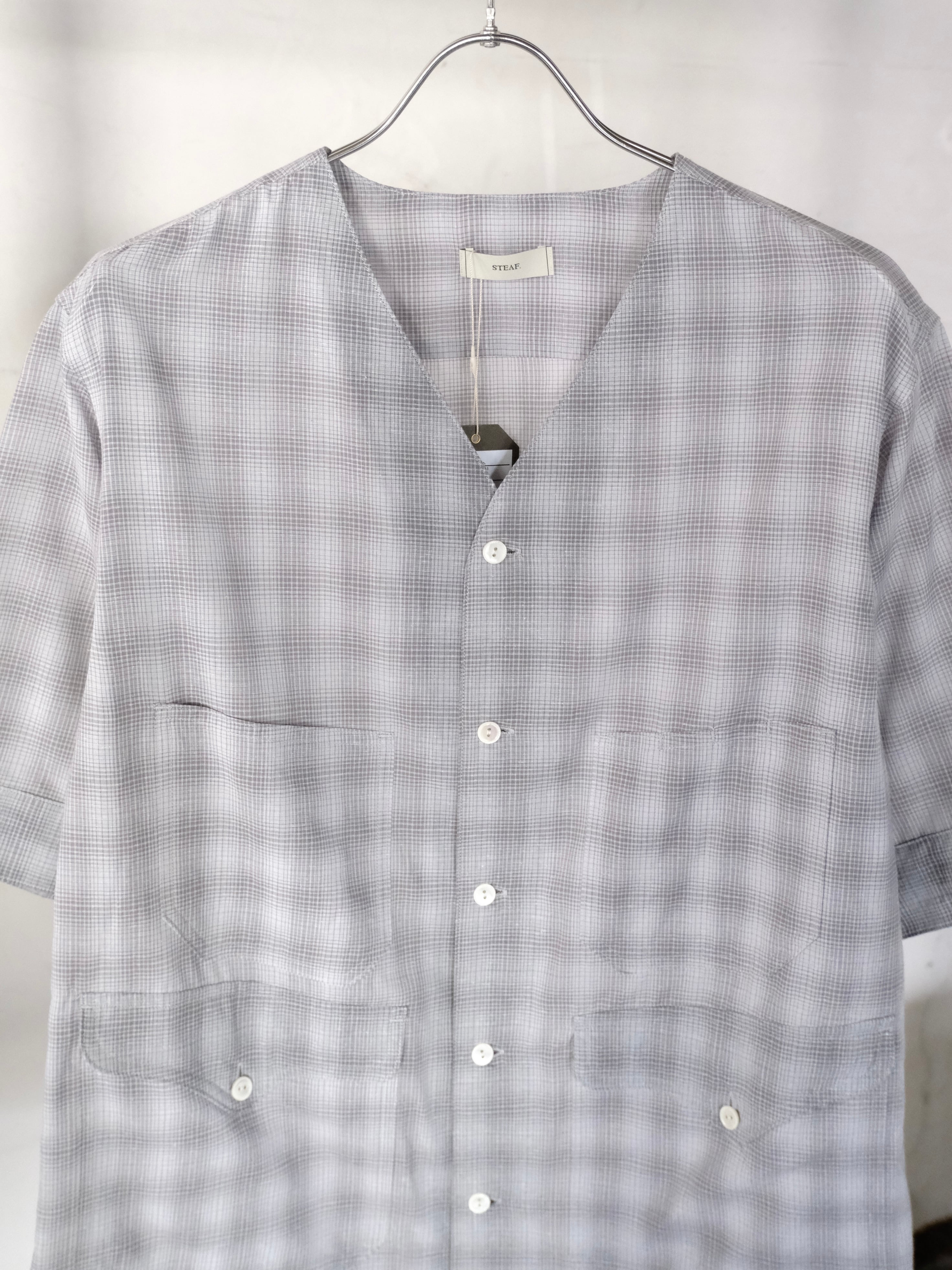 とても滑らかな肌触りのシルク混コットン地を使用したSTEAF初の半袖シアーシャツです。