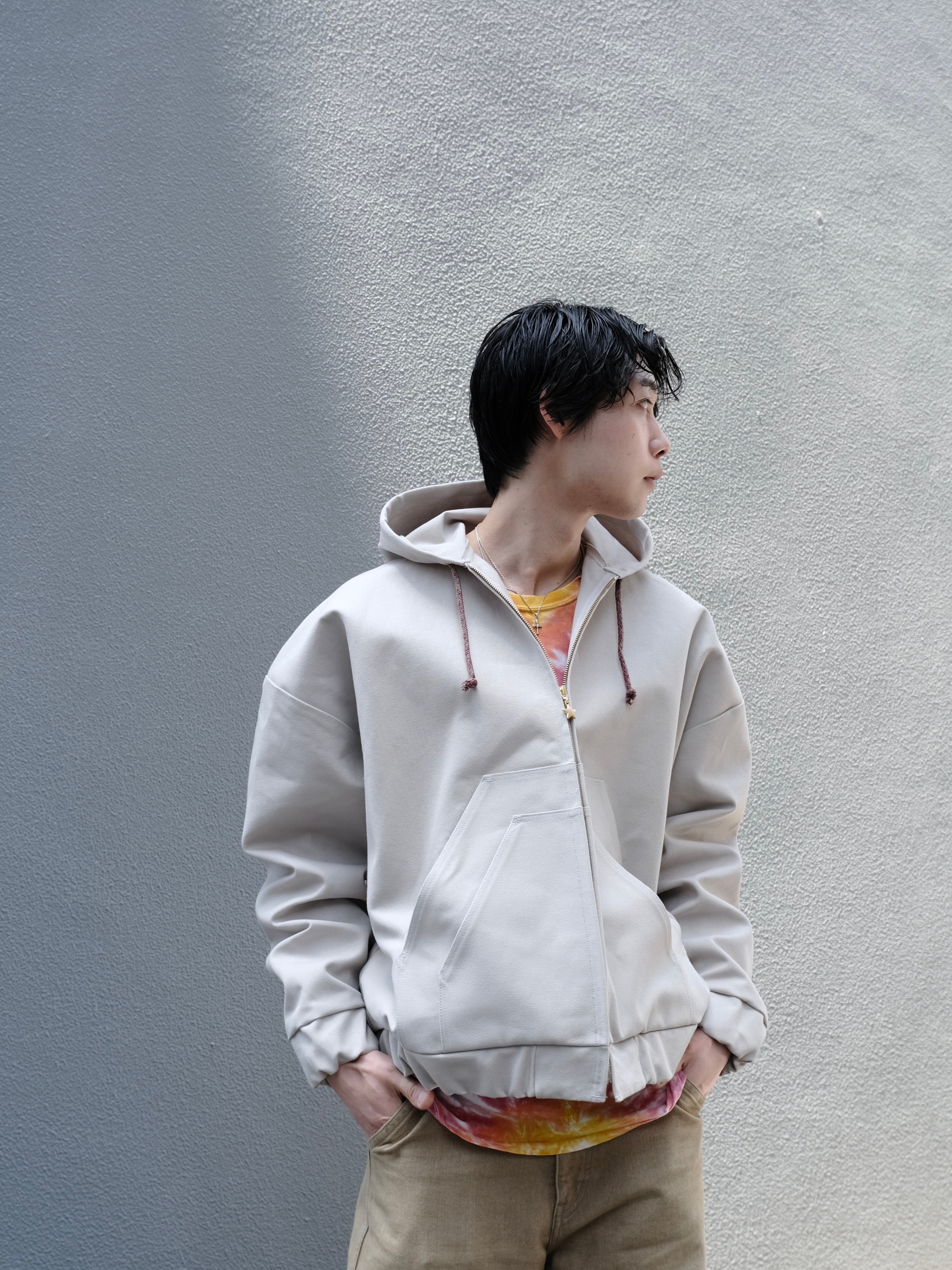 タフで硬さのあるダック生地を使用したダックジャケットです。