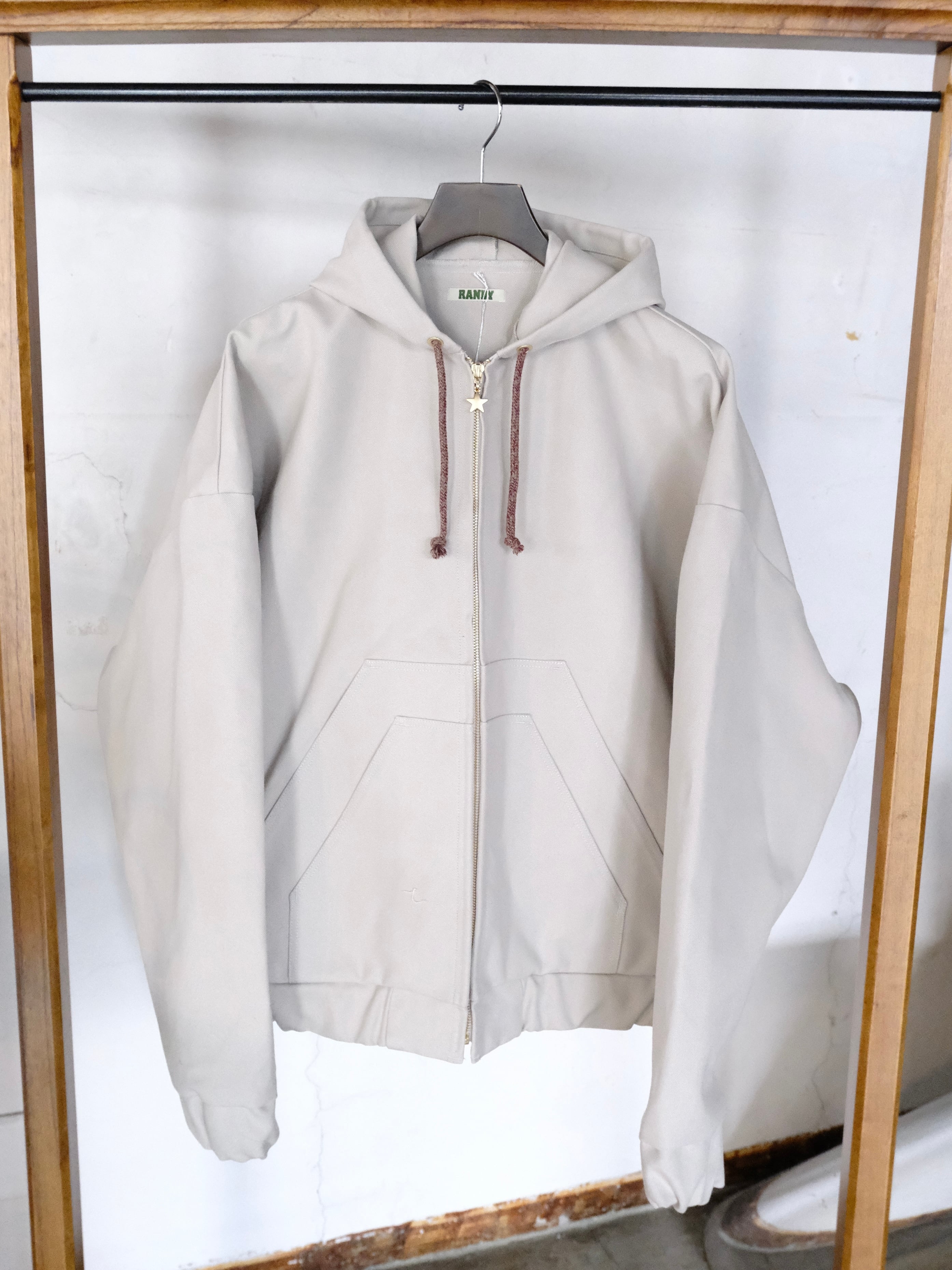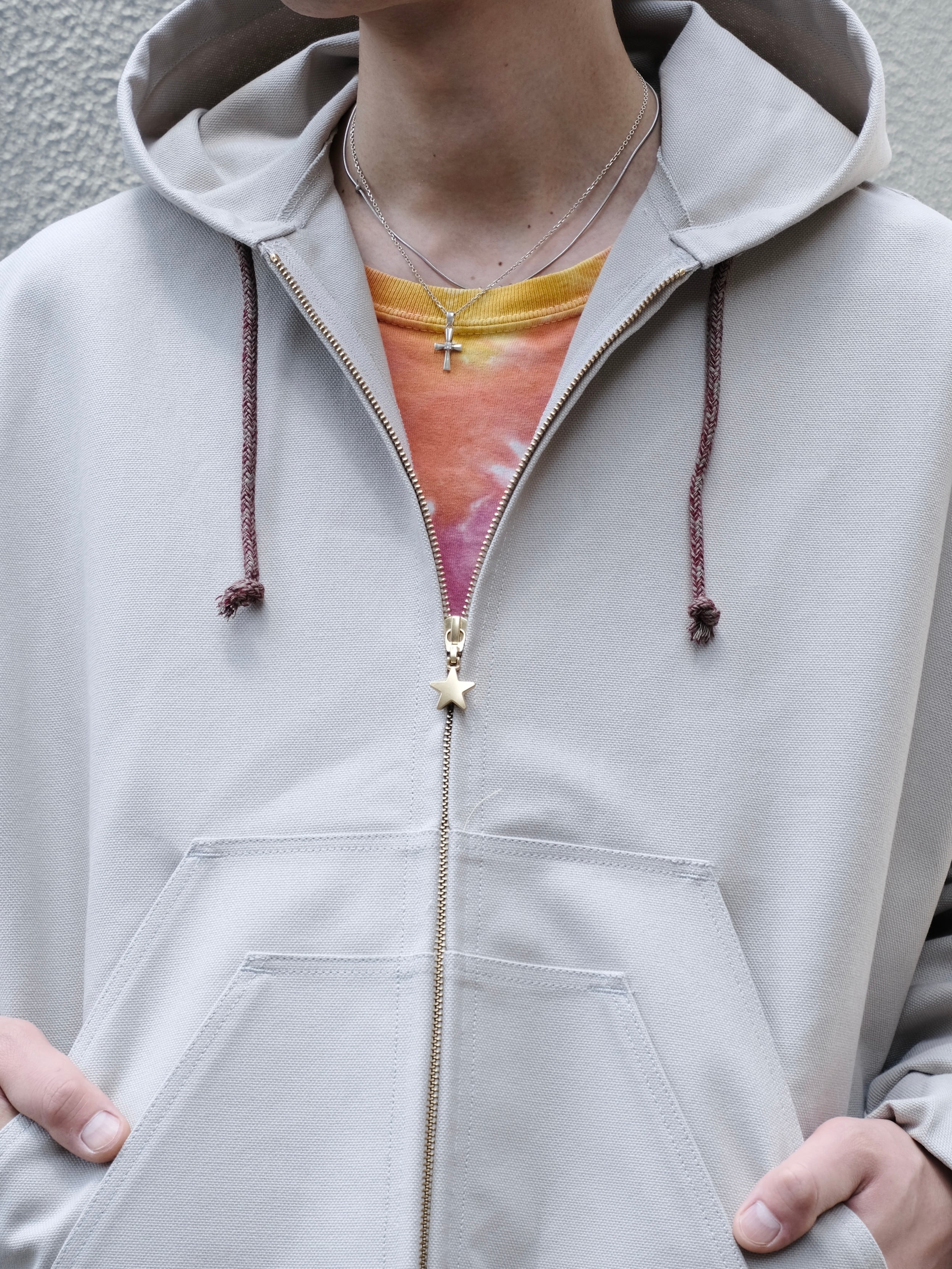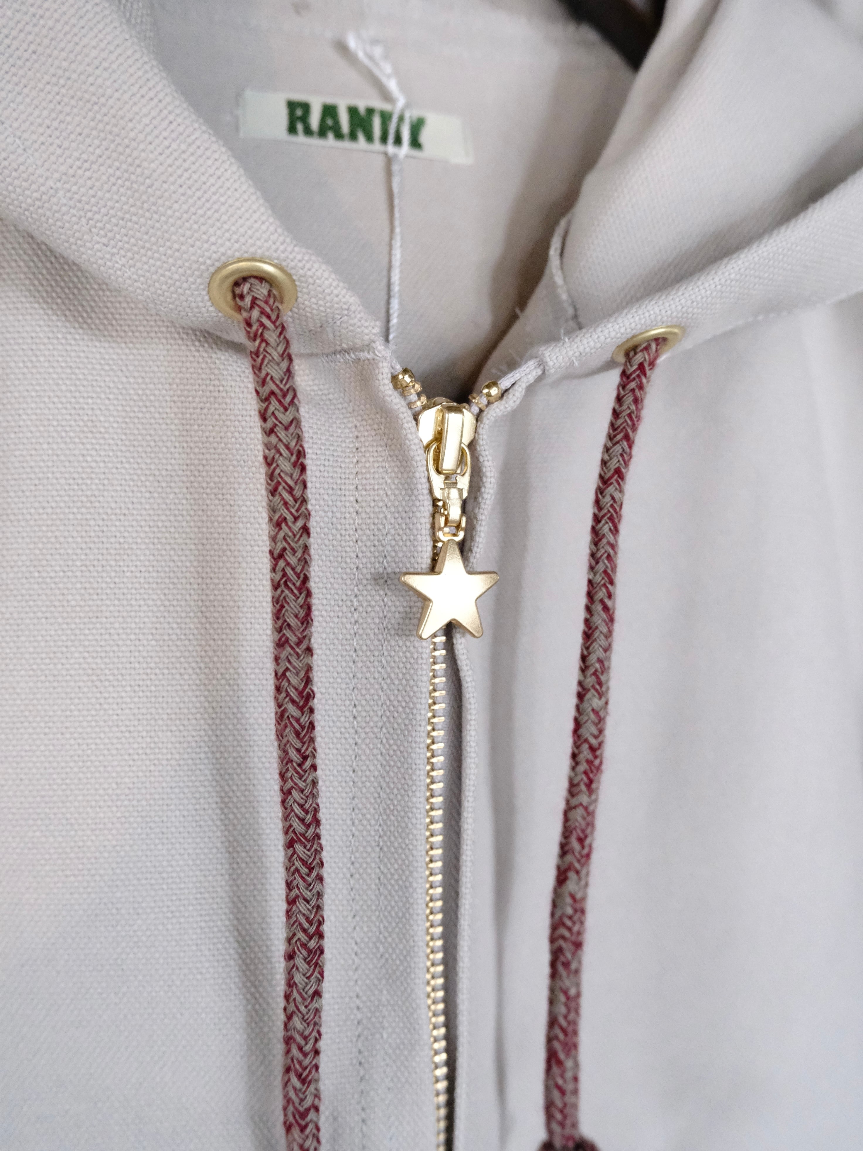 フロントはジップによる開閉が可能となっており、ジップチャームが星型なのも魅力的な1枚です。