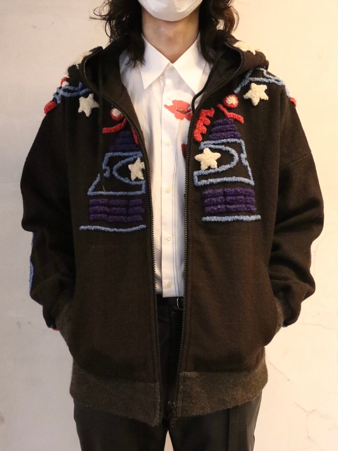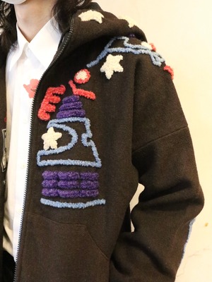 フロント部分はジップによる開閉が可能となっているため、インナーの上からざっくりと羽織って頂けます。