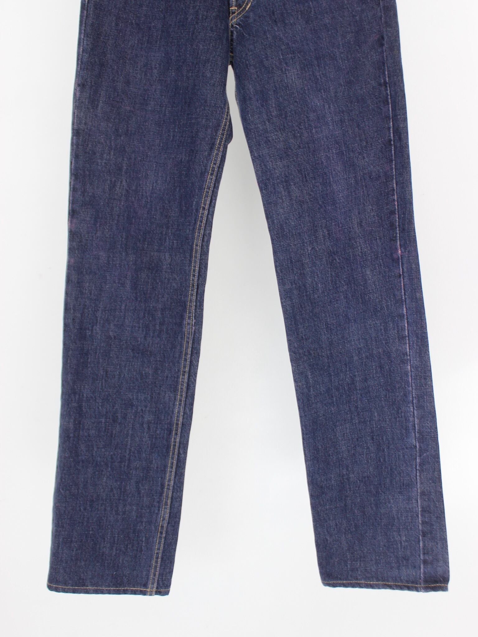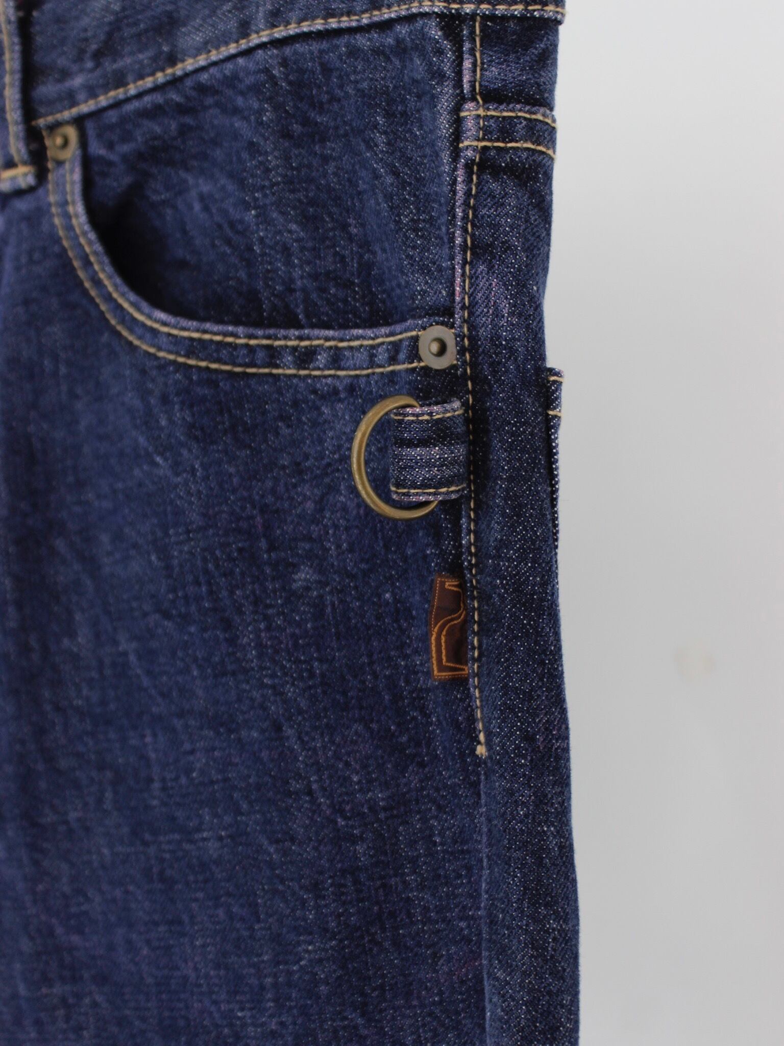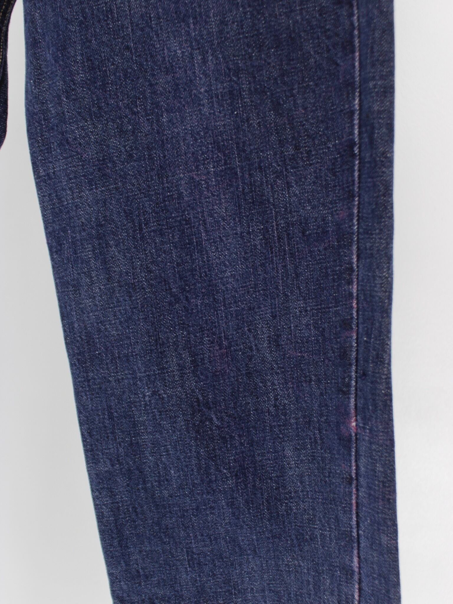 生地に対して薄らとピンクカラーが入っており、インディゴ生地と合わさり少しパープルカラーにも見えます。