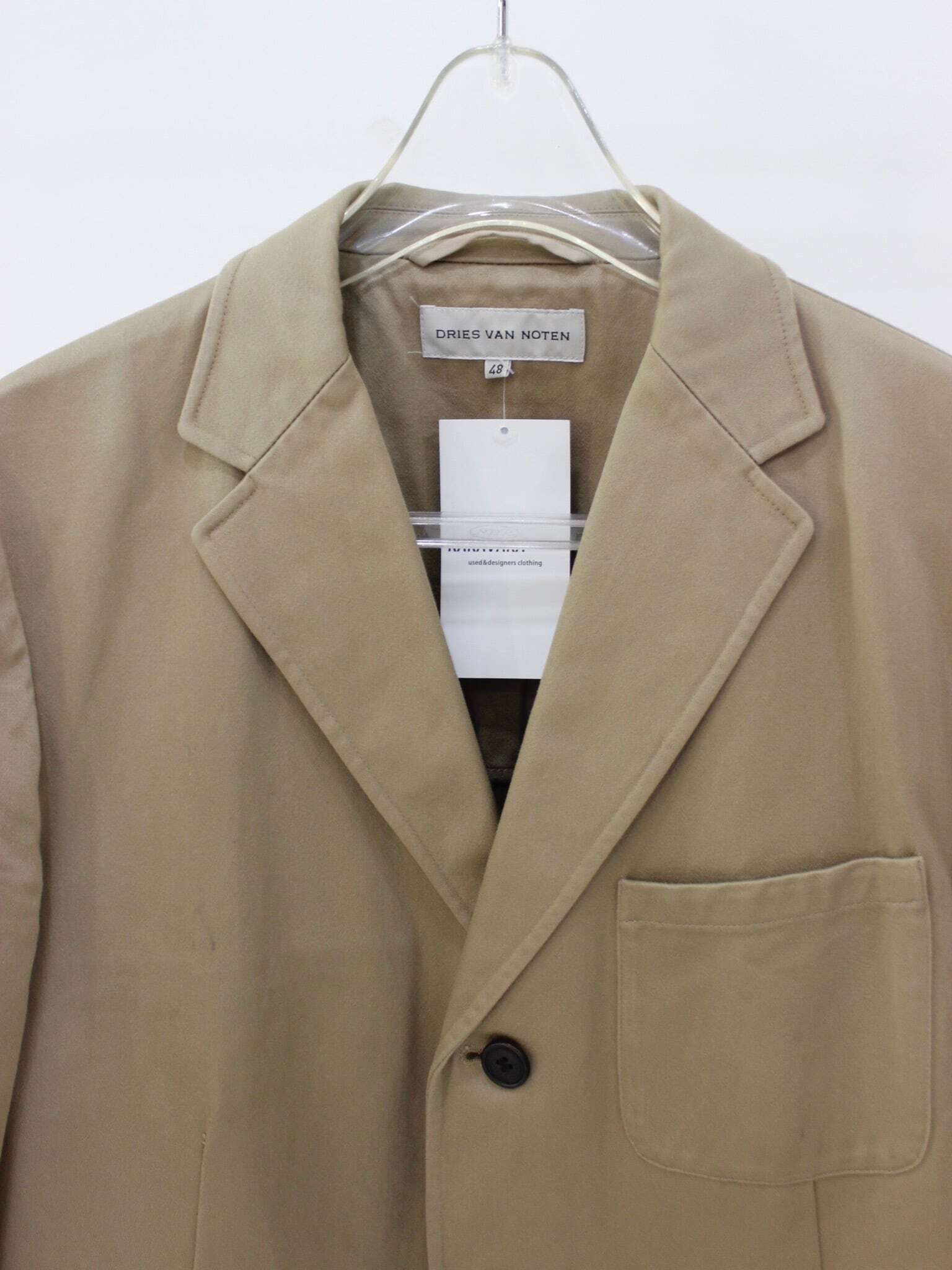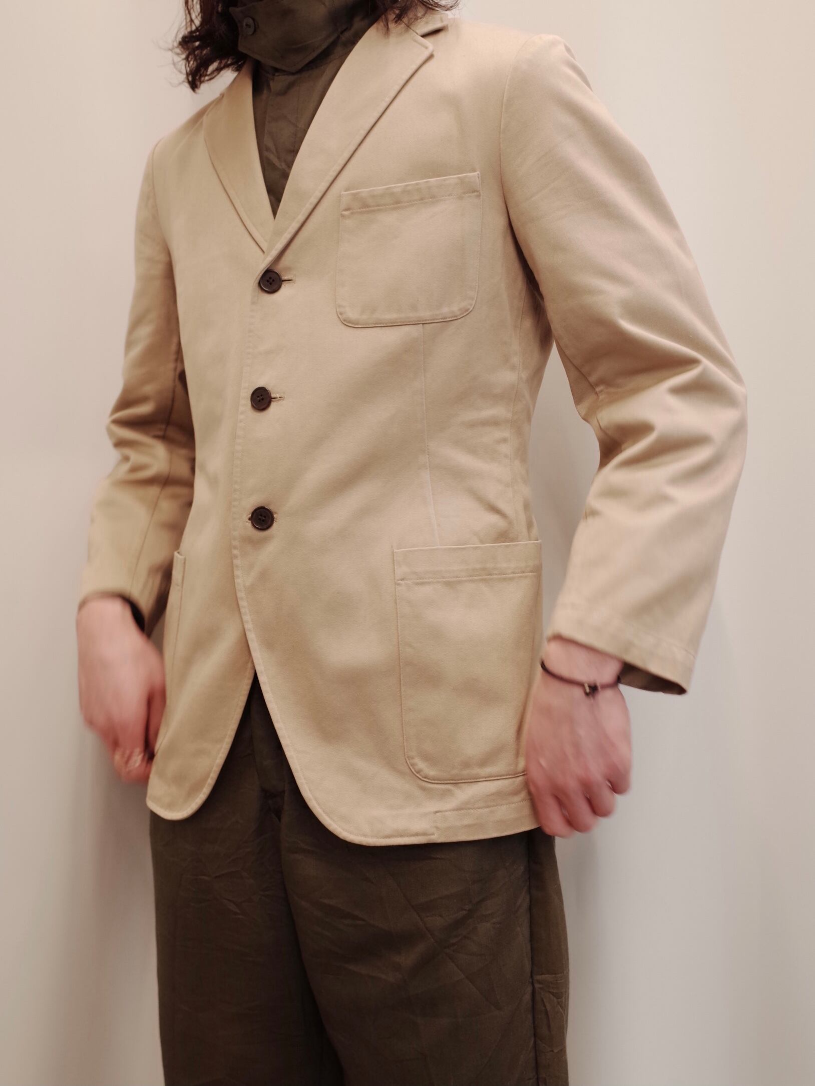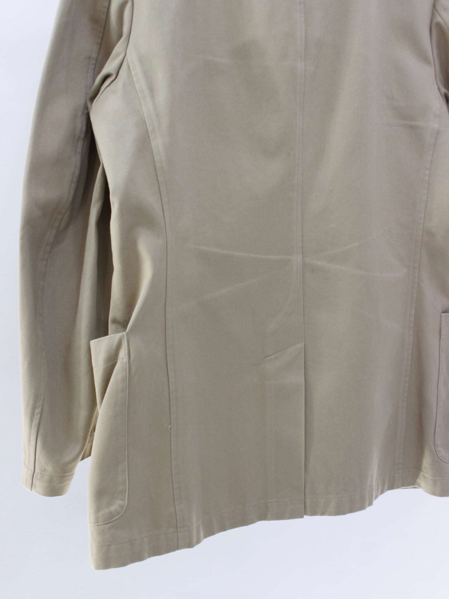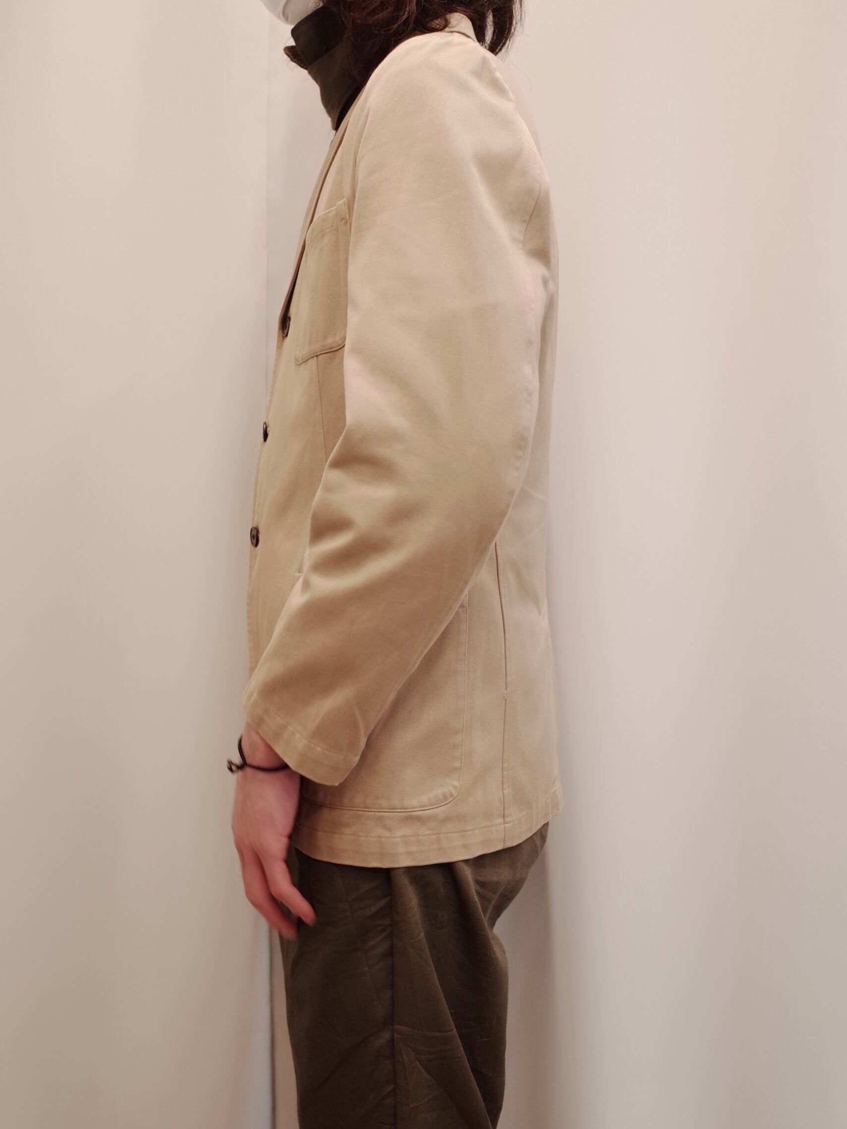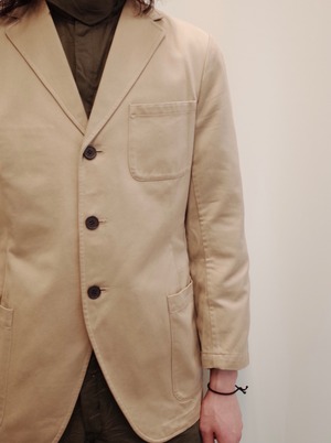 柔らかなベージュカラーのシンプルなテーラードジャケット