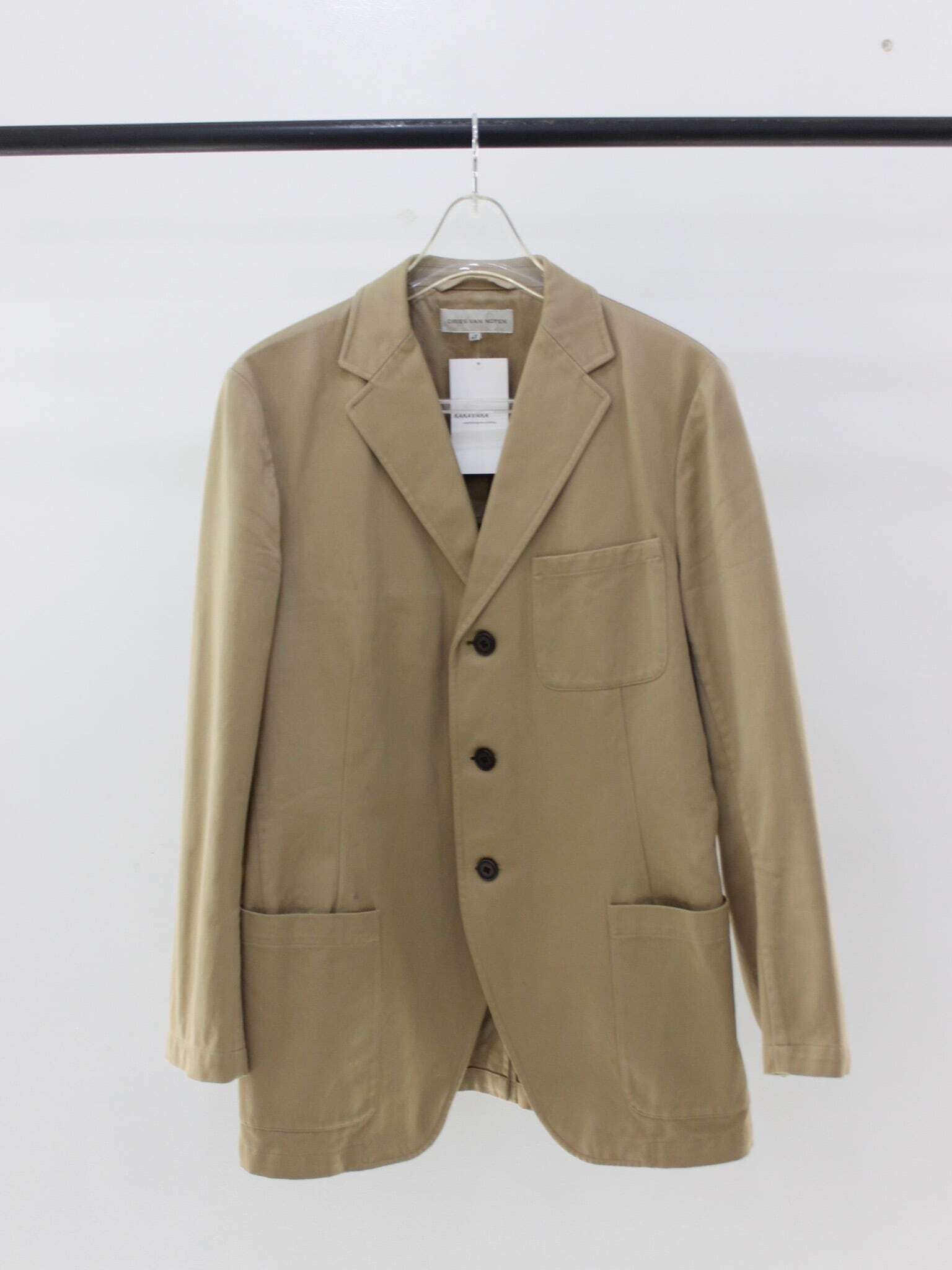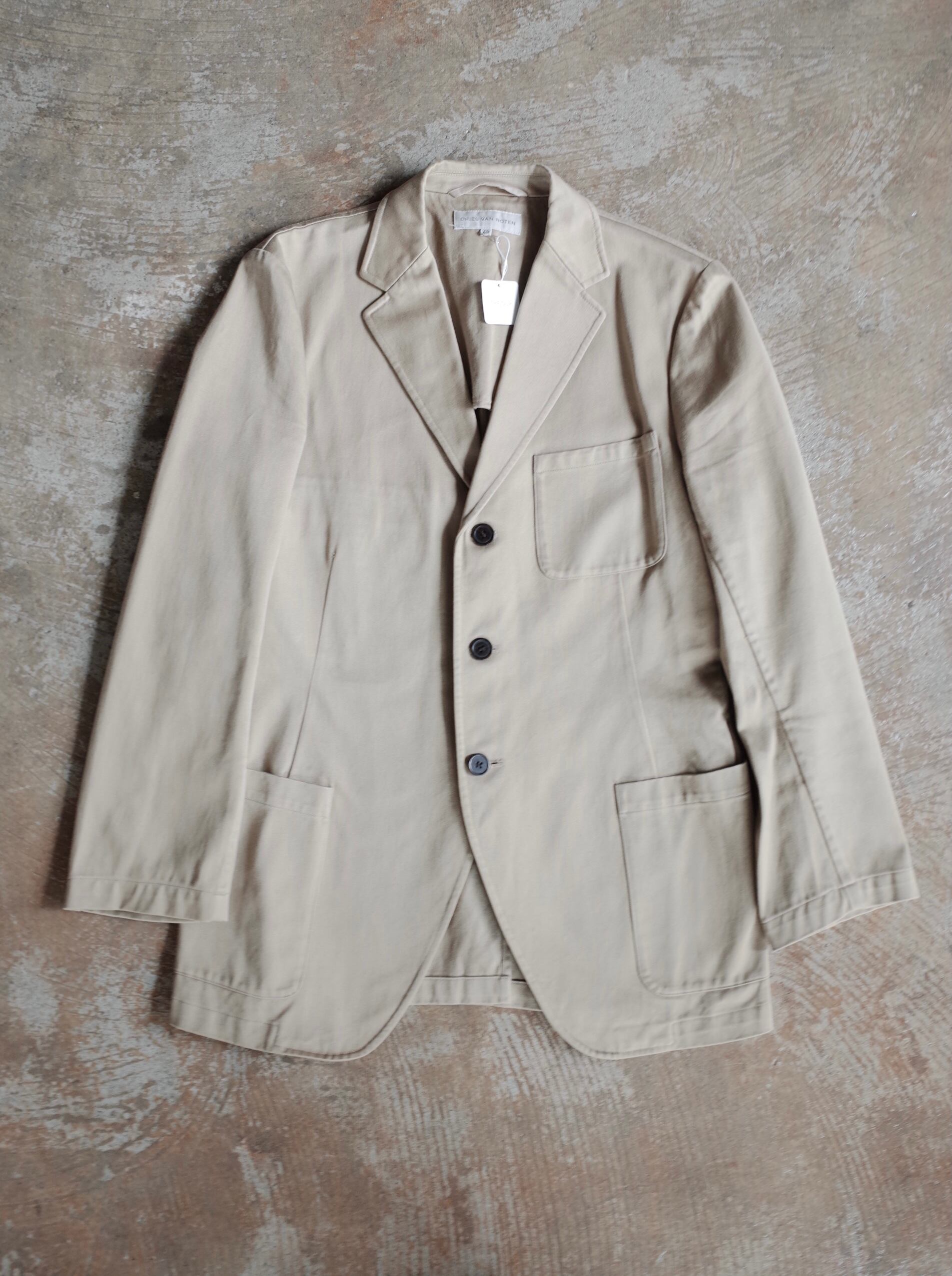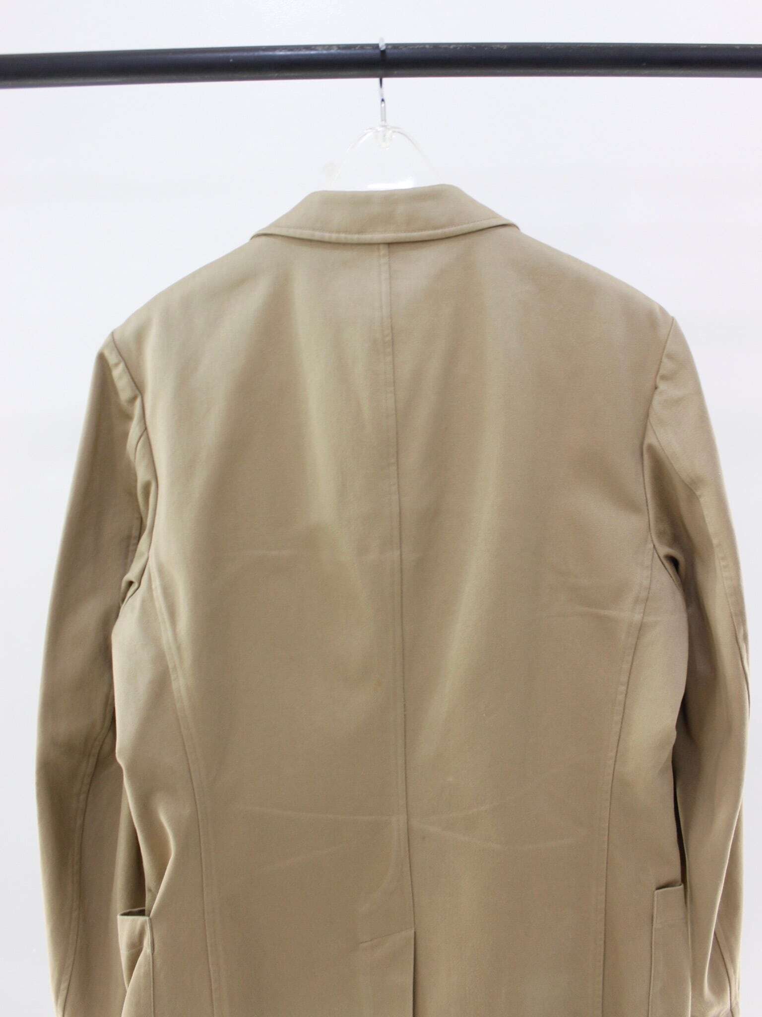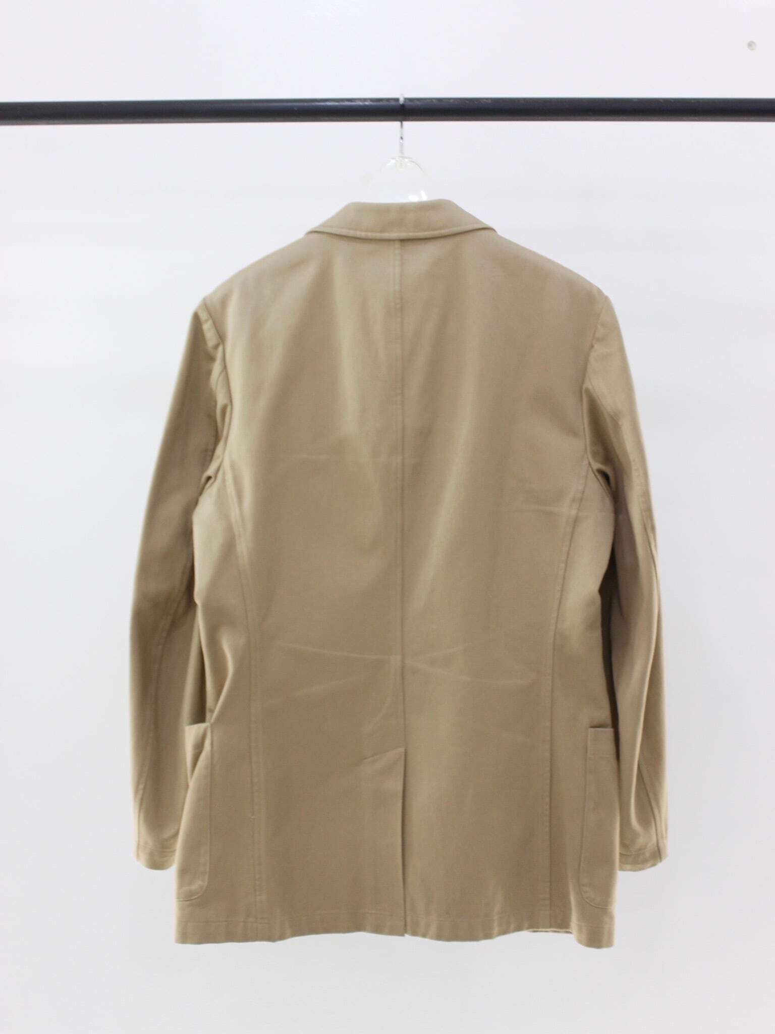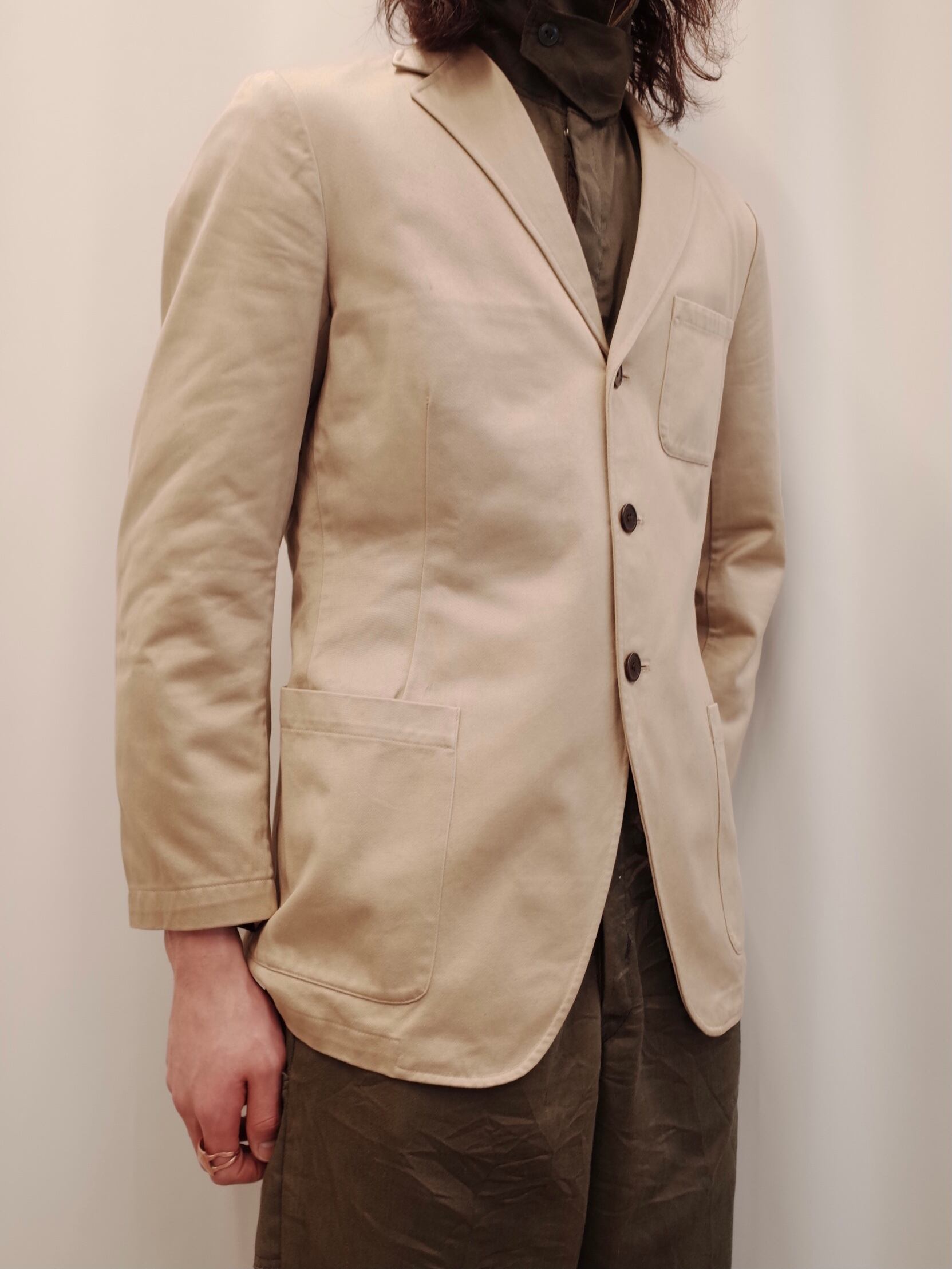 柔らかなベージュカラーのシンプルなテーラードジャケット