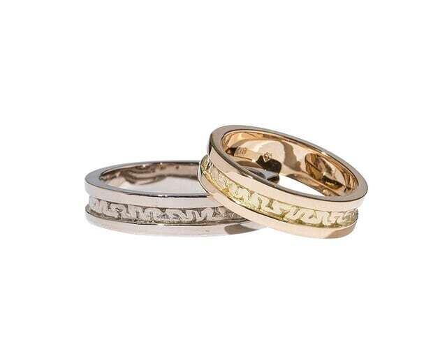 しっかりと脳柄を主張しながらもシンプルで重ね付けしやすいリングです。