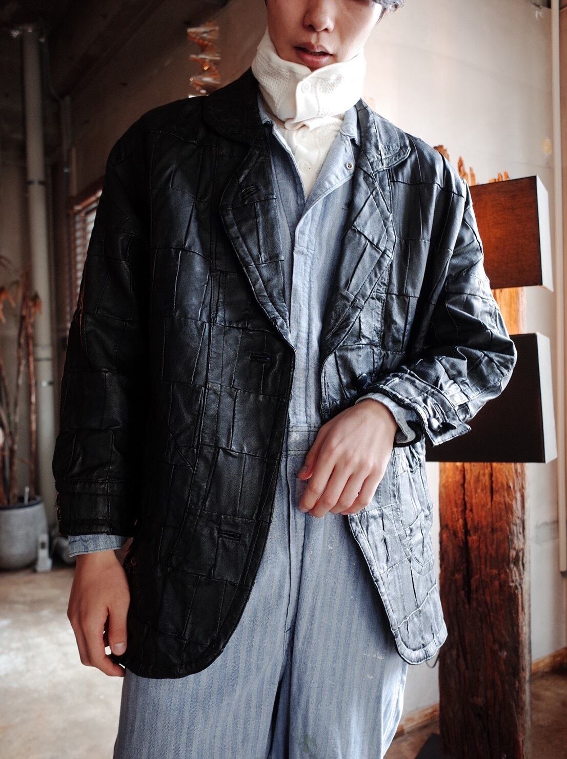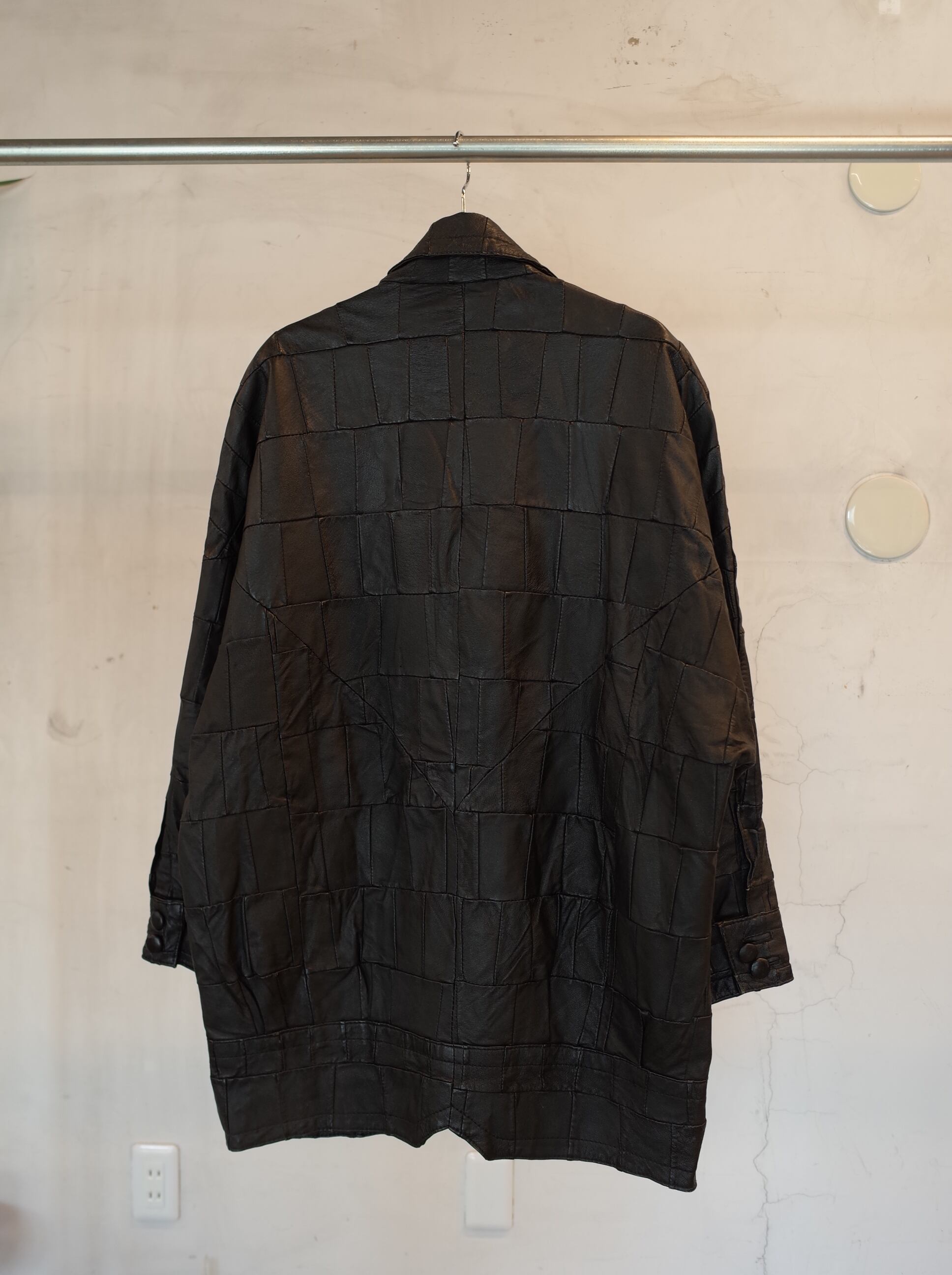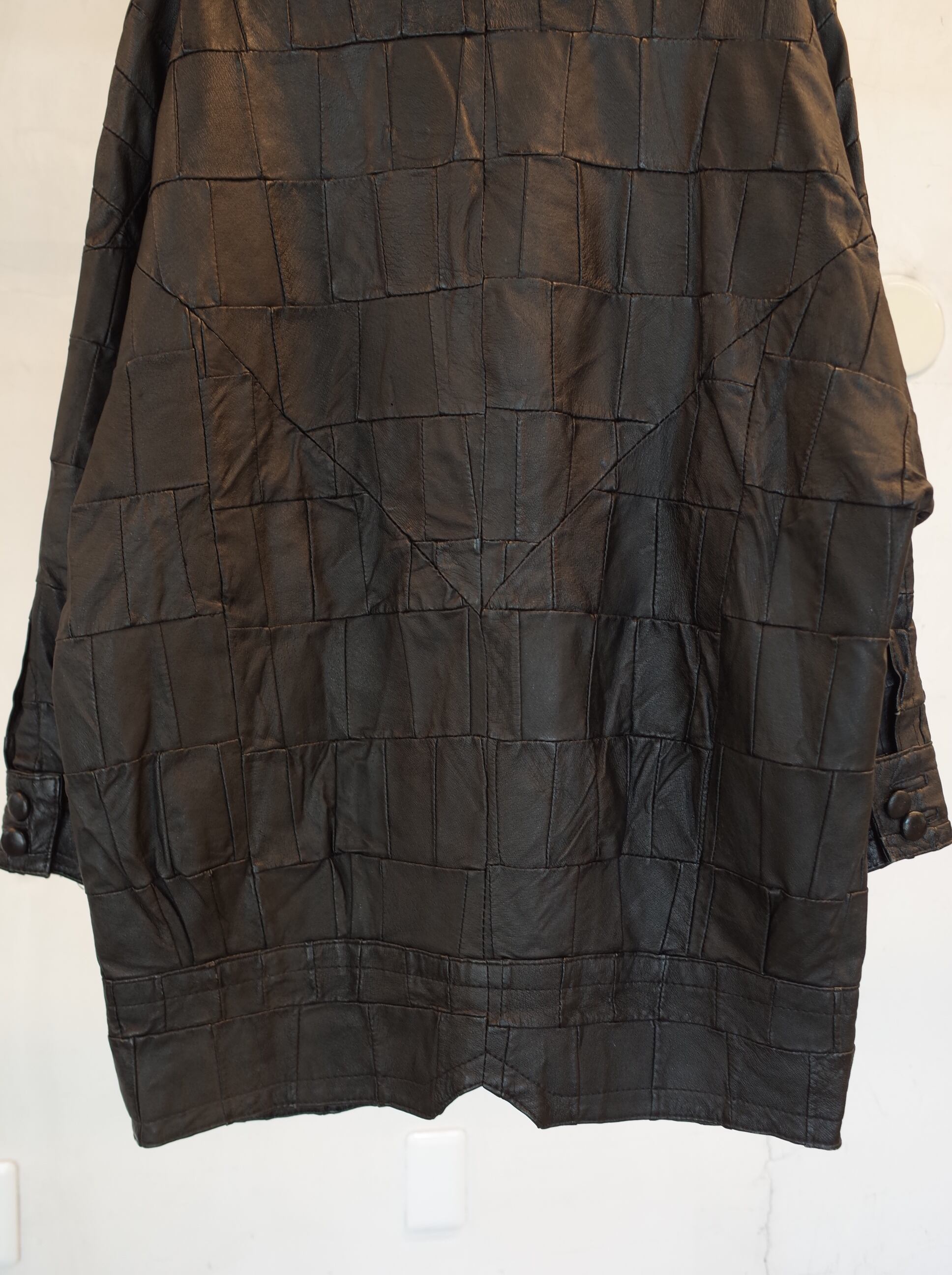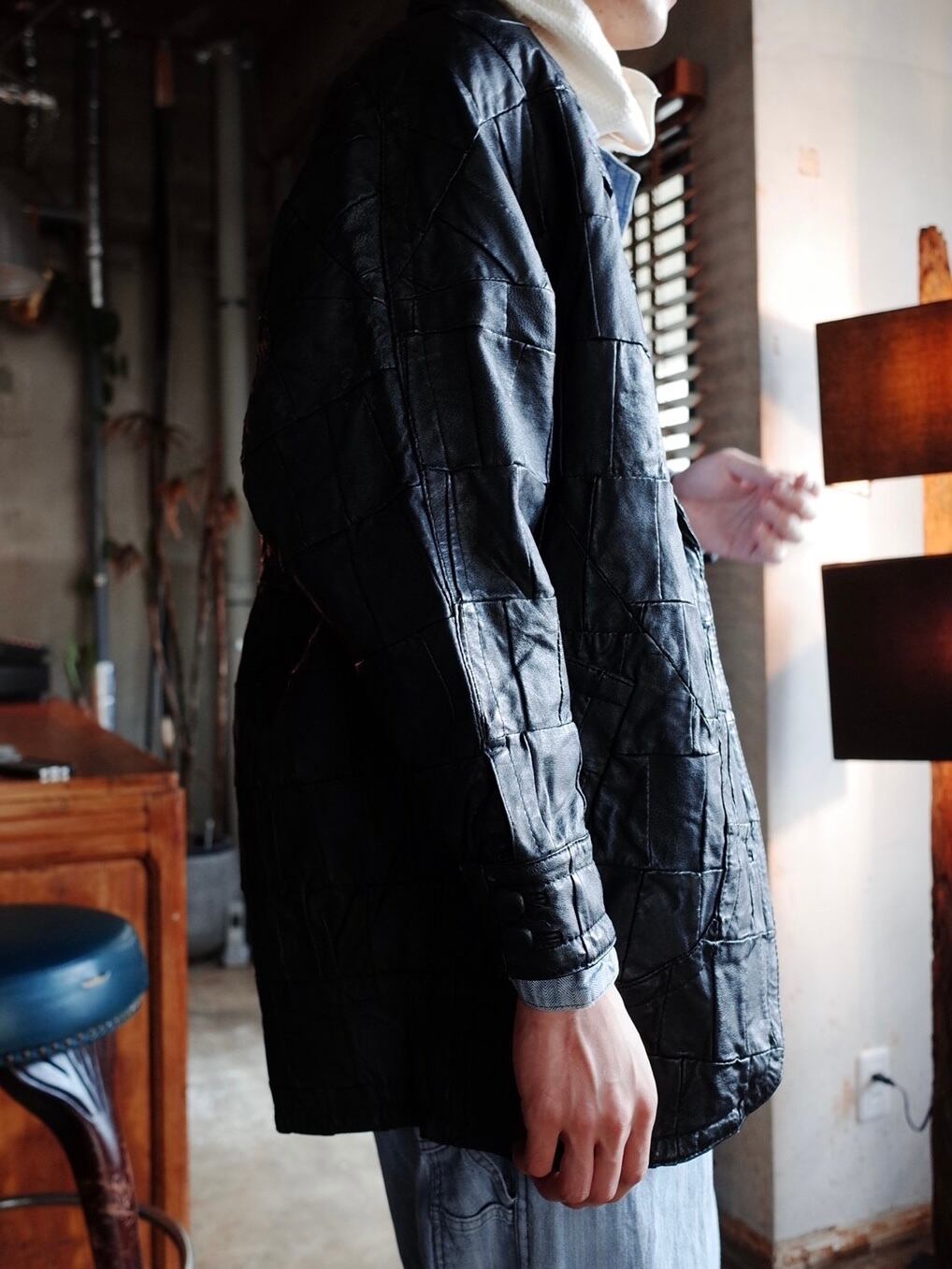 レザーのパッチワークで作られたコートです。
