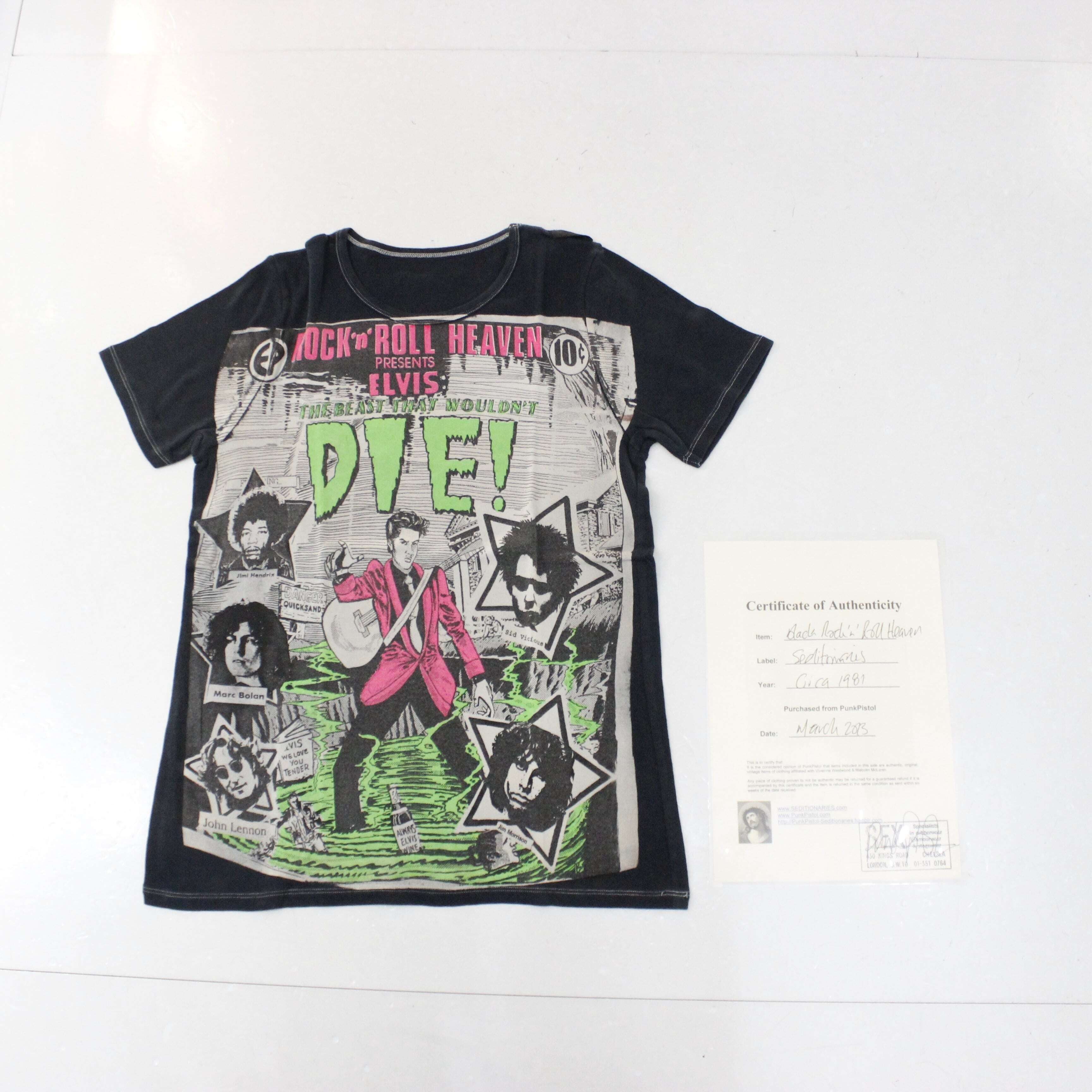 ブラックでユーモラスでパンクなデザインのTシャツは、物によっては模倣品でも価値が付く程。