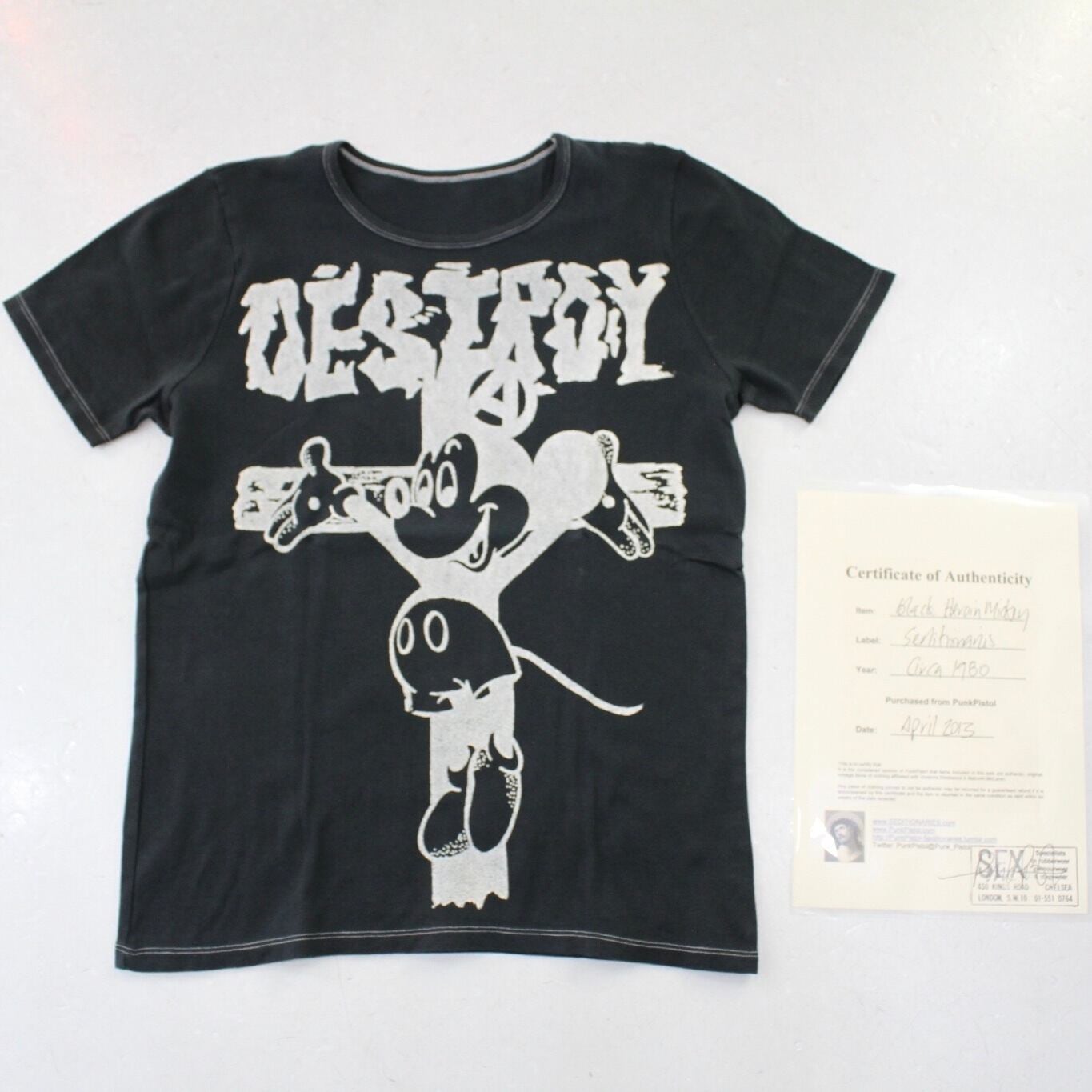 ブラックでユーモラスでパンクなデザインのTシャツは、物によっては模倣品でも価値が付く程。