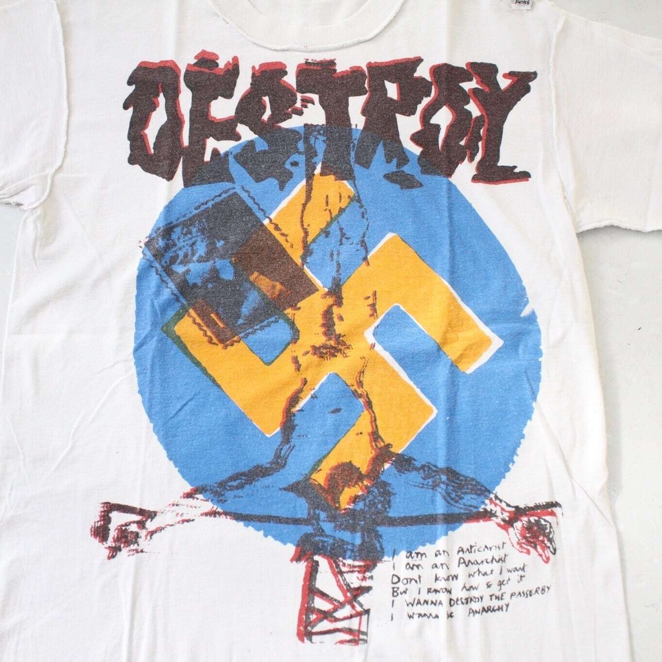 ブラックでユーモラスでパンクなデザインのTシャツは、物によっては模倣品でも価値が付く程。