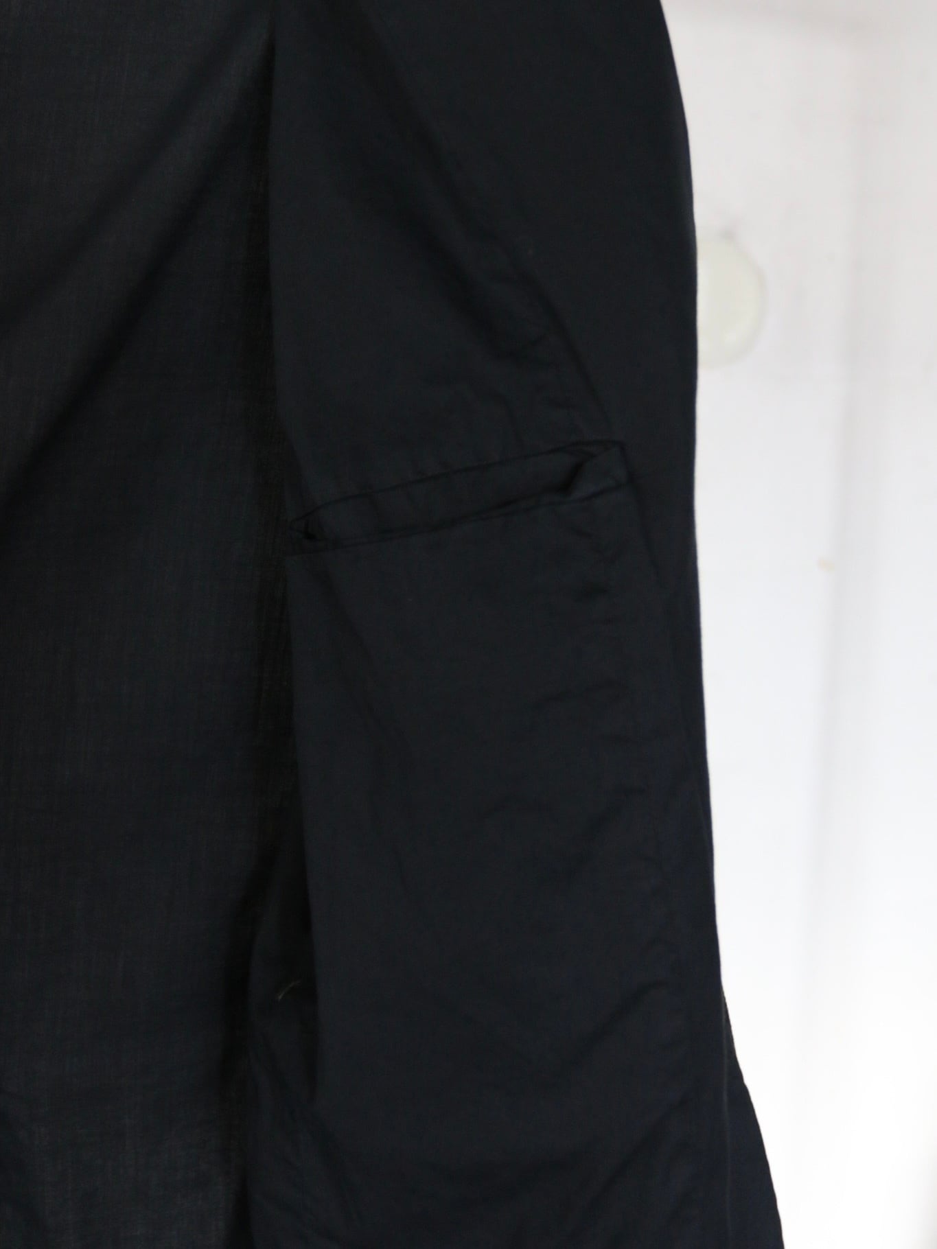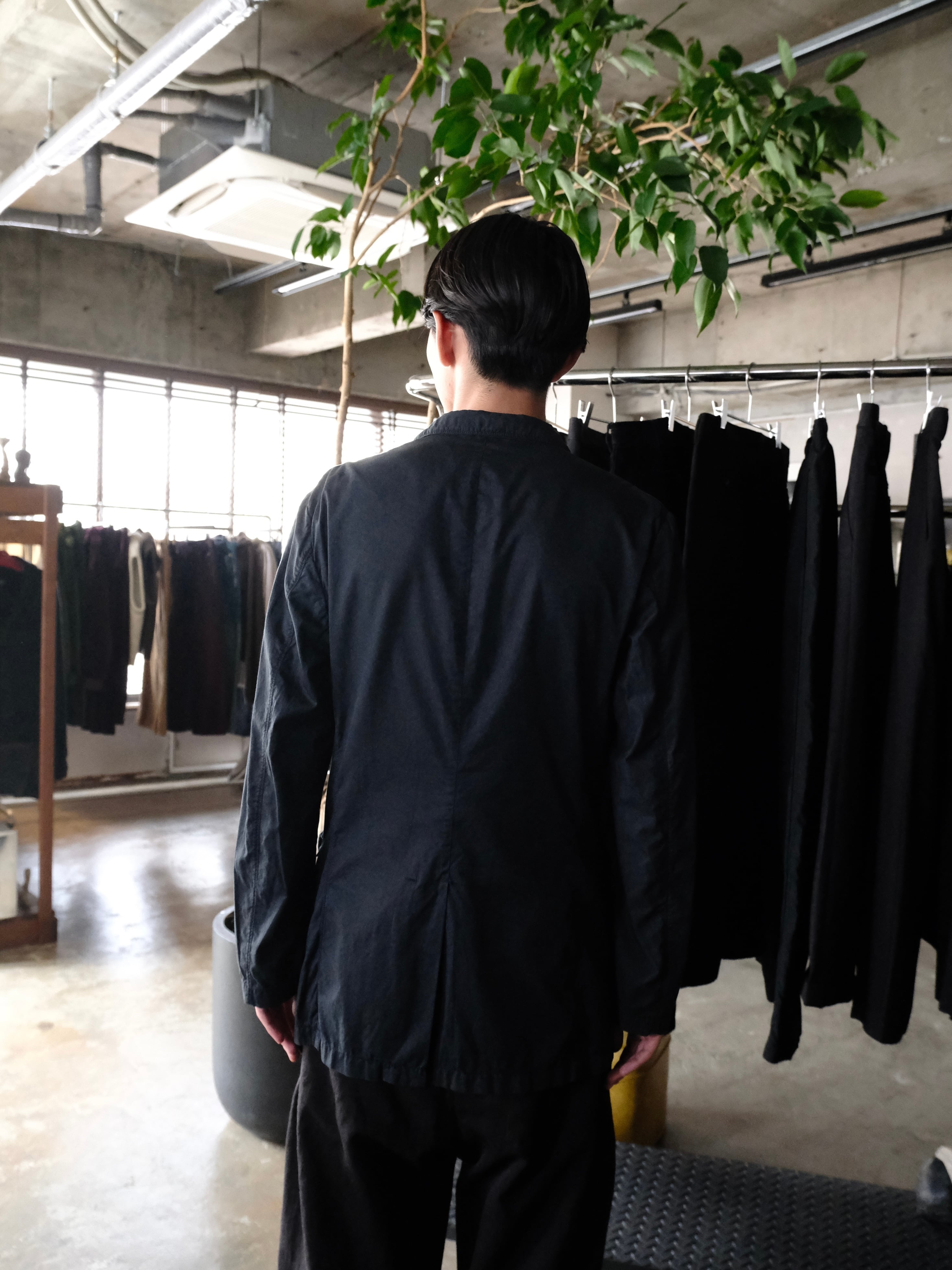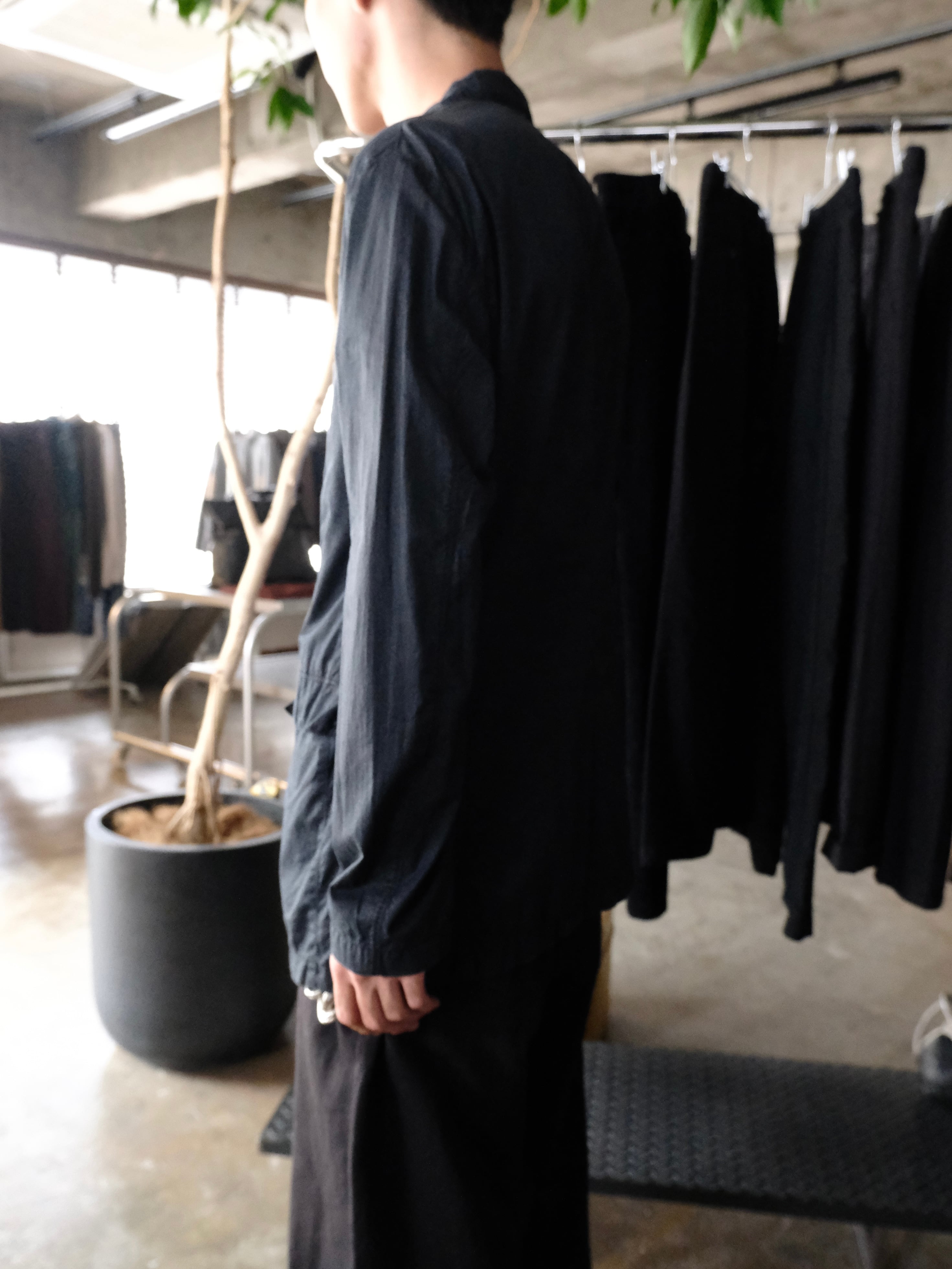 軽めな生地感と墨黒のような色味が上品な雰囲気になりすぎずカジュアルにも着て頂けます。