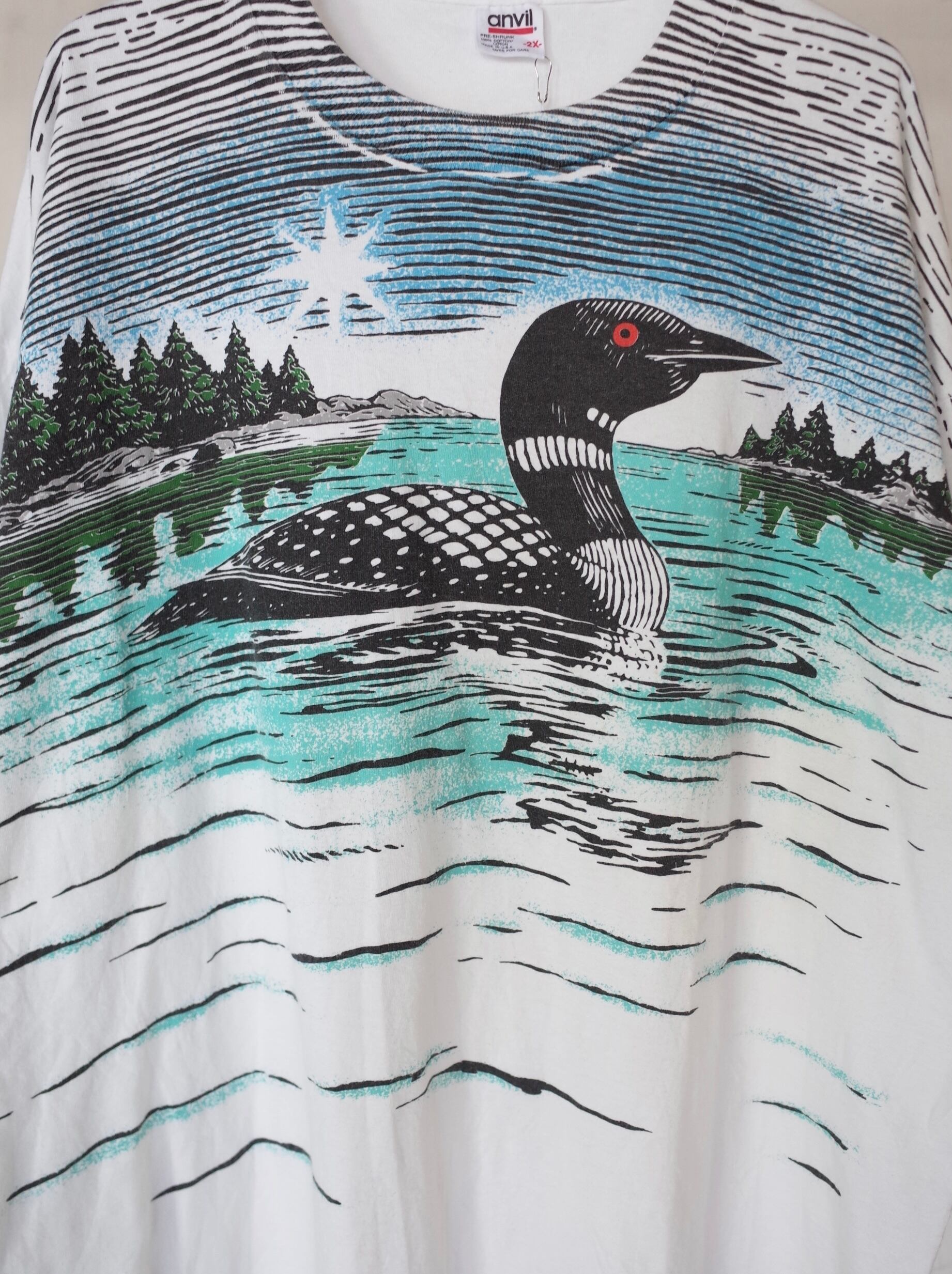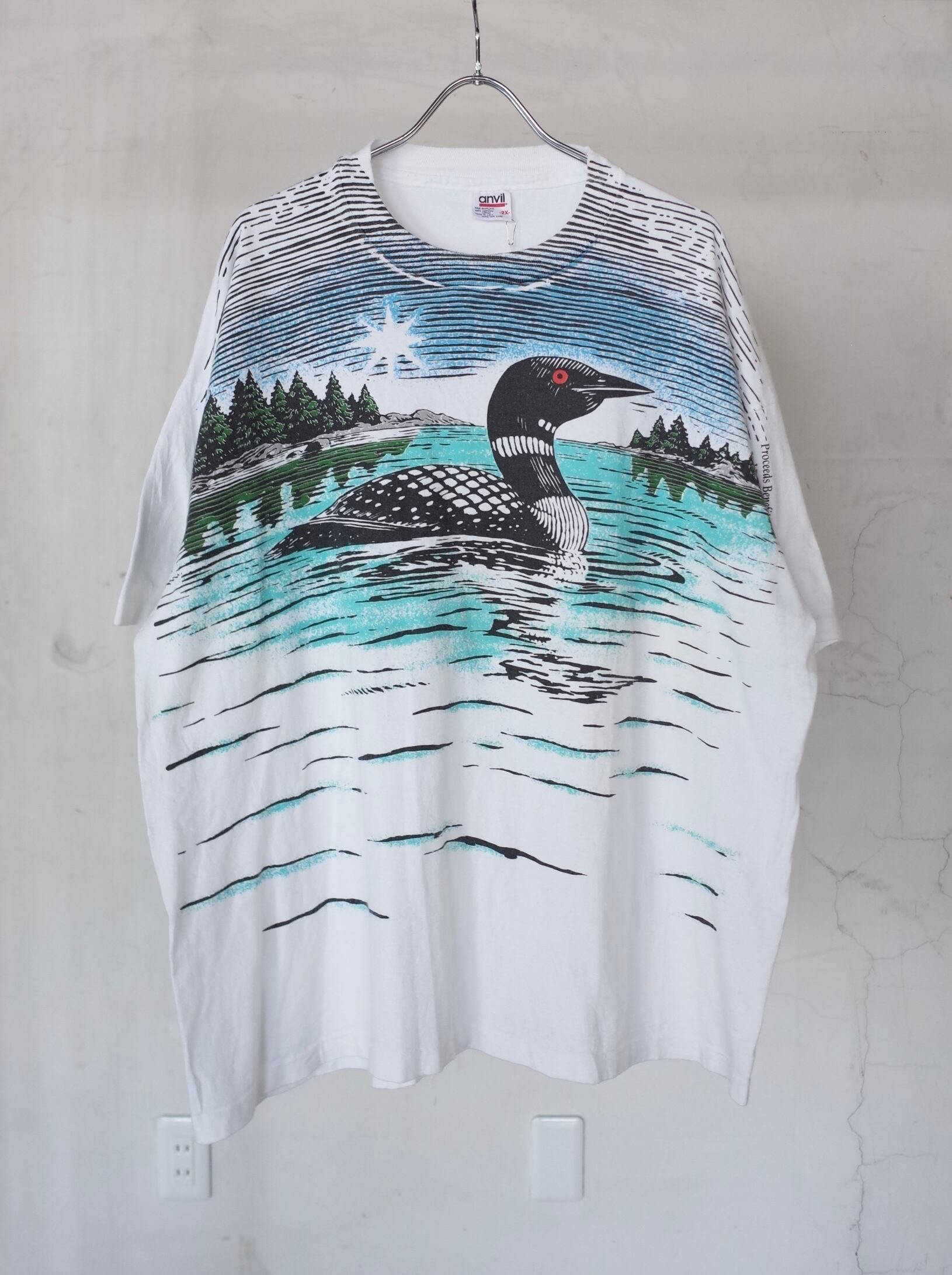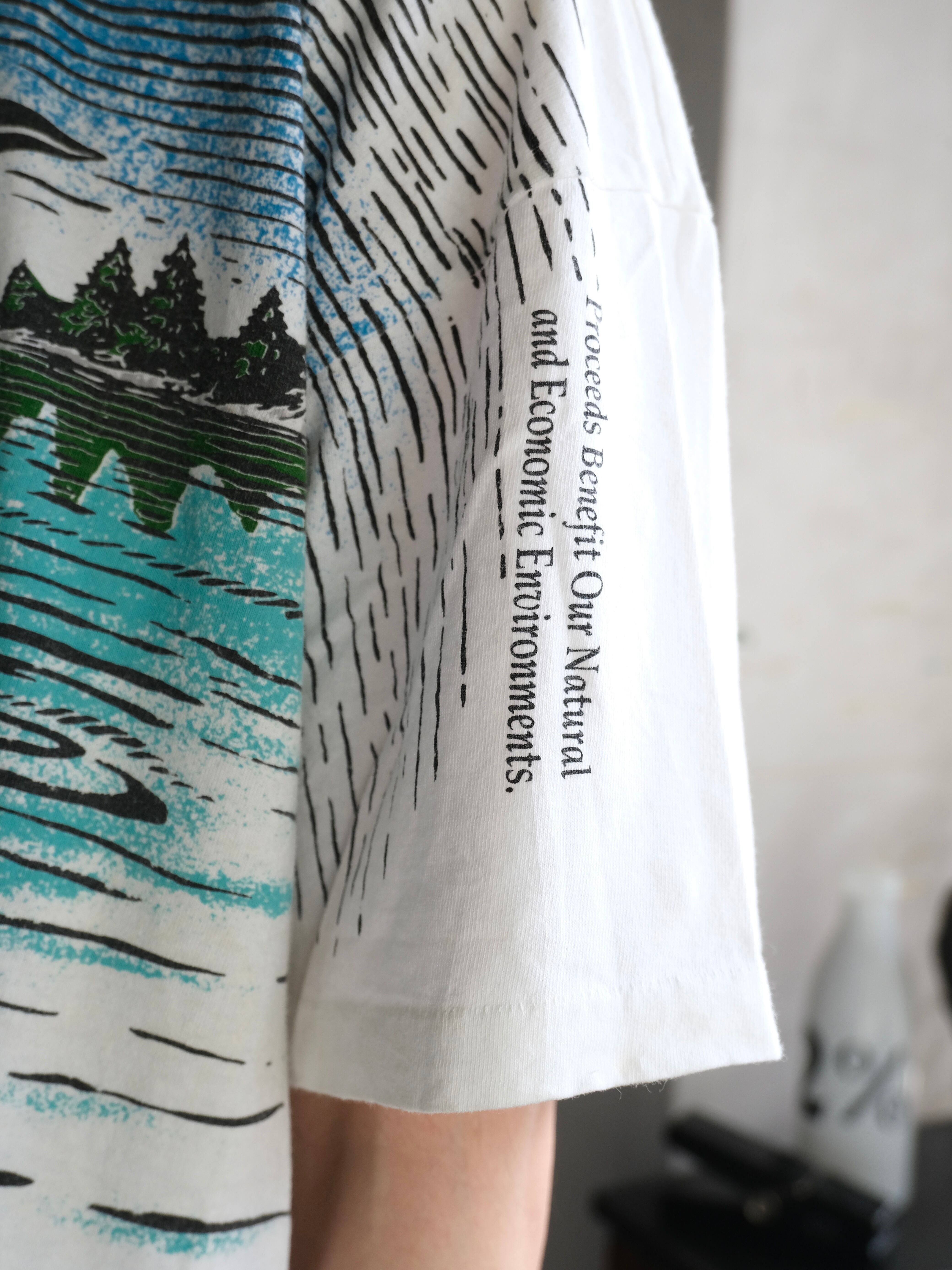 湖に対して反射している部分まで描かれているのも古着らしくオススメな1枚です。