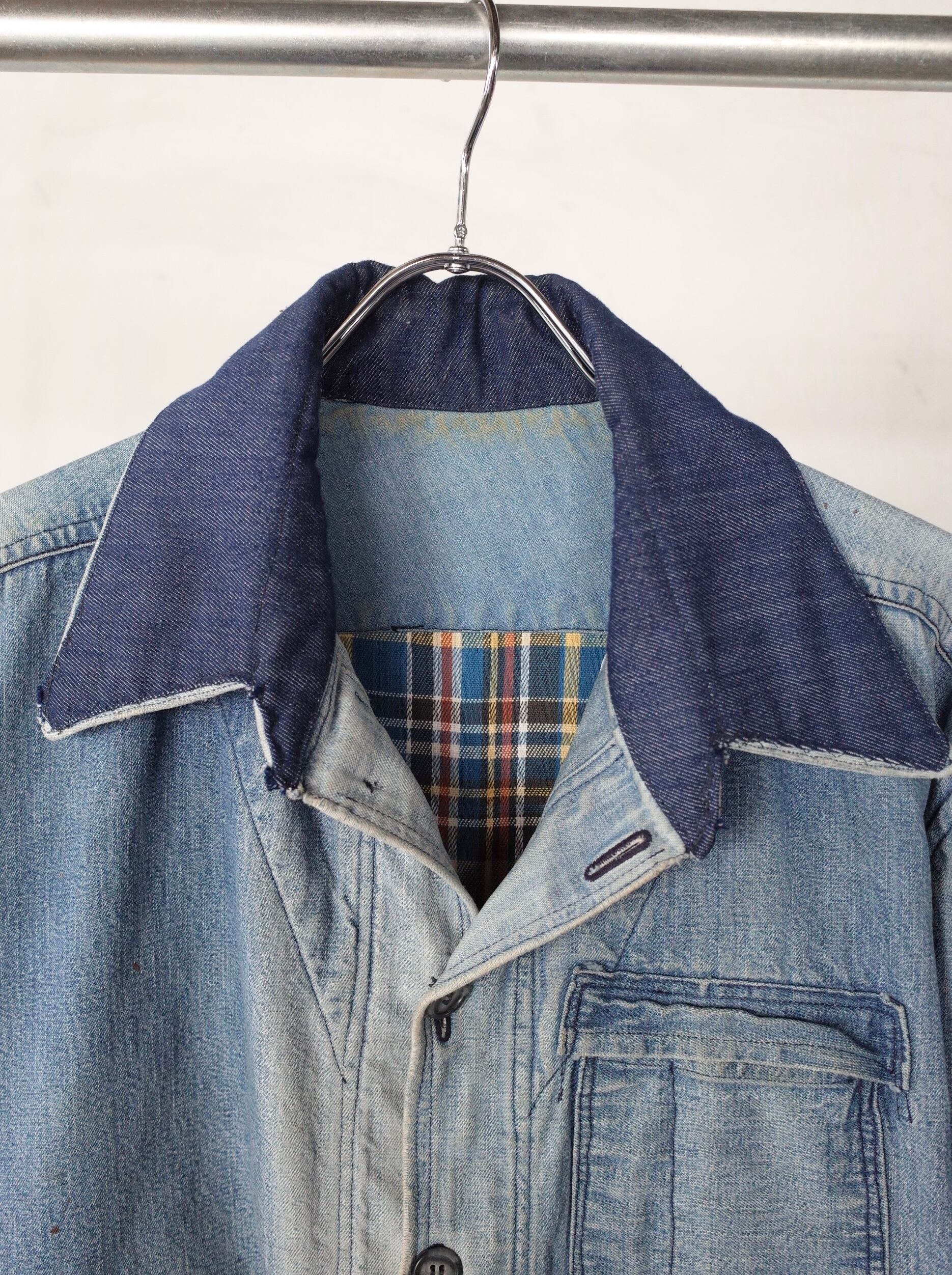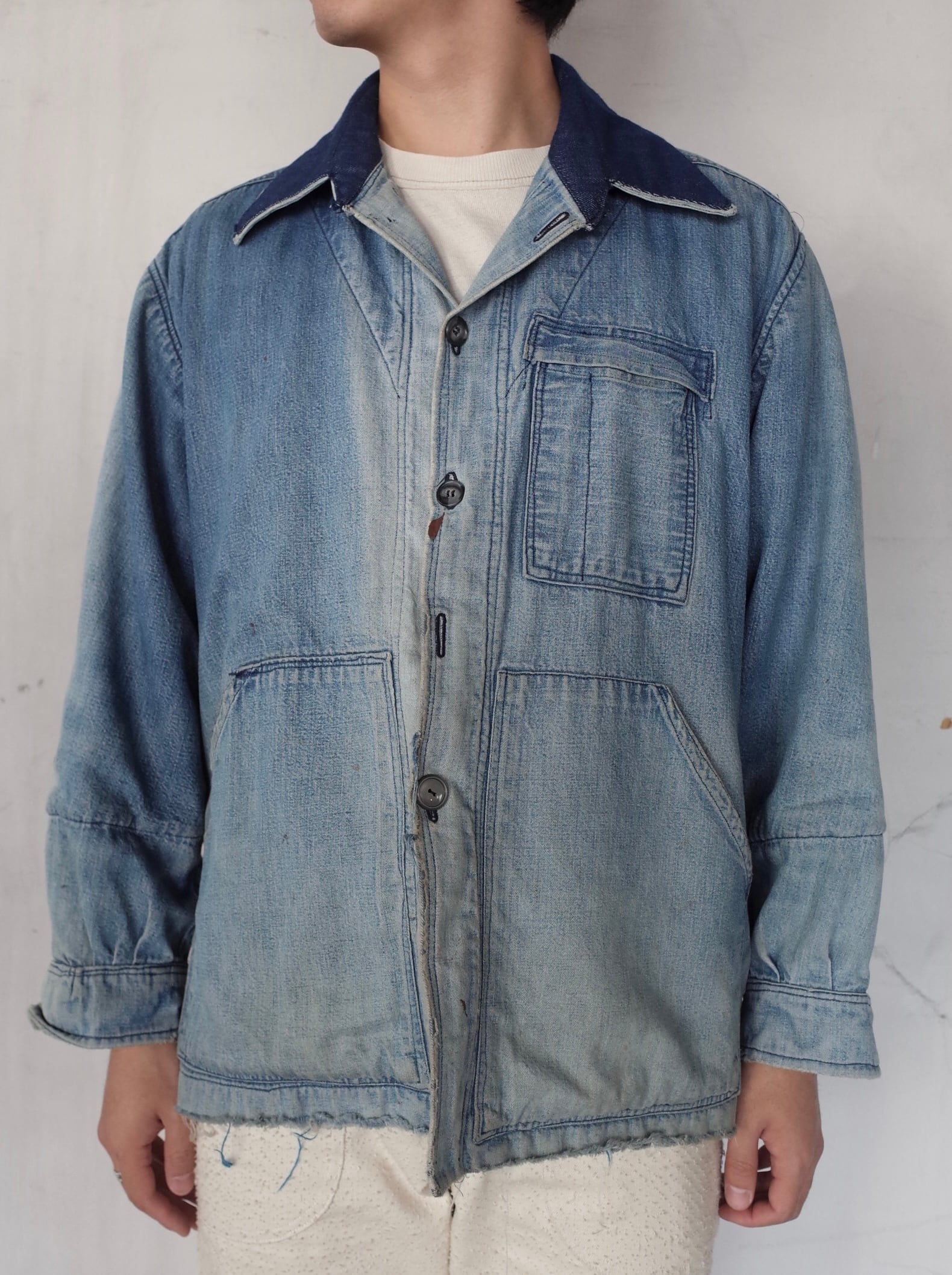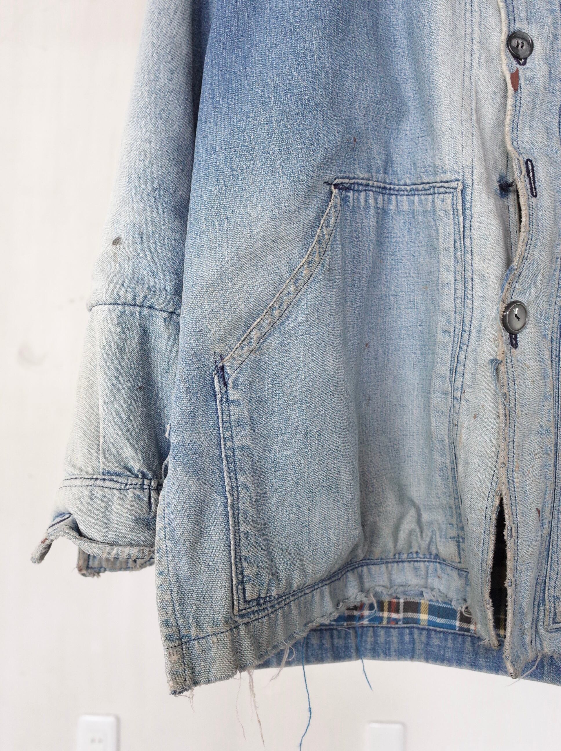 デニムながらに柔らかくなった生地感や各所のアタリが長年愛用されていた事が伝わる1枚。