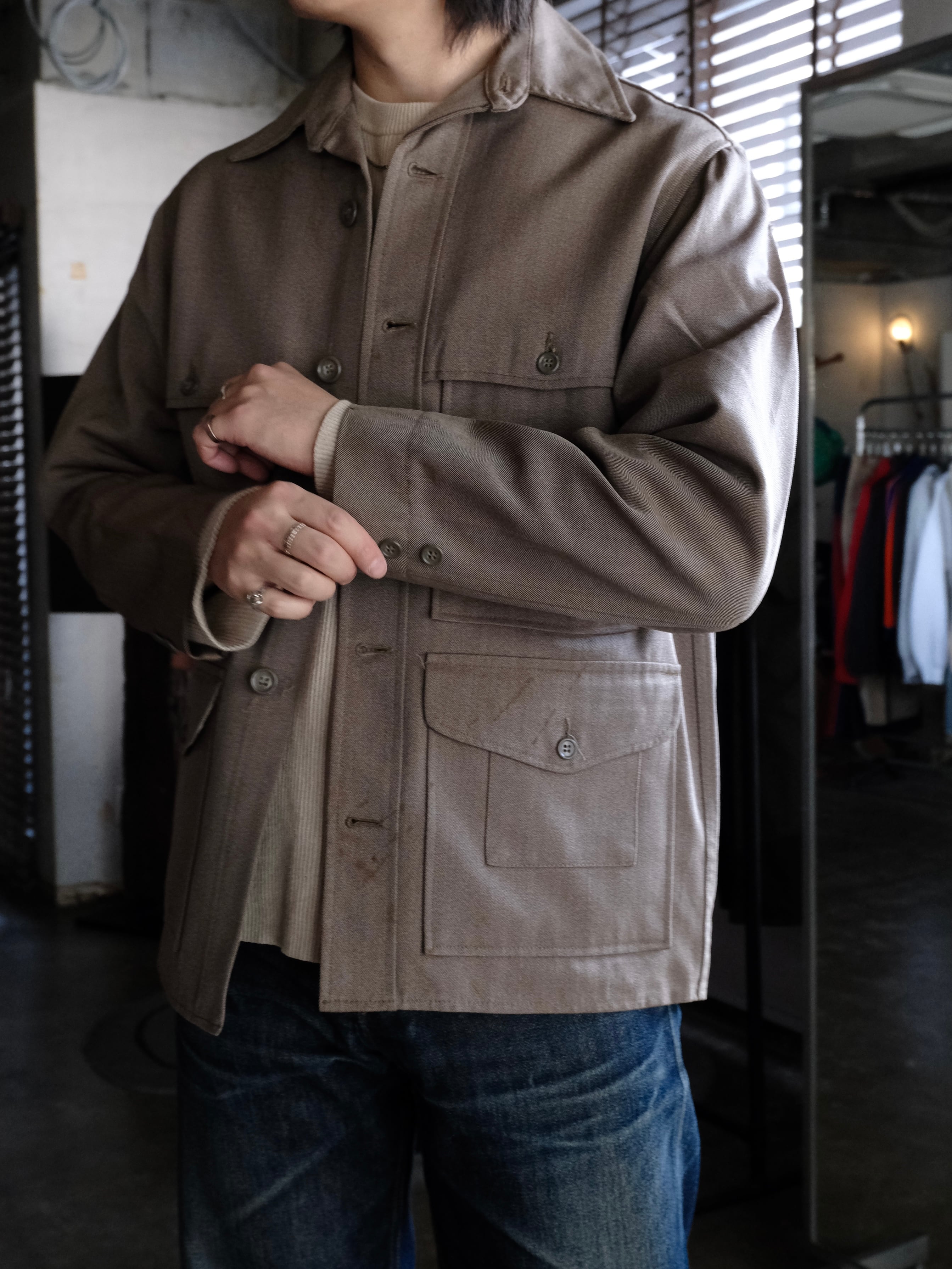 こちらはしっかりと目の詰まった生地を採用したハンティングジャケット。