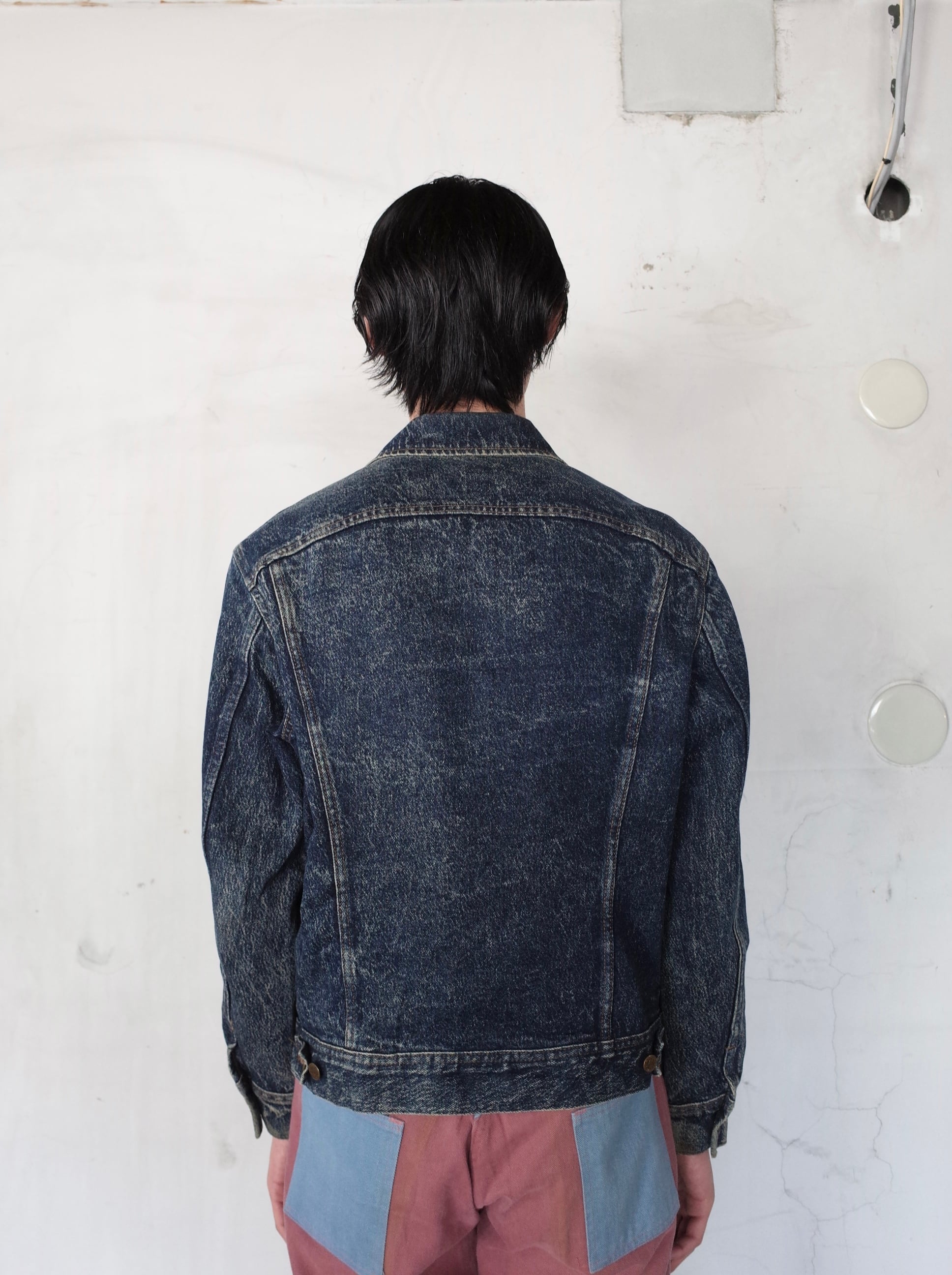 ケミカルウォッシュのような独特な色落ちが魅力的なデニムジャケットです。