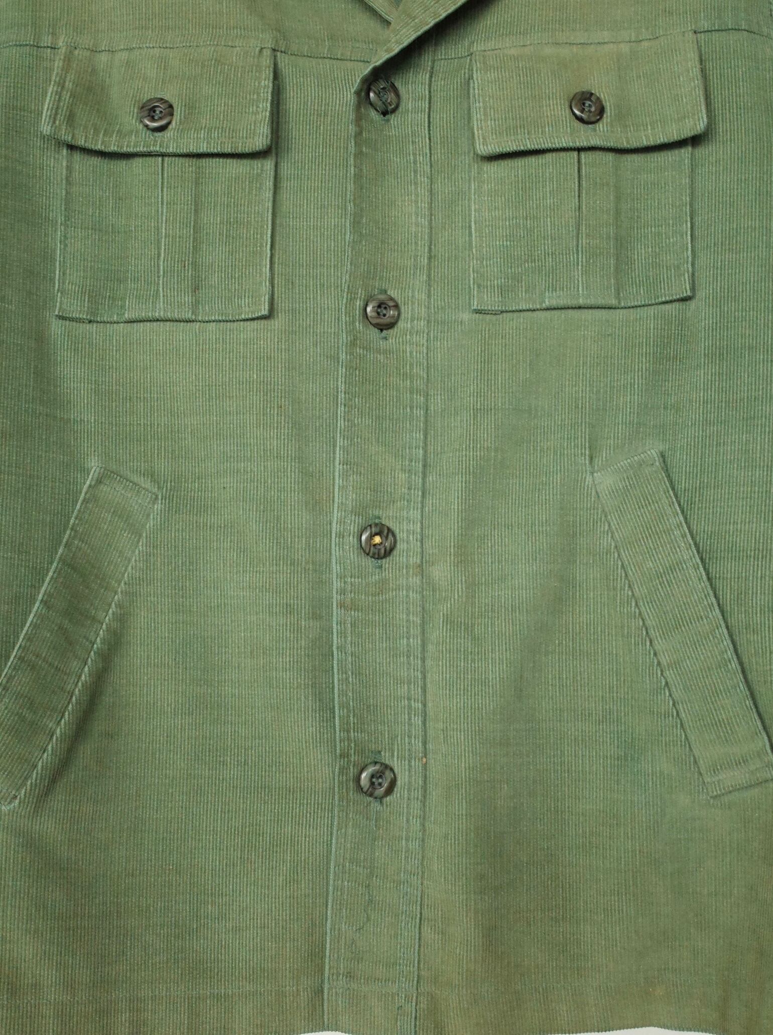 グリーンカラーのコーデュロイが日焼けによる変色がおこっており、