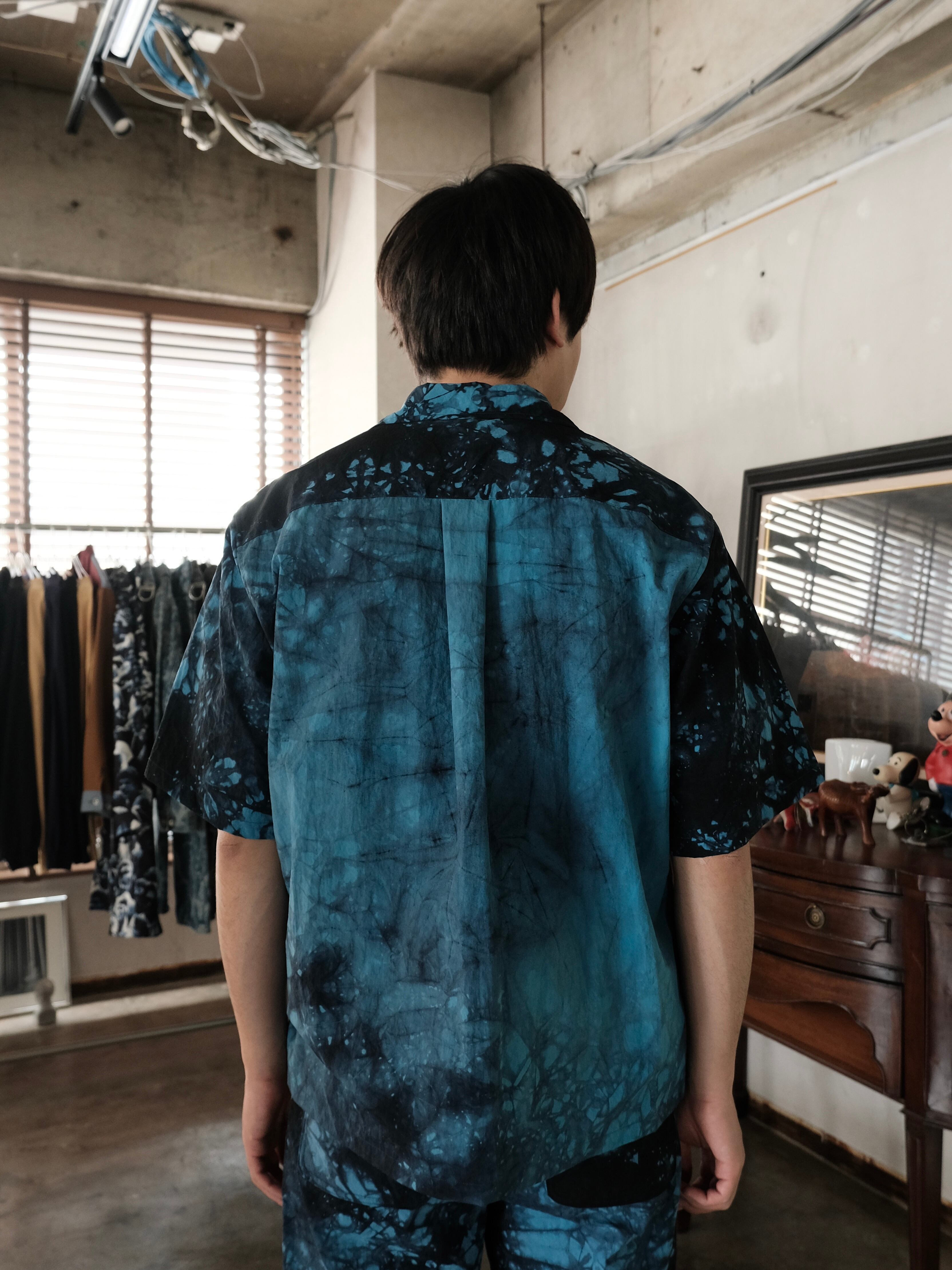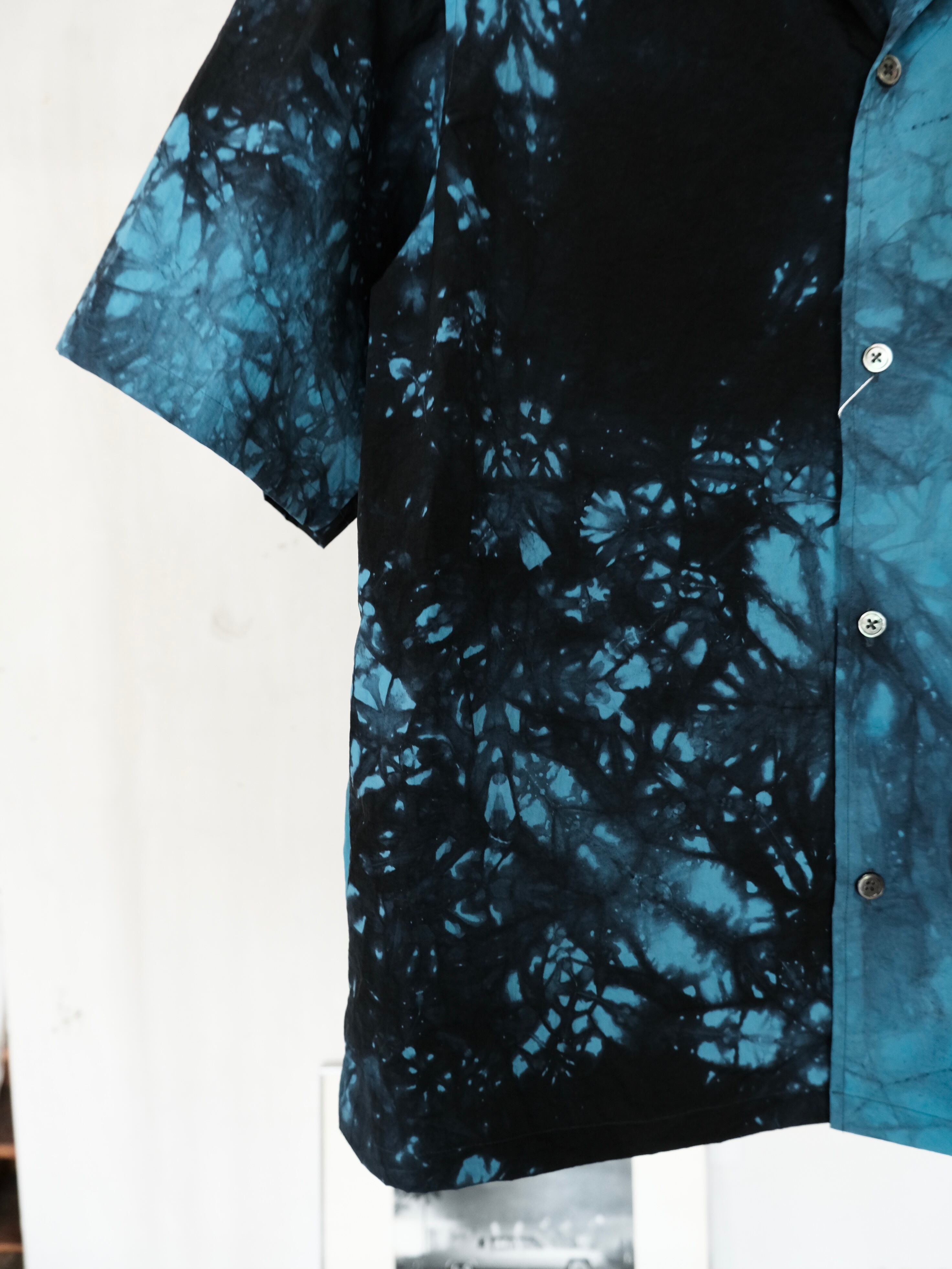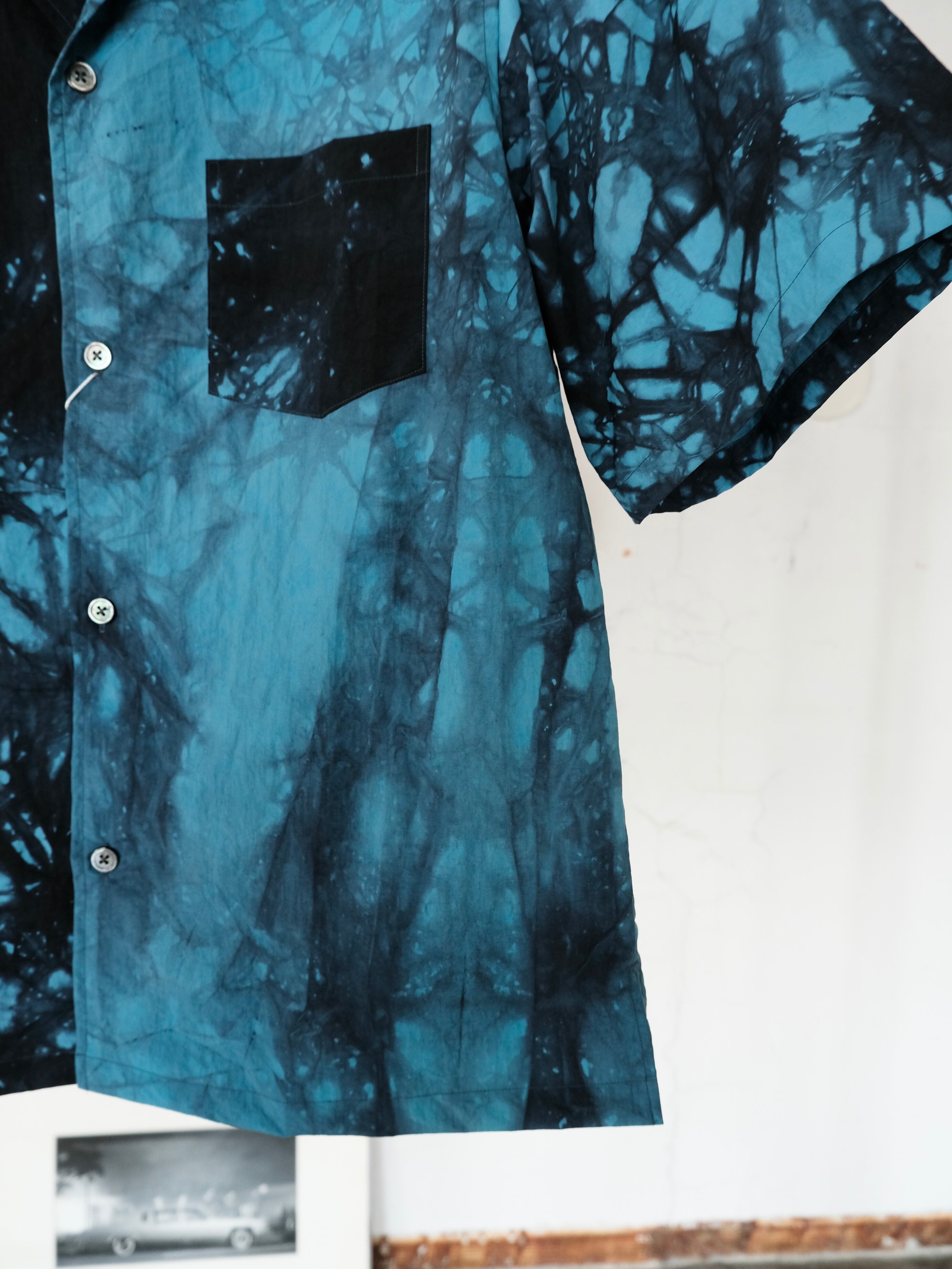 大胆に染められたオープンカラーシャツです。