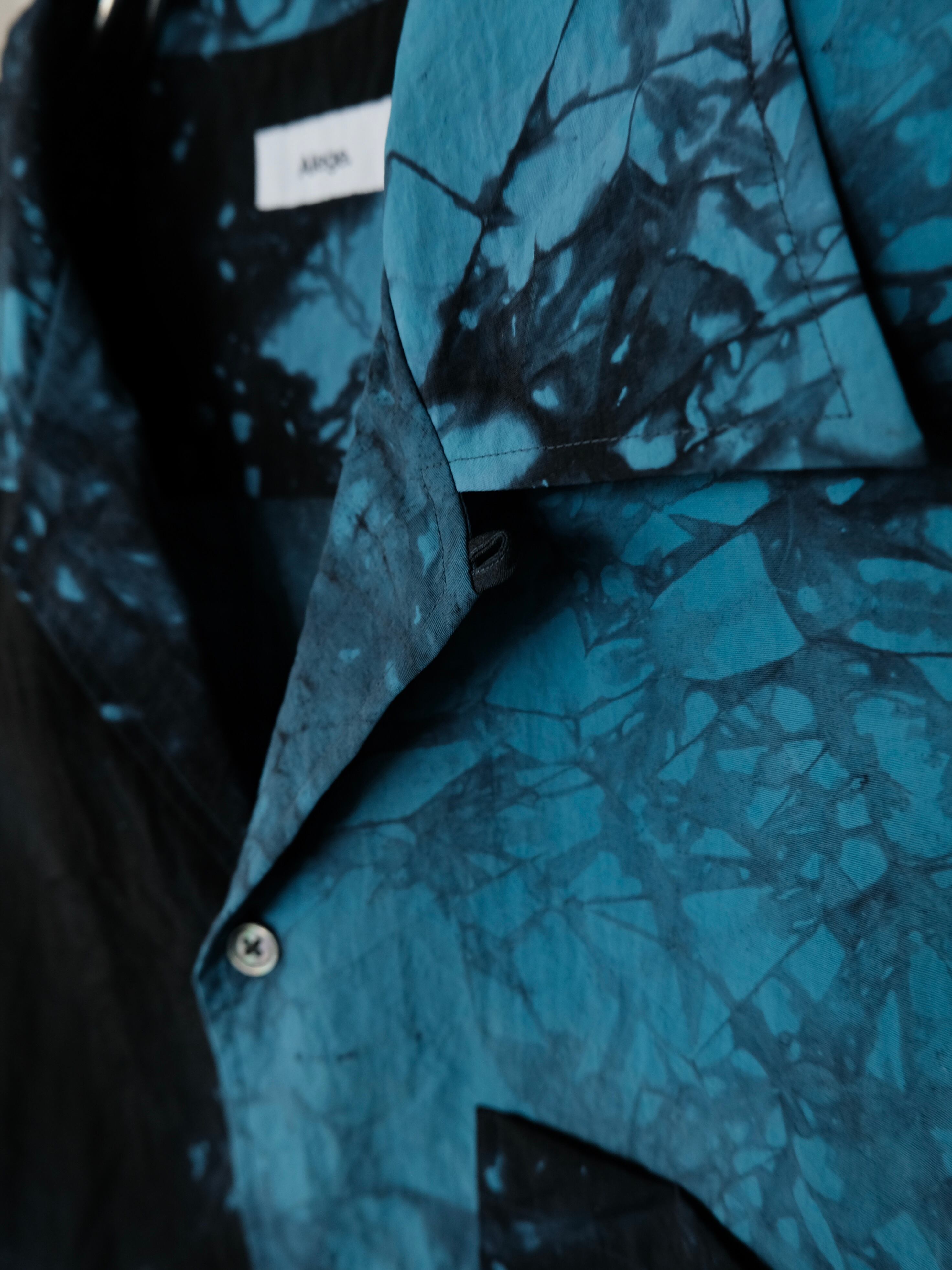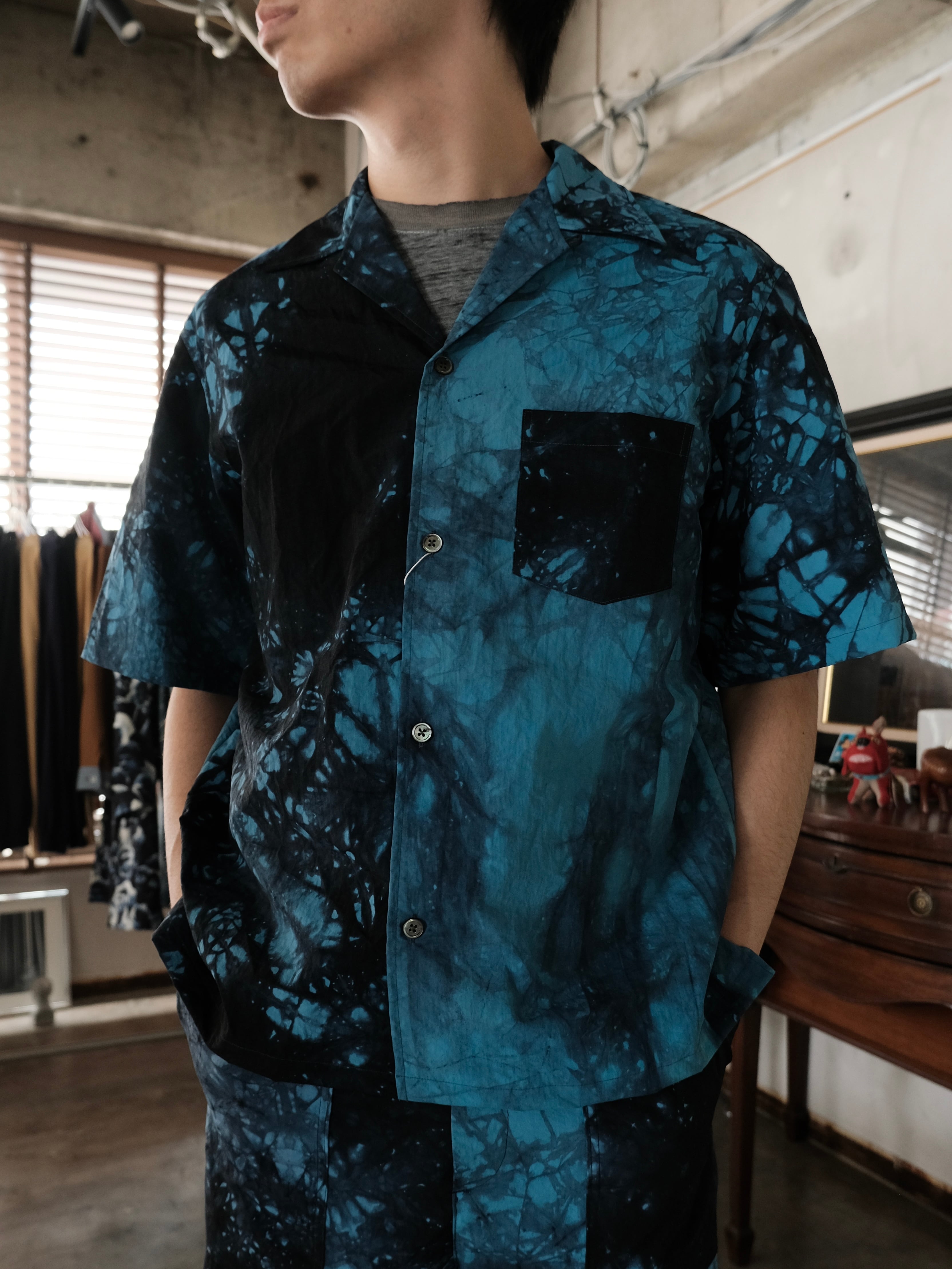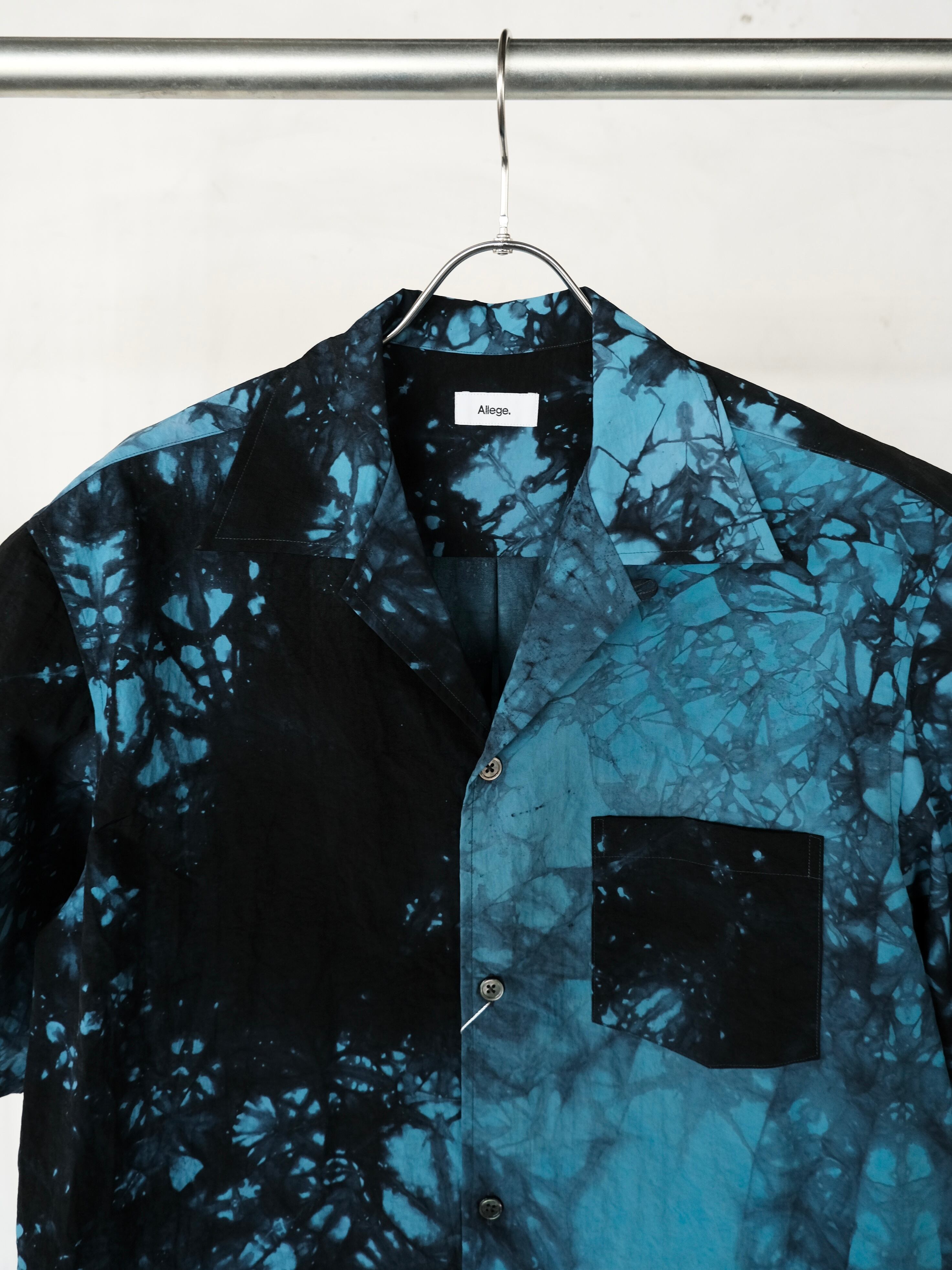 大胆に染められたオープンカラーシャツです。