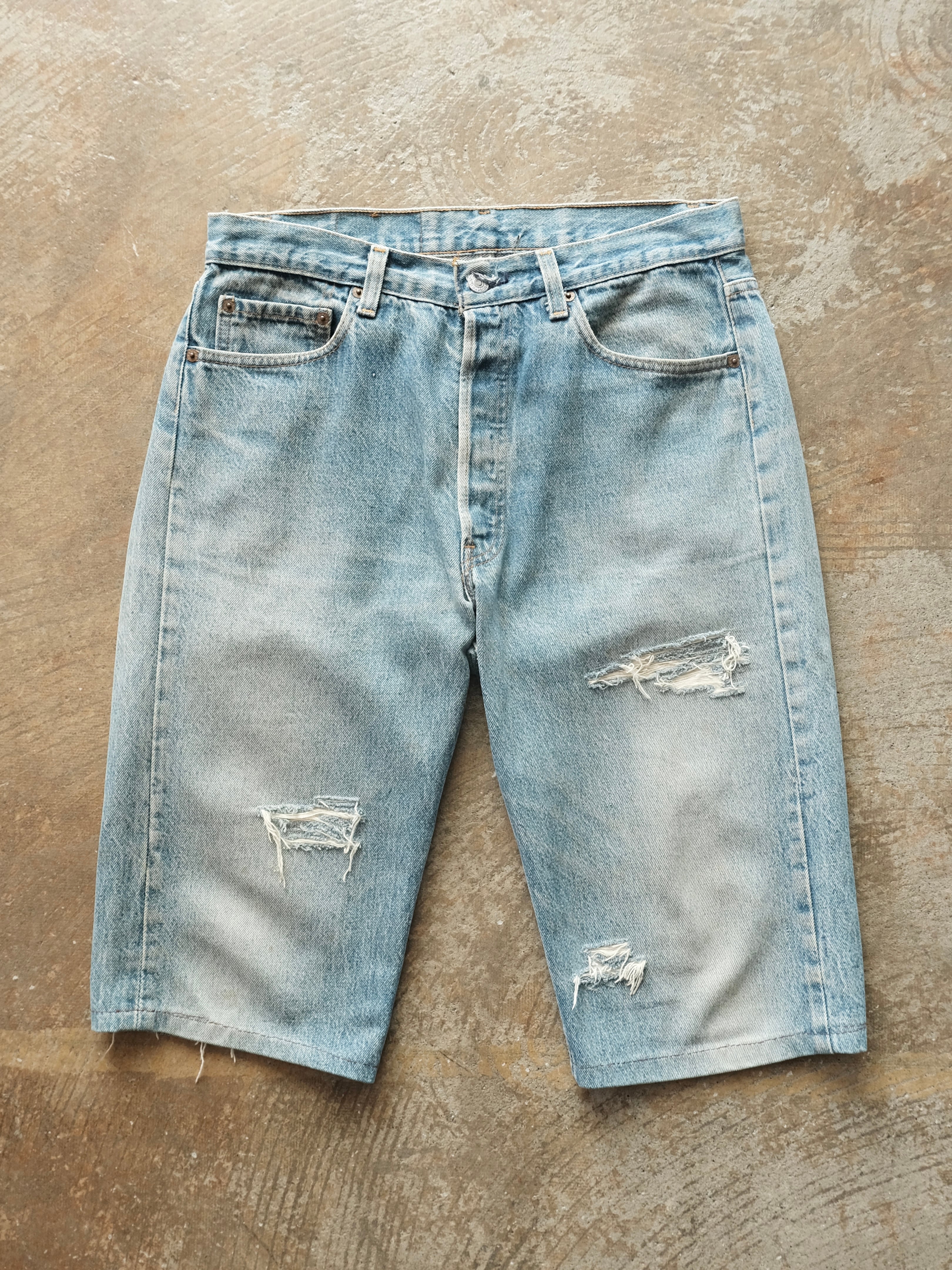 元はフルレングスであったであろう、501をショートパンツにリメイクされたこちら。
