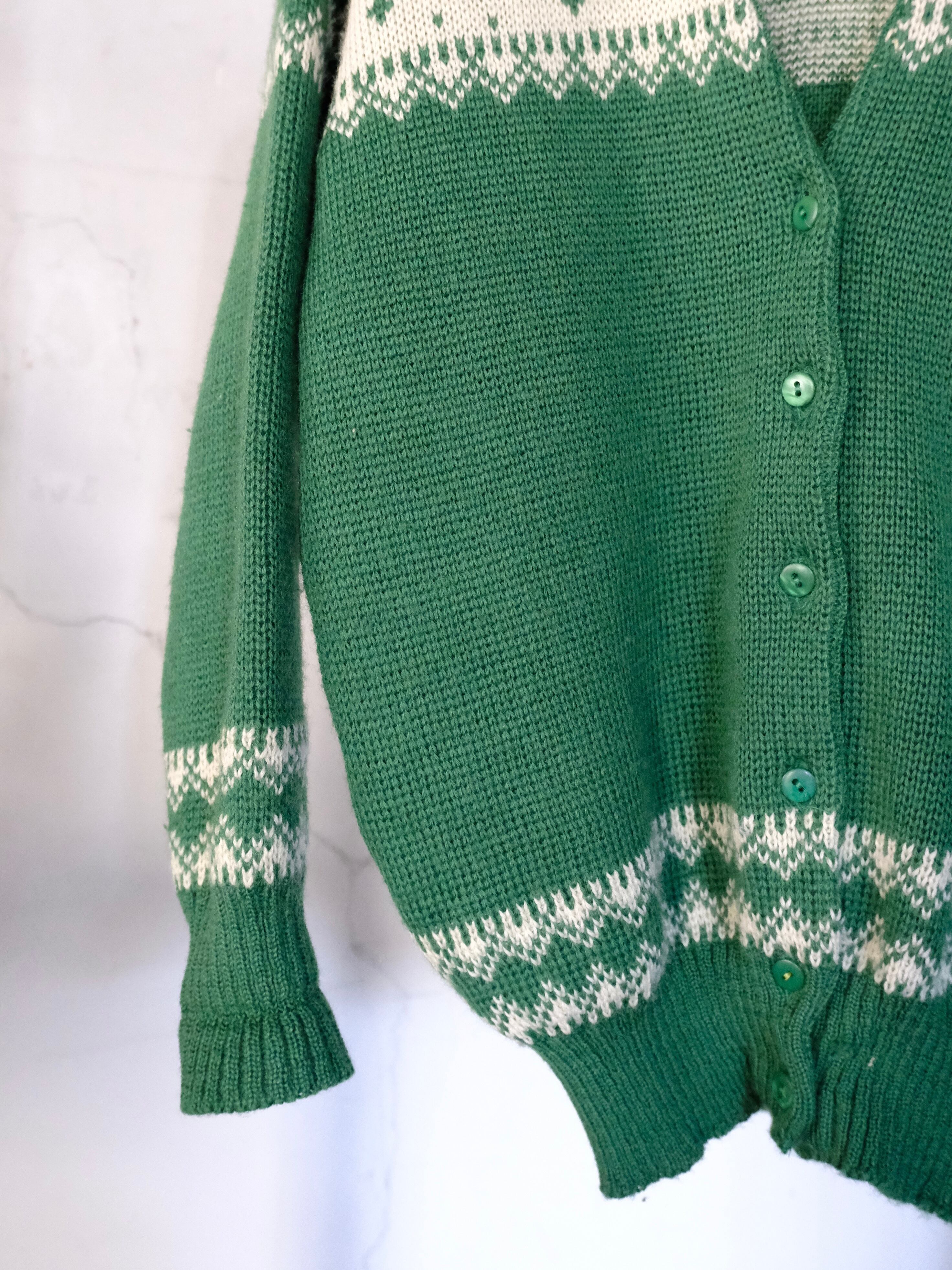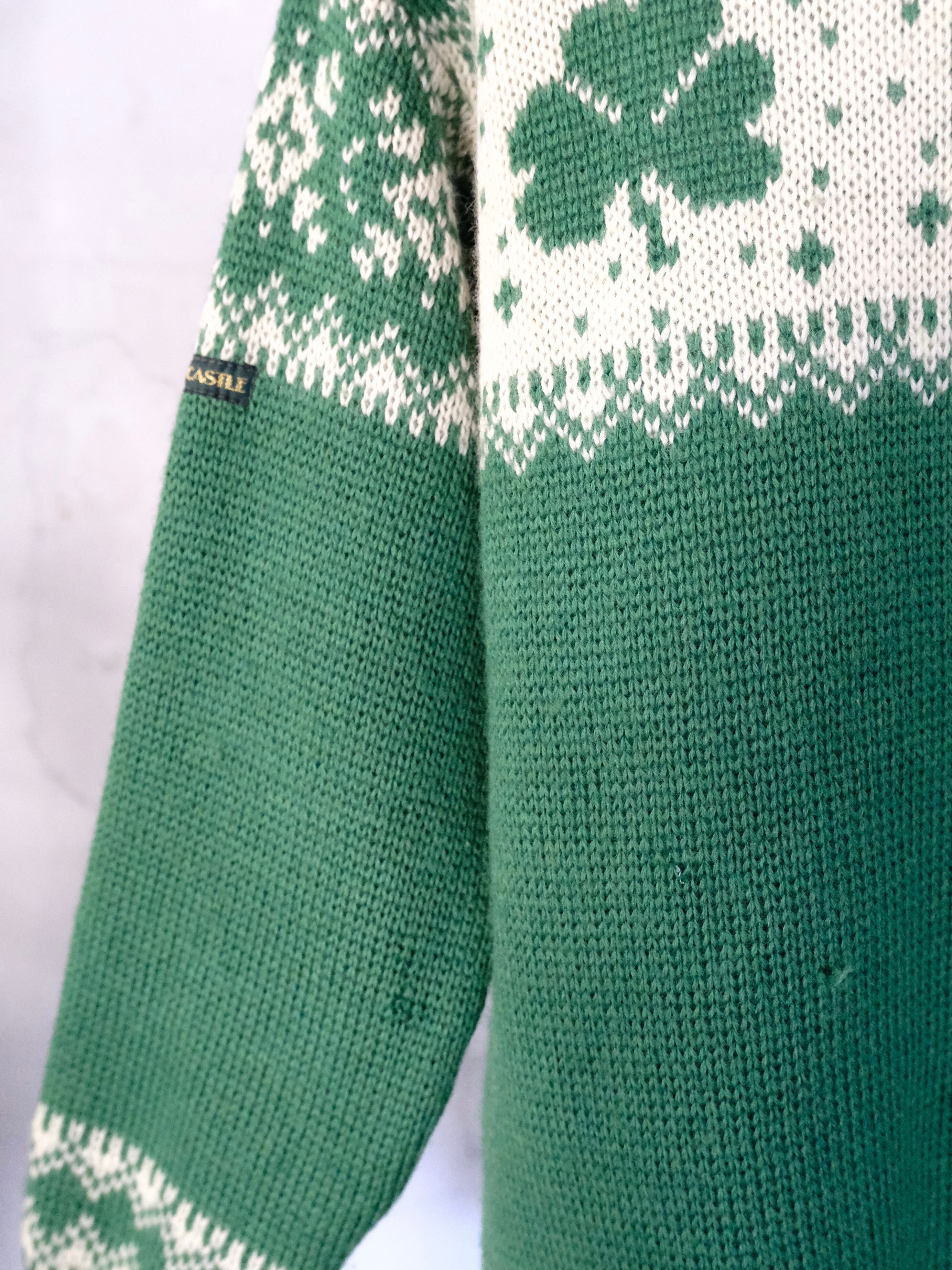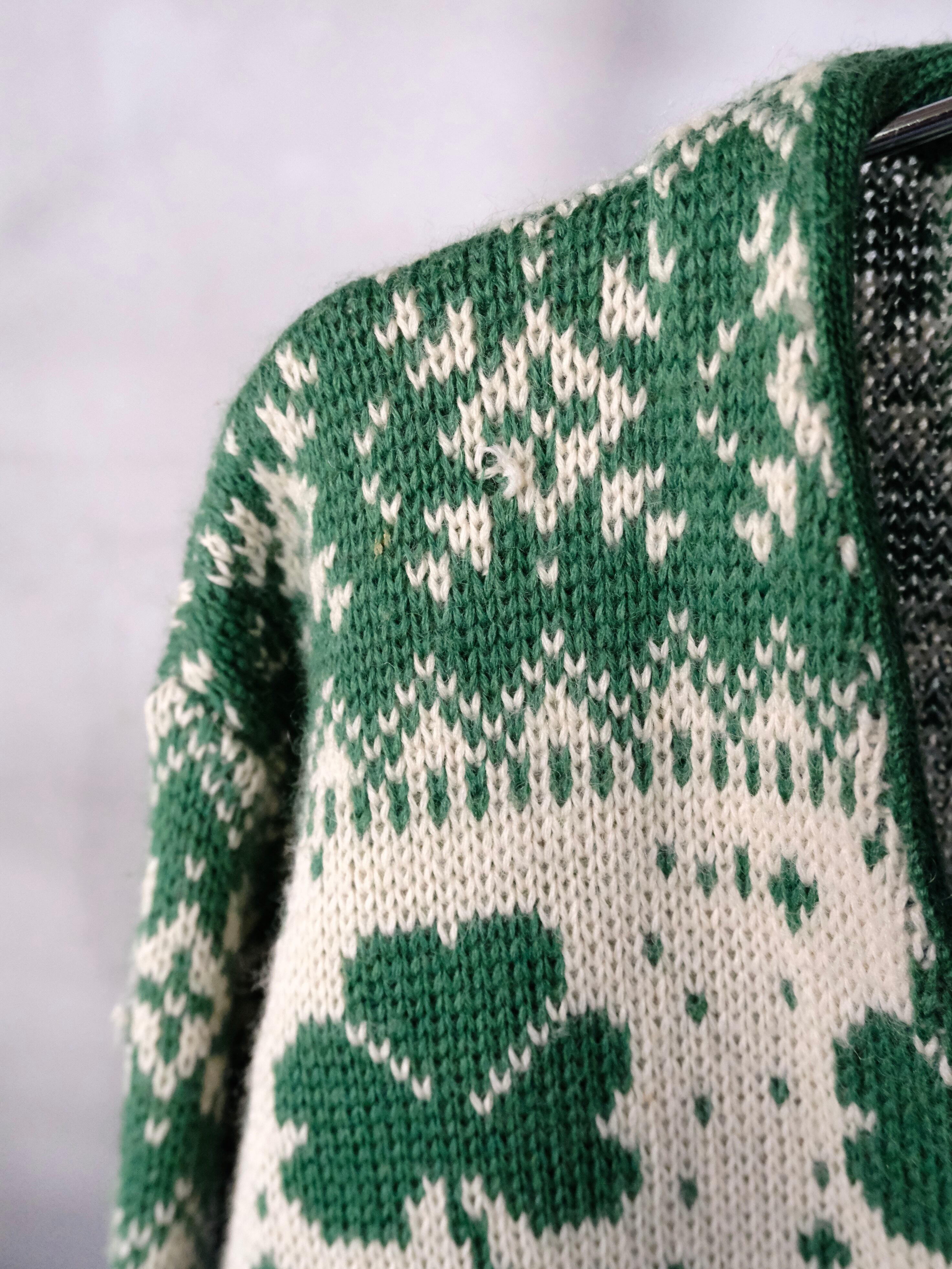 胸元周りには三つ葉のクローバー柄が編み込まれており、