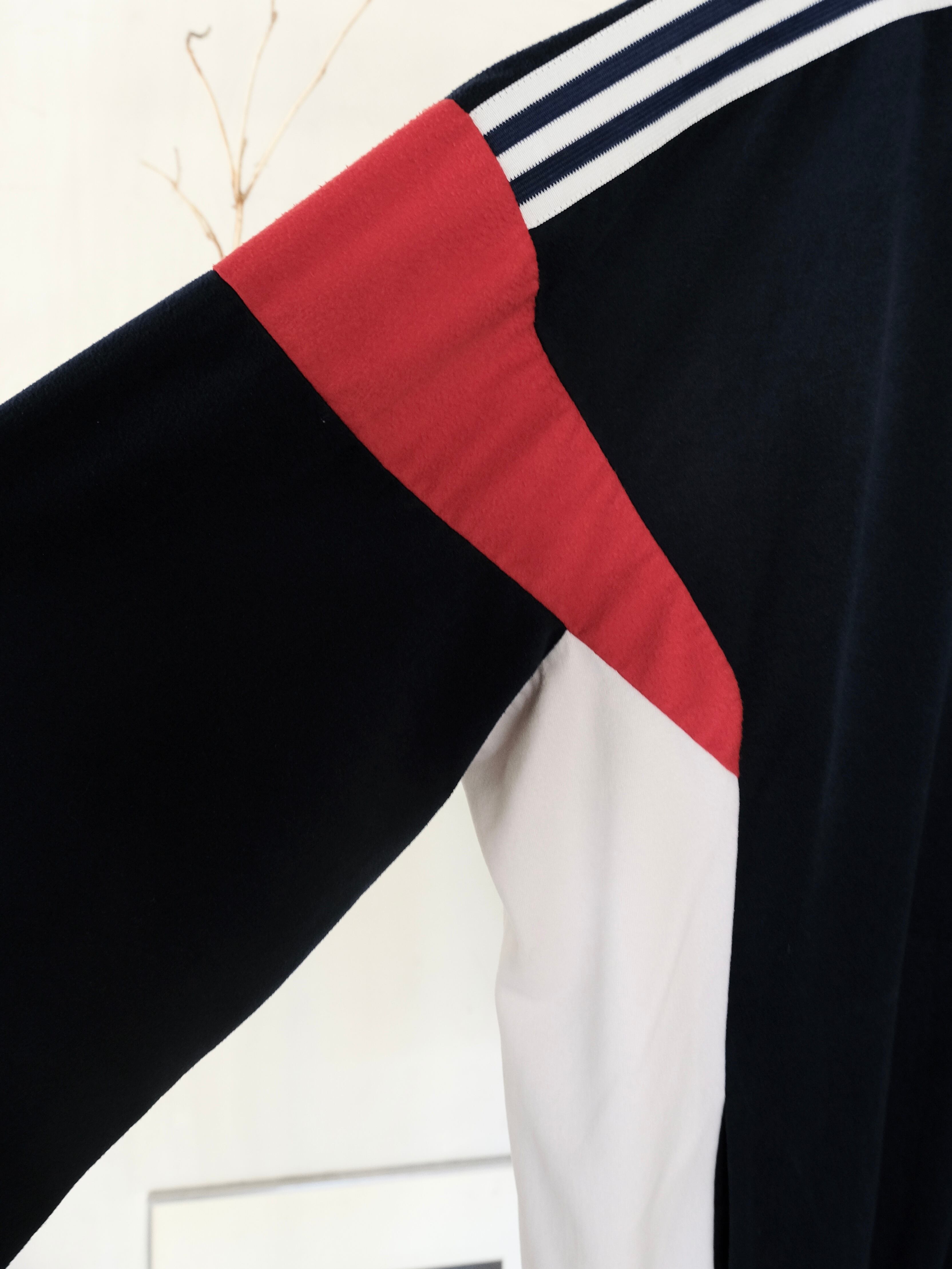 ネイビーベースにホワイト、レッドの切り替えが魅力的なトラックジャケットです。