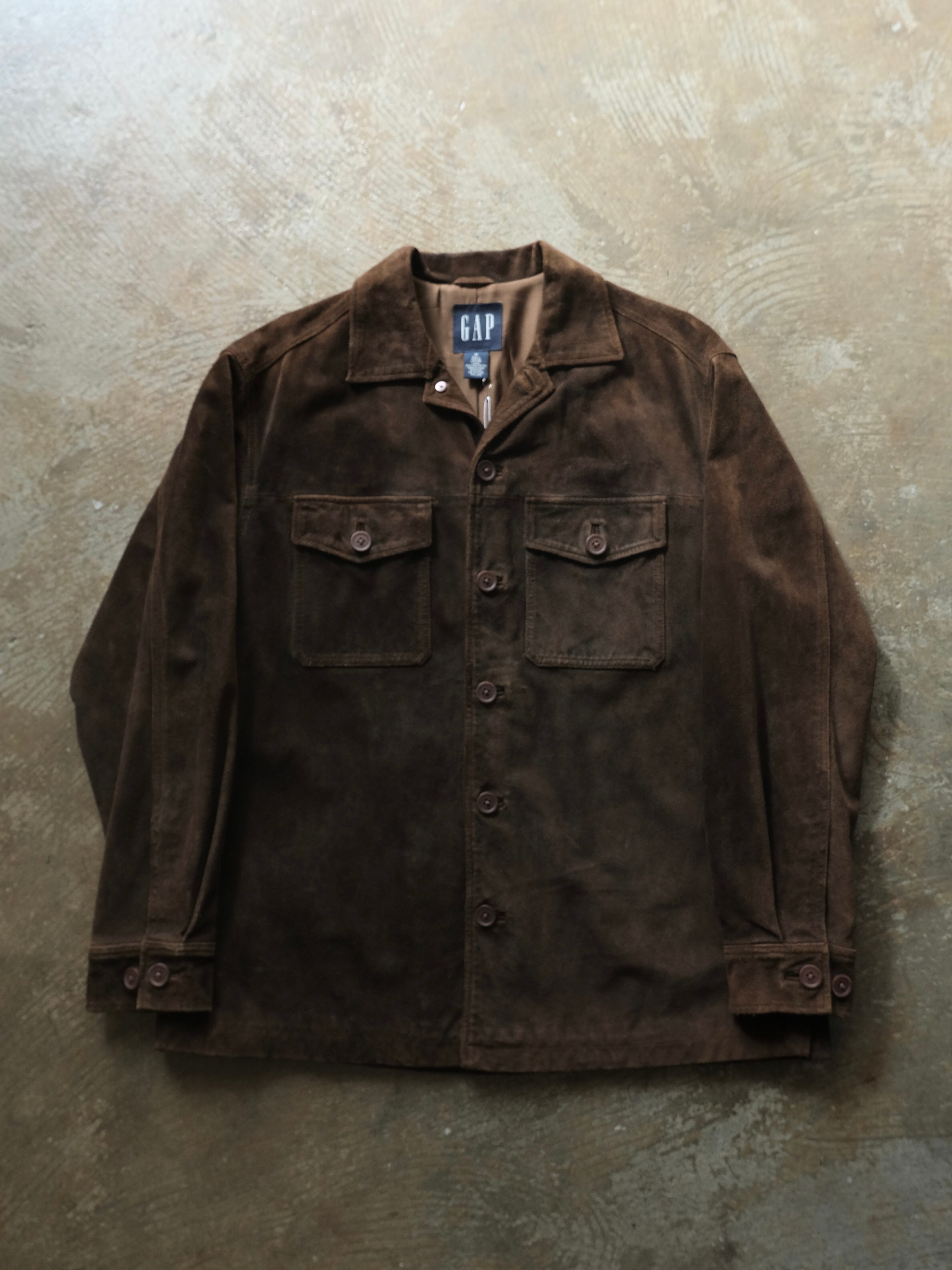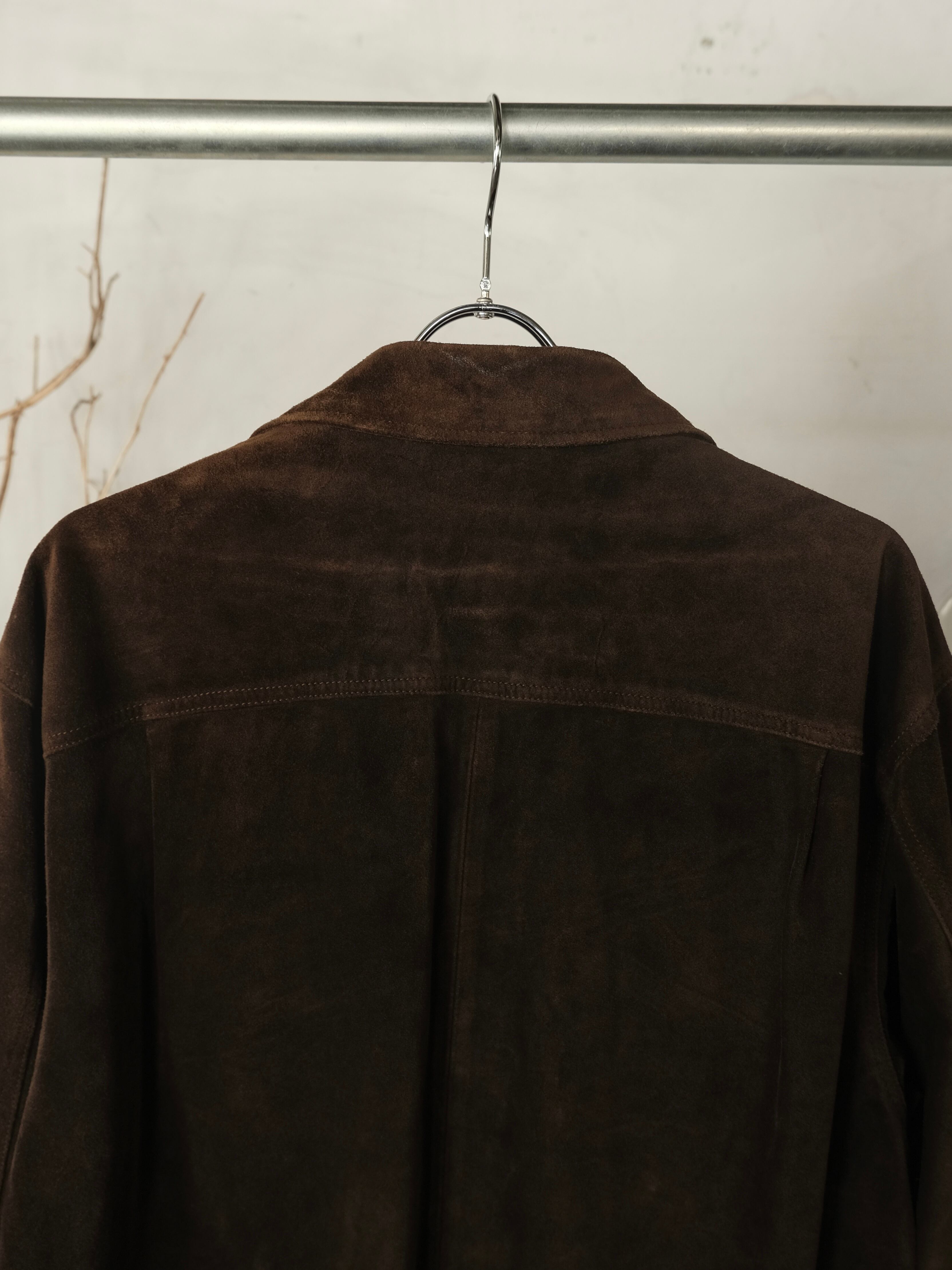 落ち着いたブラウンカラーのレザーが使用されたシャツです。