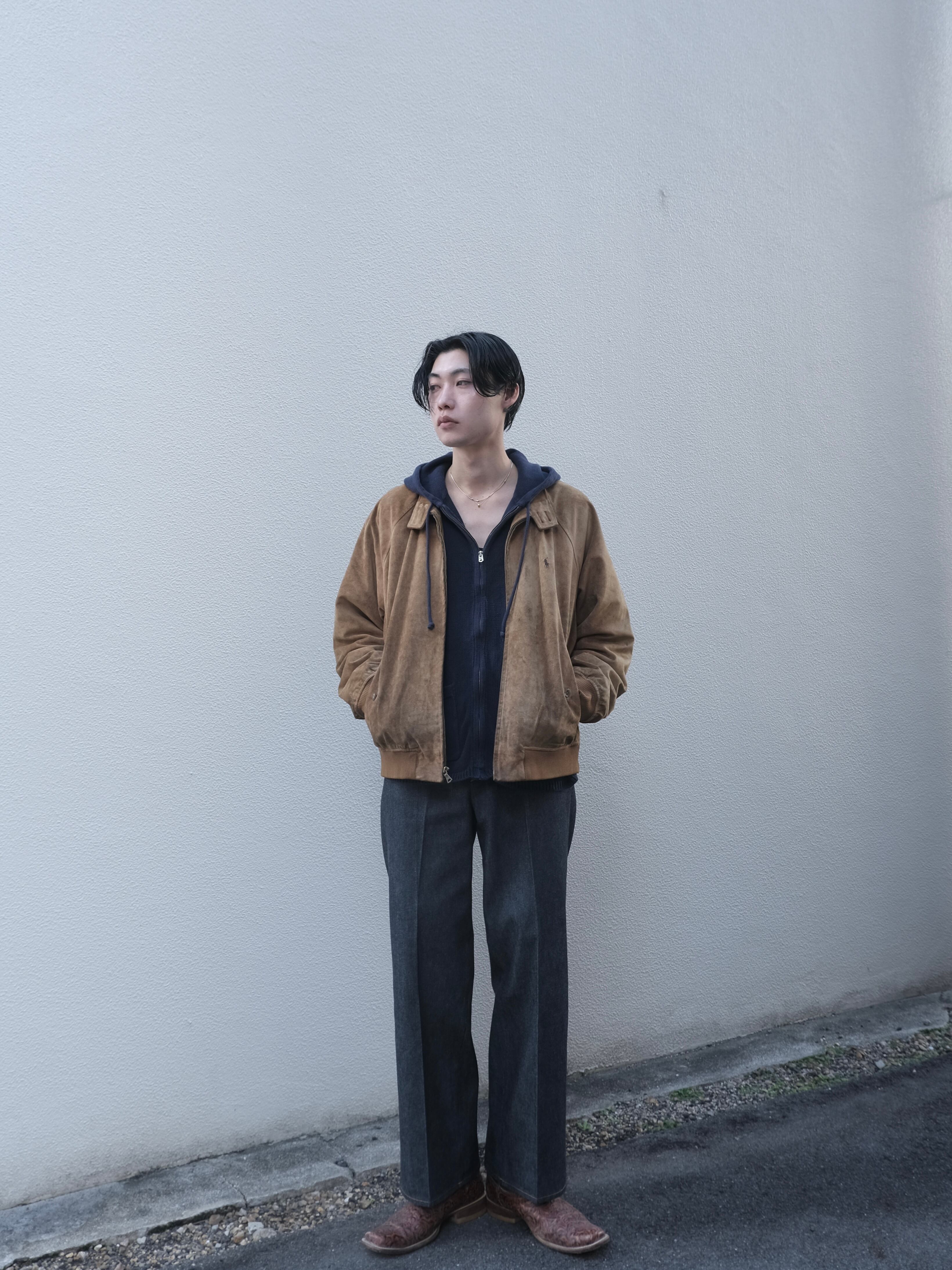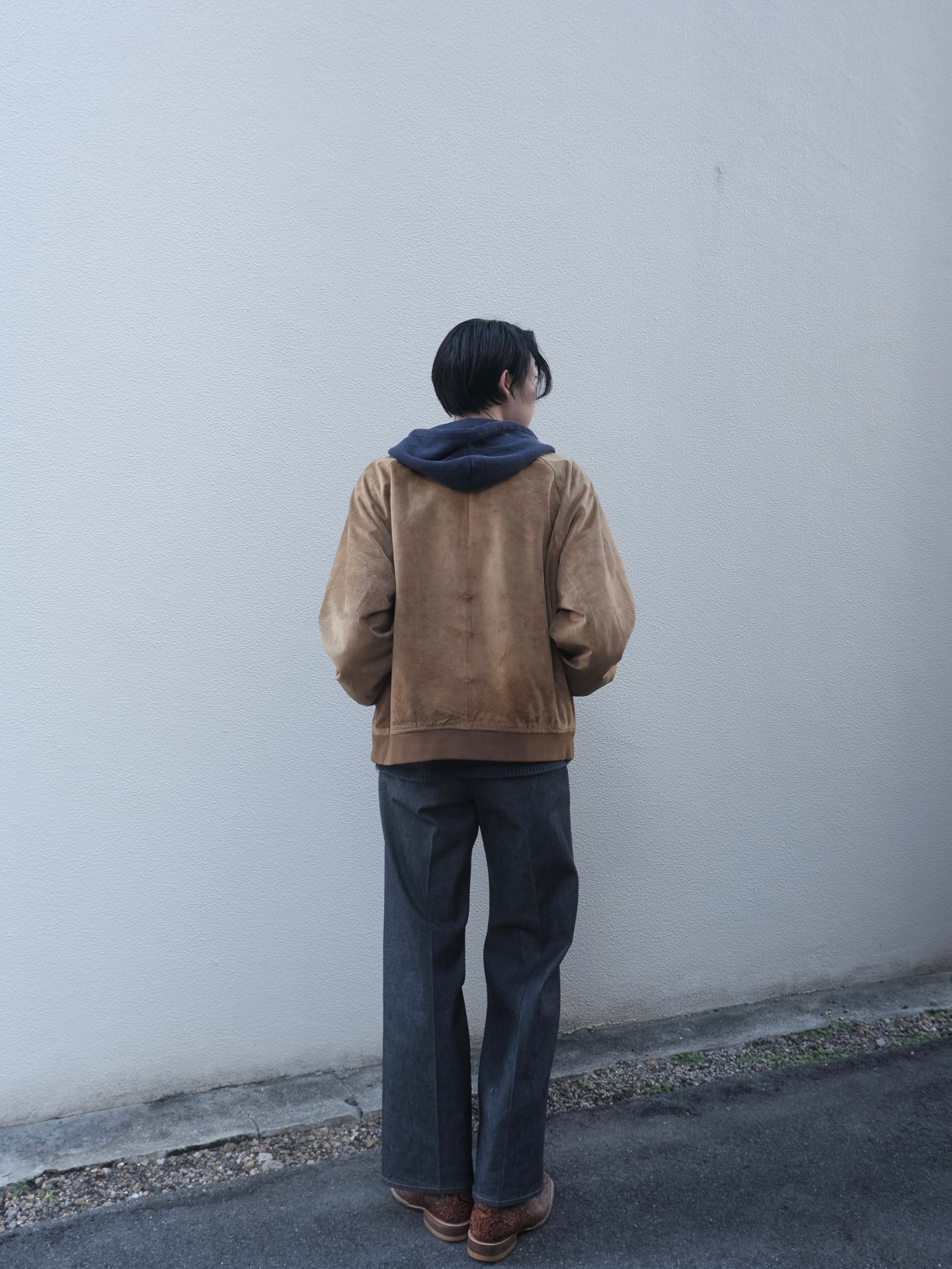 柔らかくも野暮ったさあるスウェードレザーが採用された1枚。