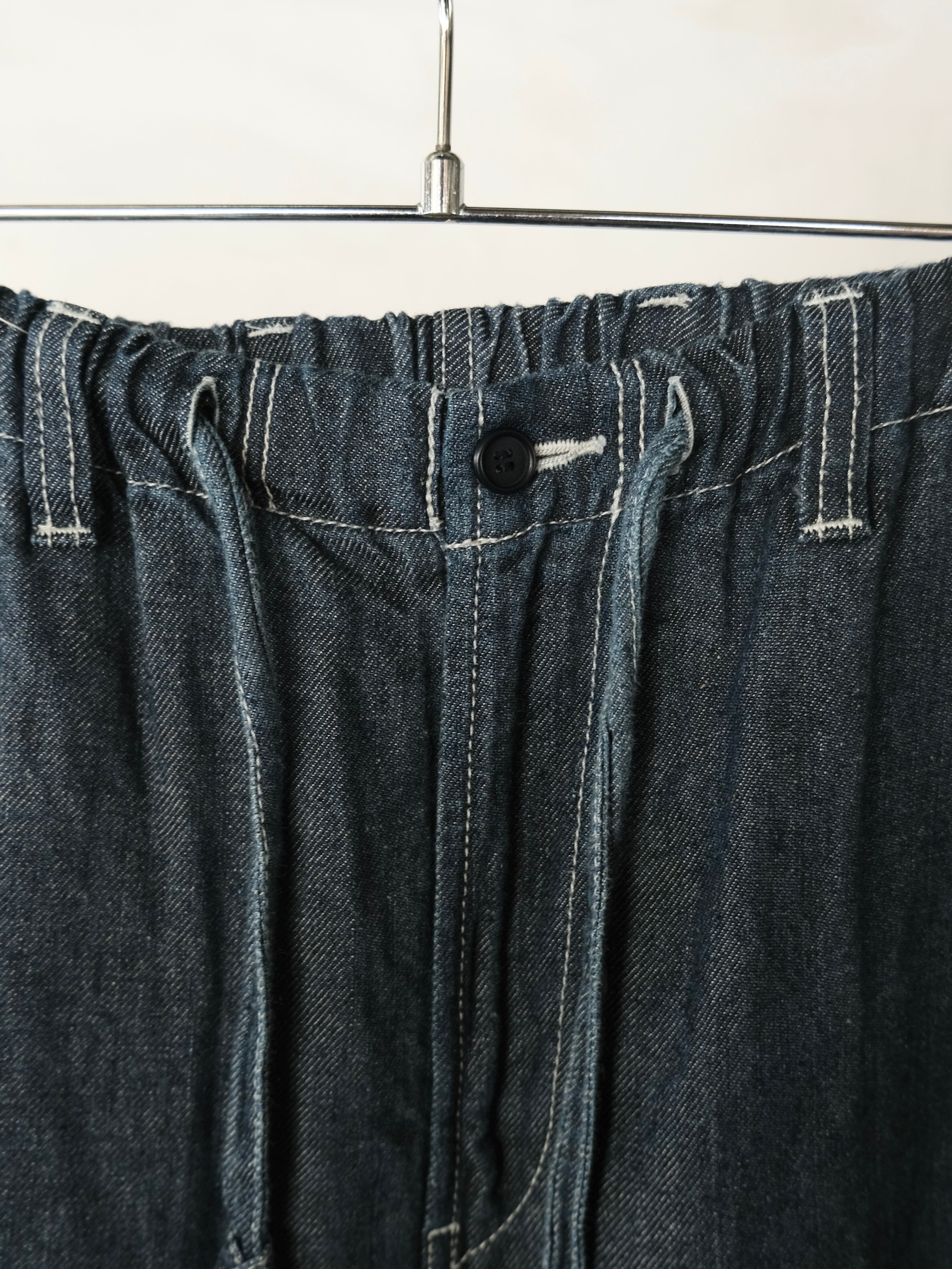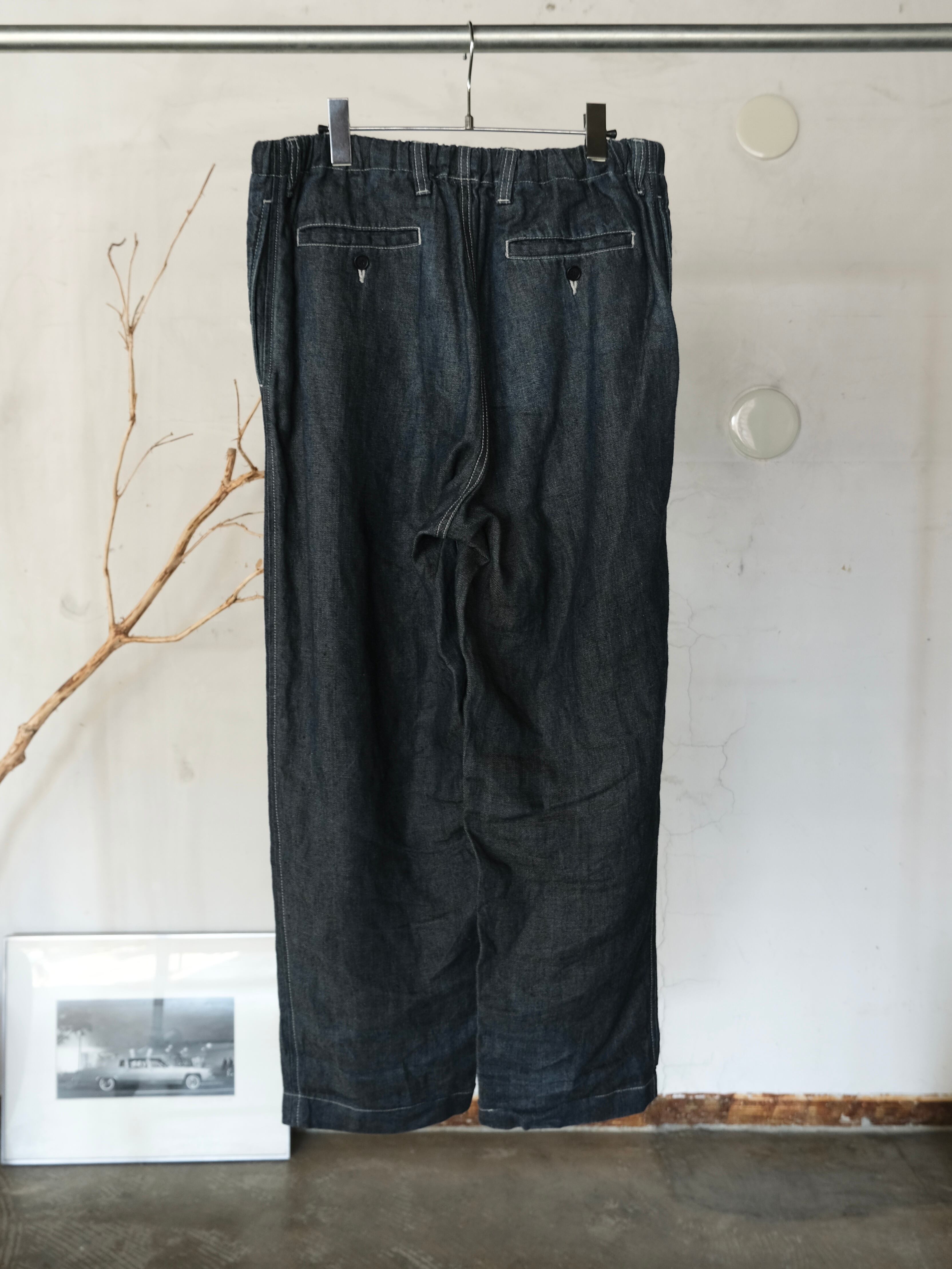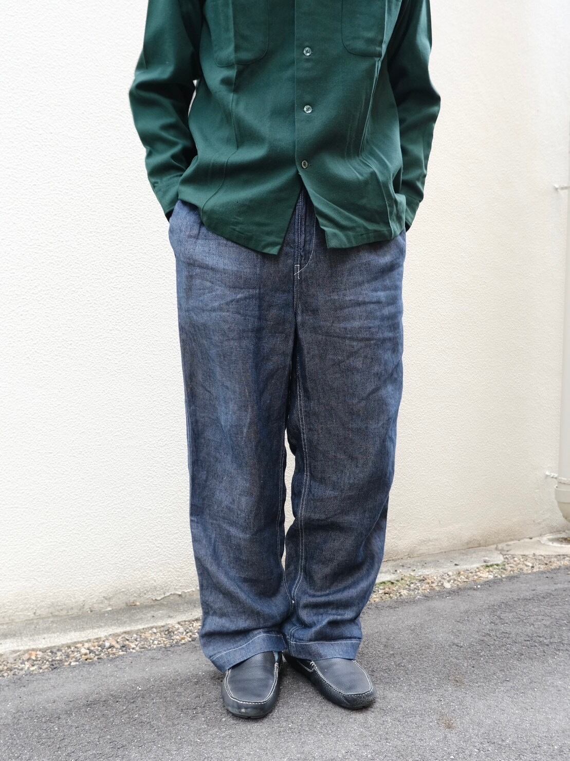 また鮮やかなインディゴカラーながらに、麻の揺れ感が涼しげで春夏にも履いていただきやすい1本です。