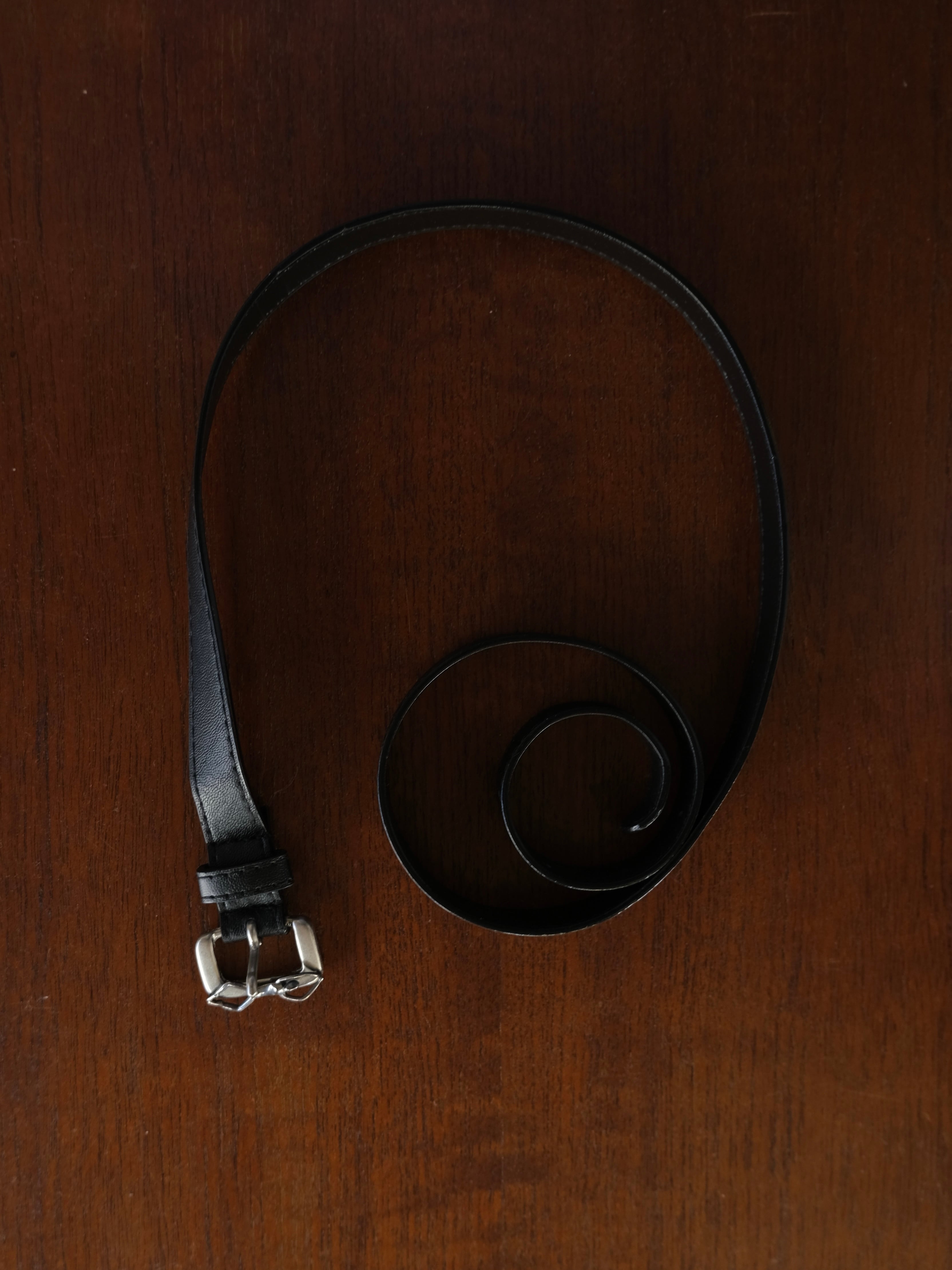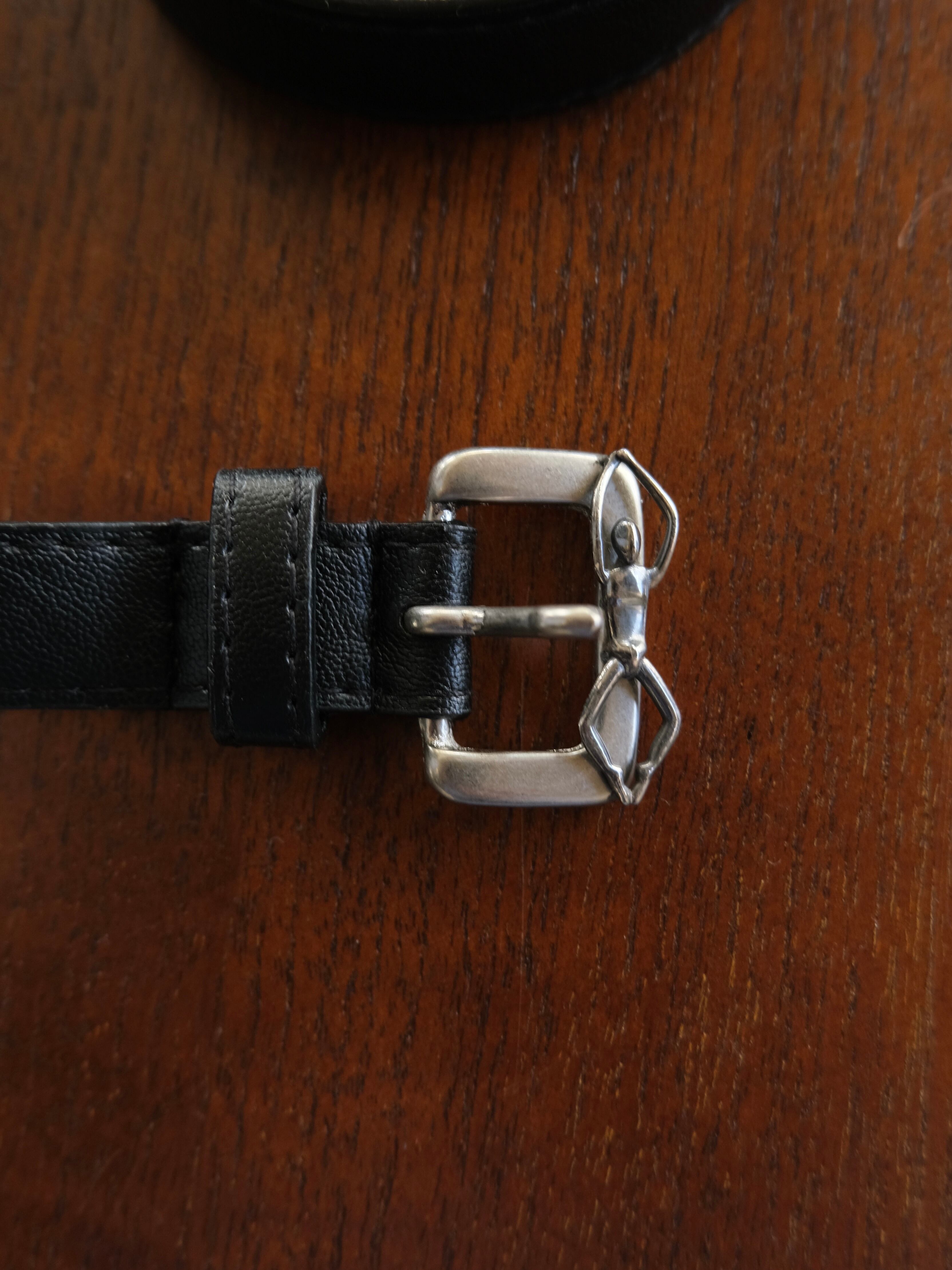 細くスッキリとしており上品さのあるベルトながらに、留め具部分には『Emy-dance』のモチーフが取り付けられており、
