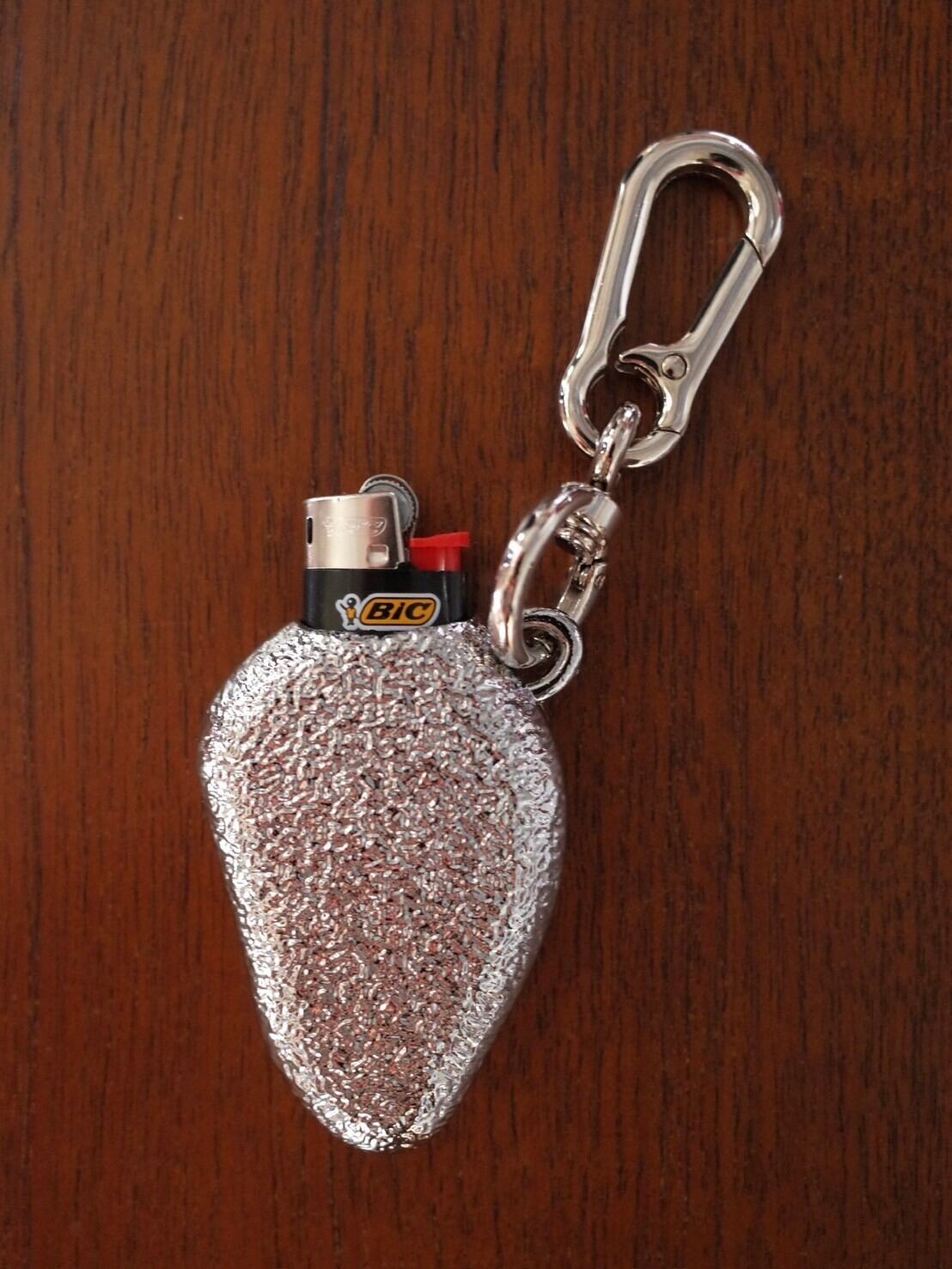 拾った川石から型をとり制作されたBIC専用のメタルライターケース。