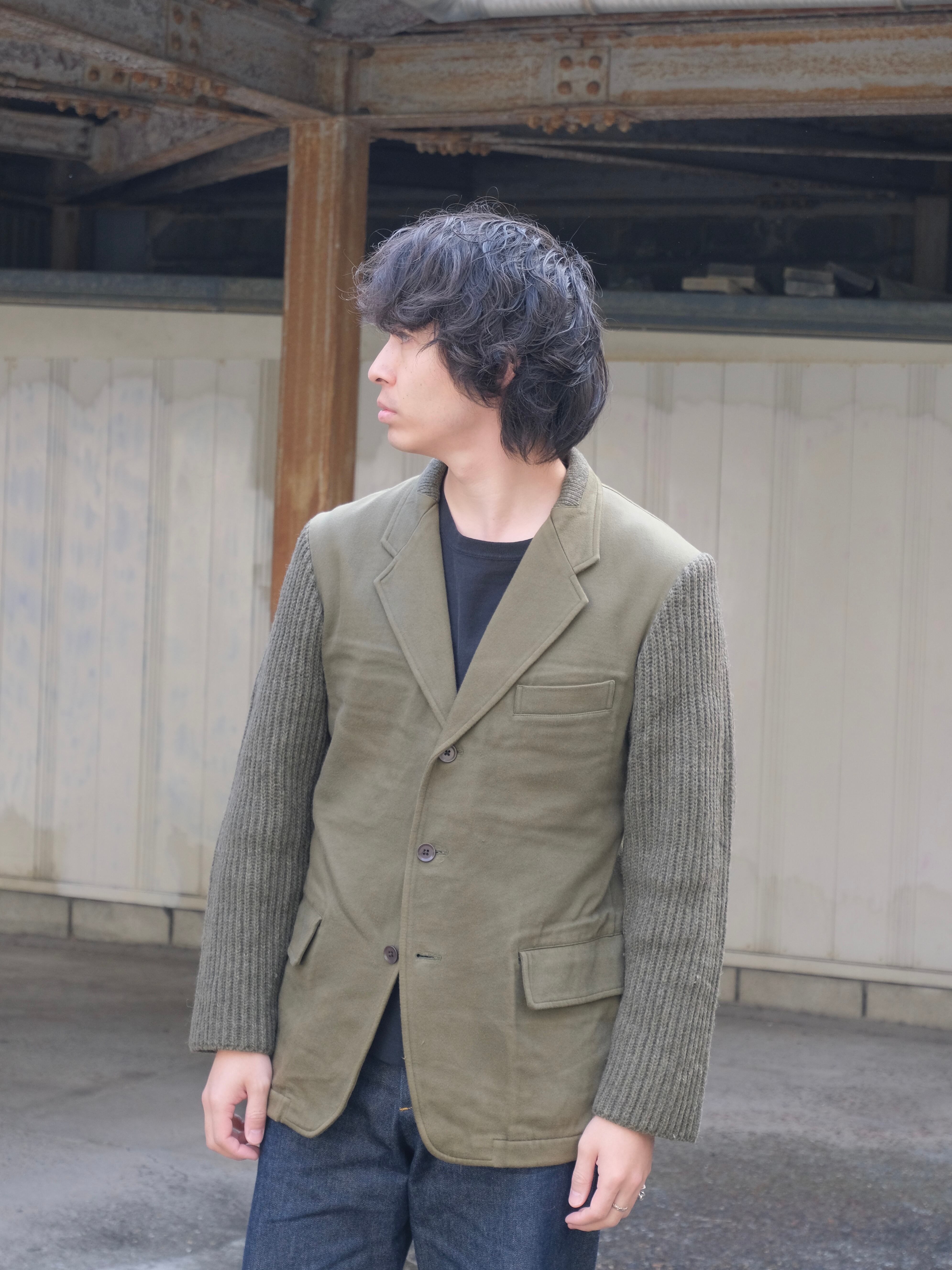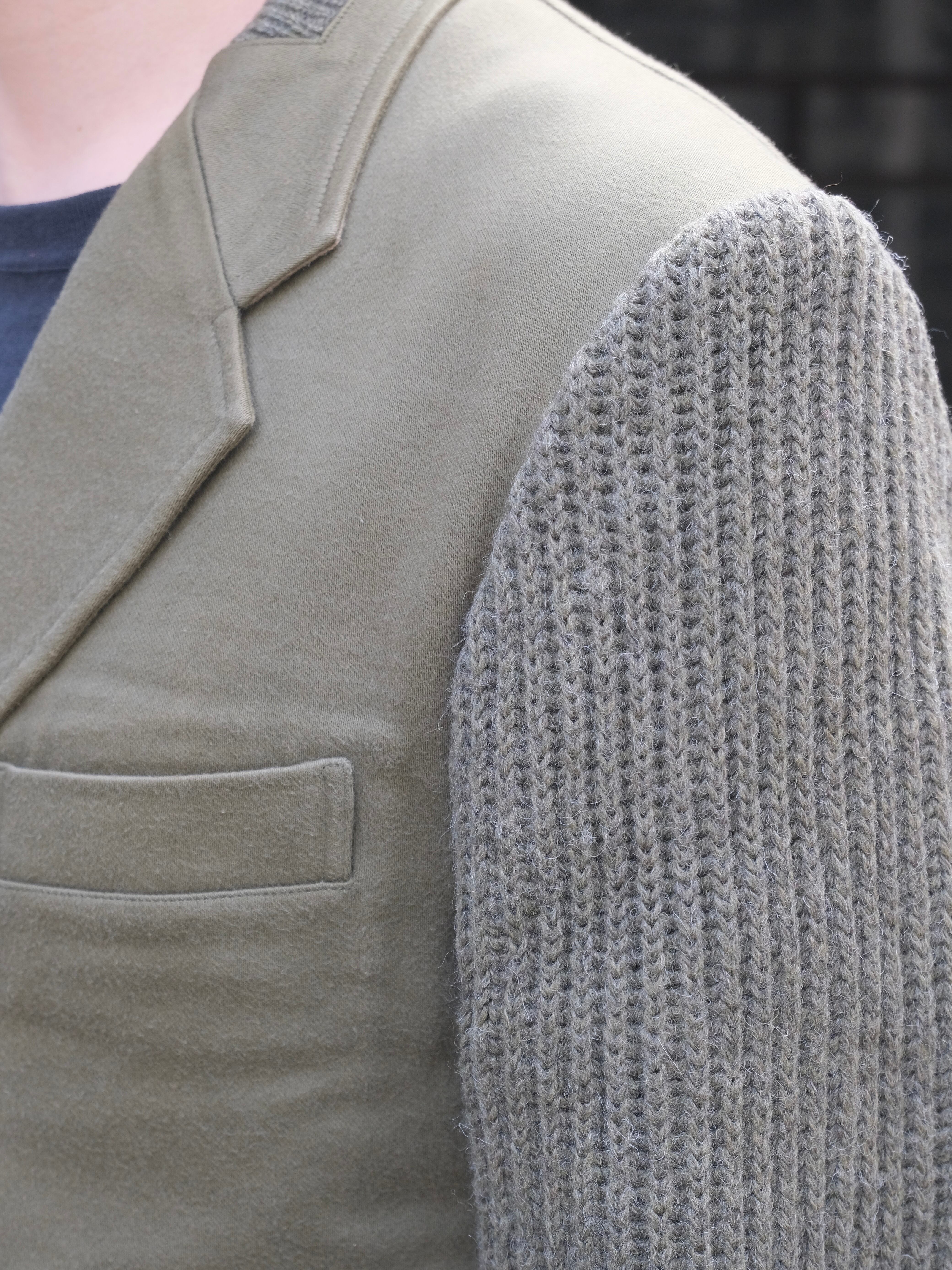 テーラードジャケットの袖がニットに切り替えられたこちら。