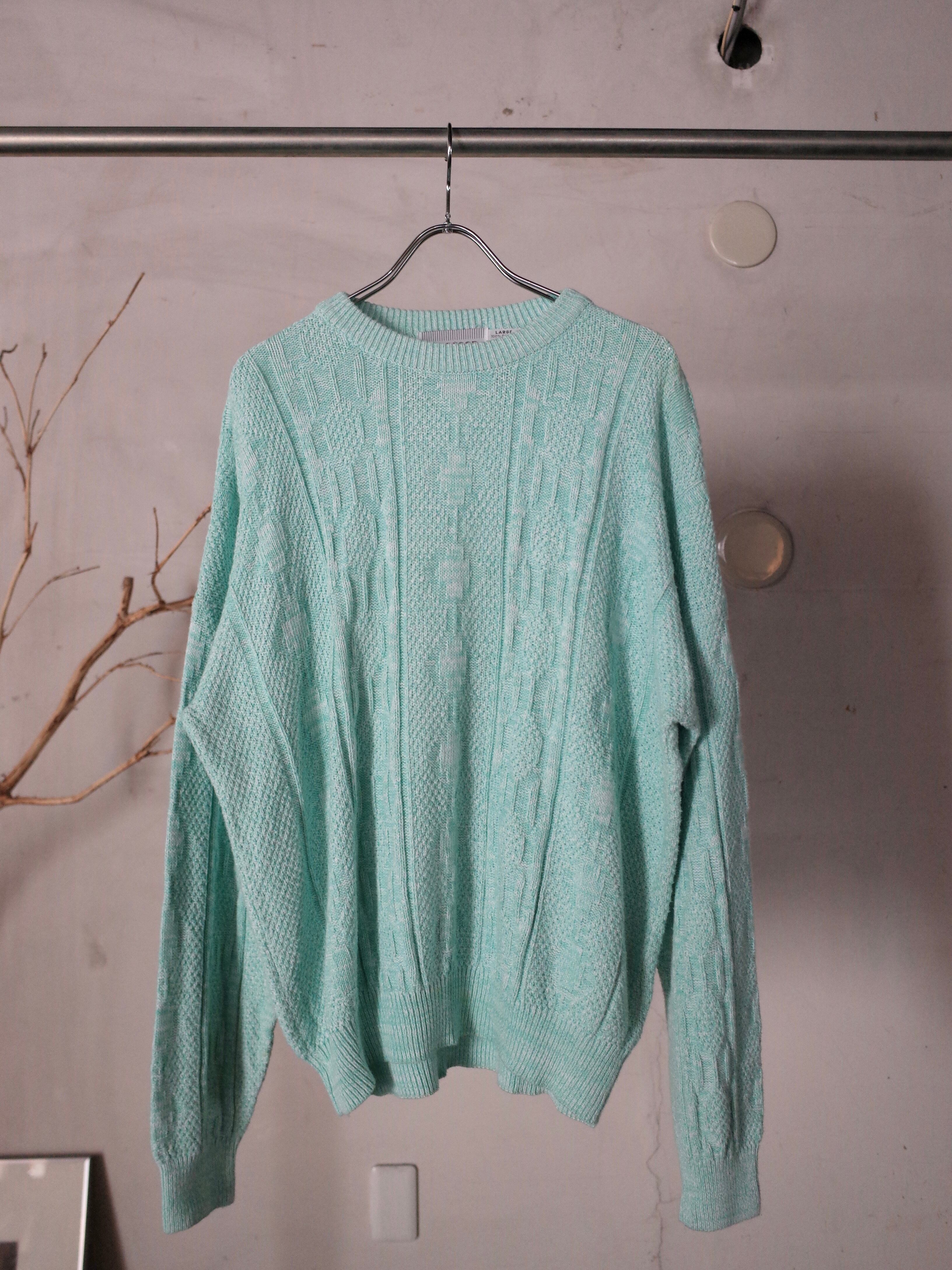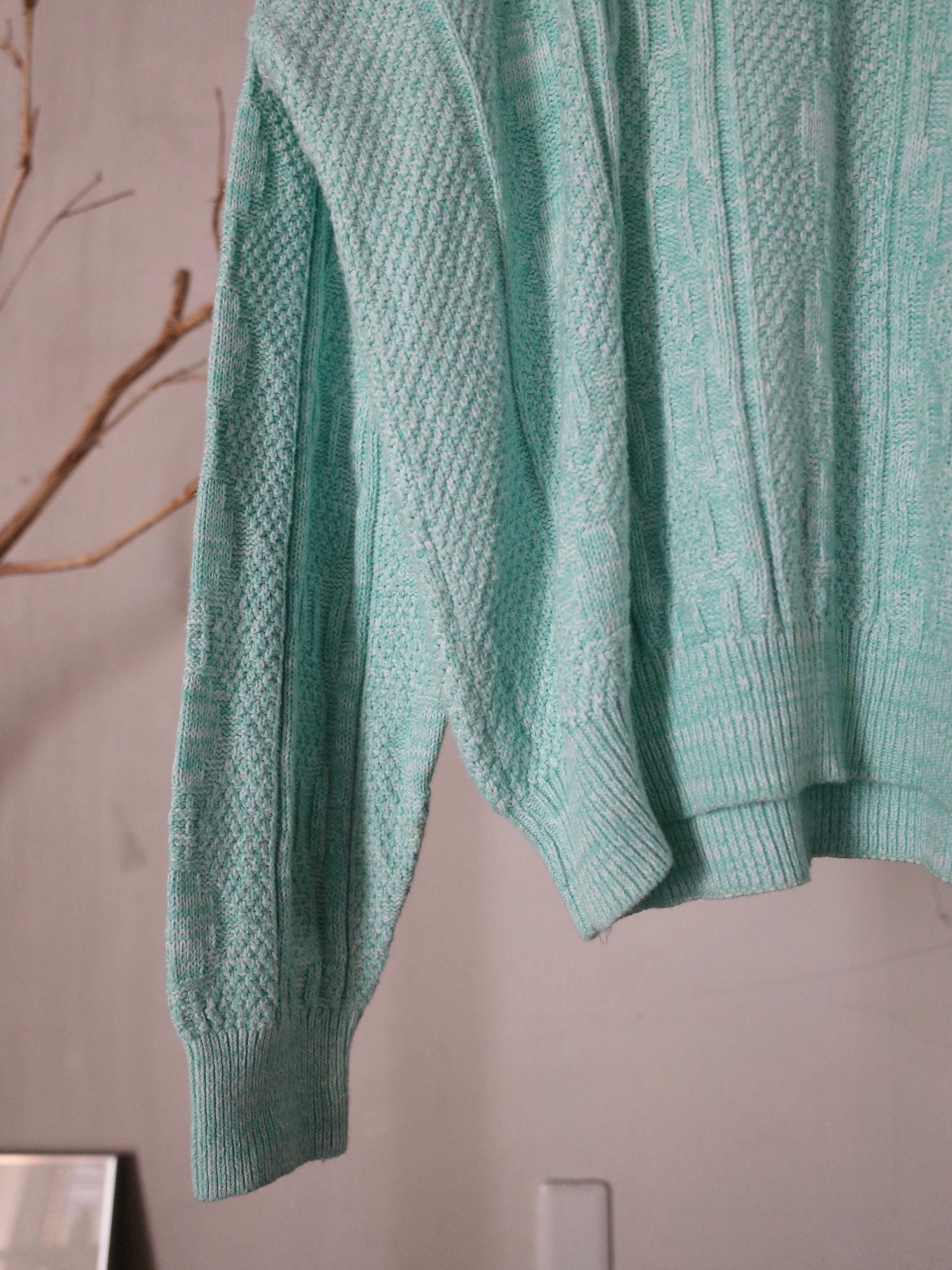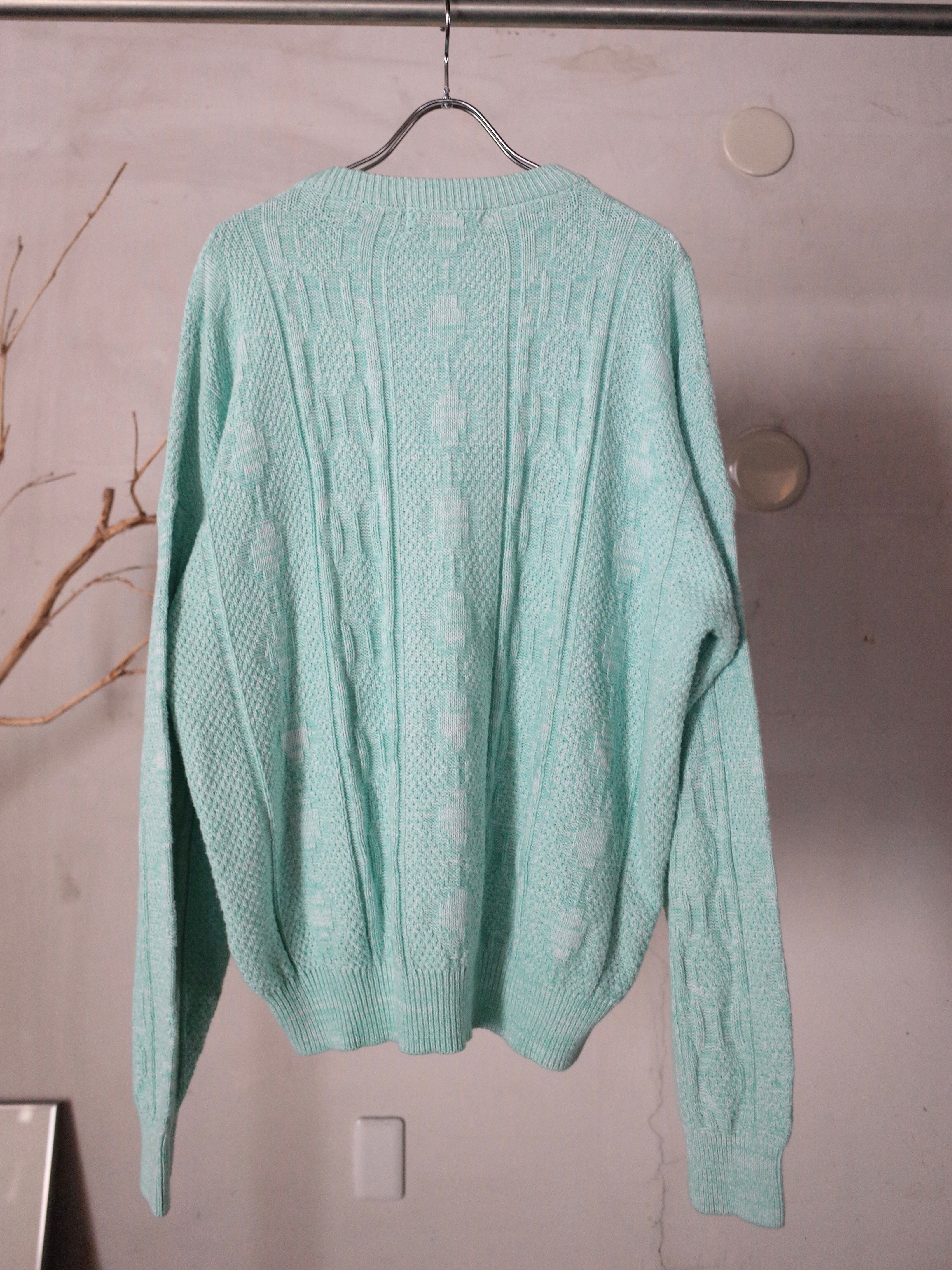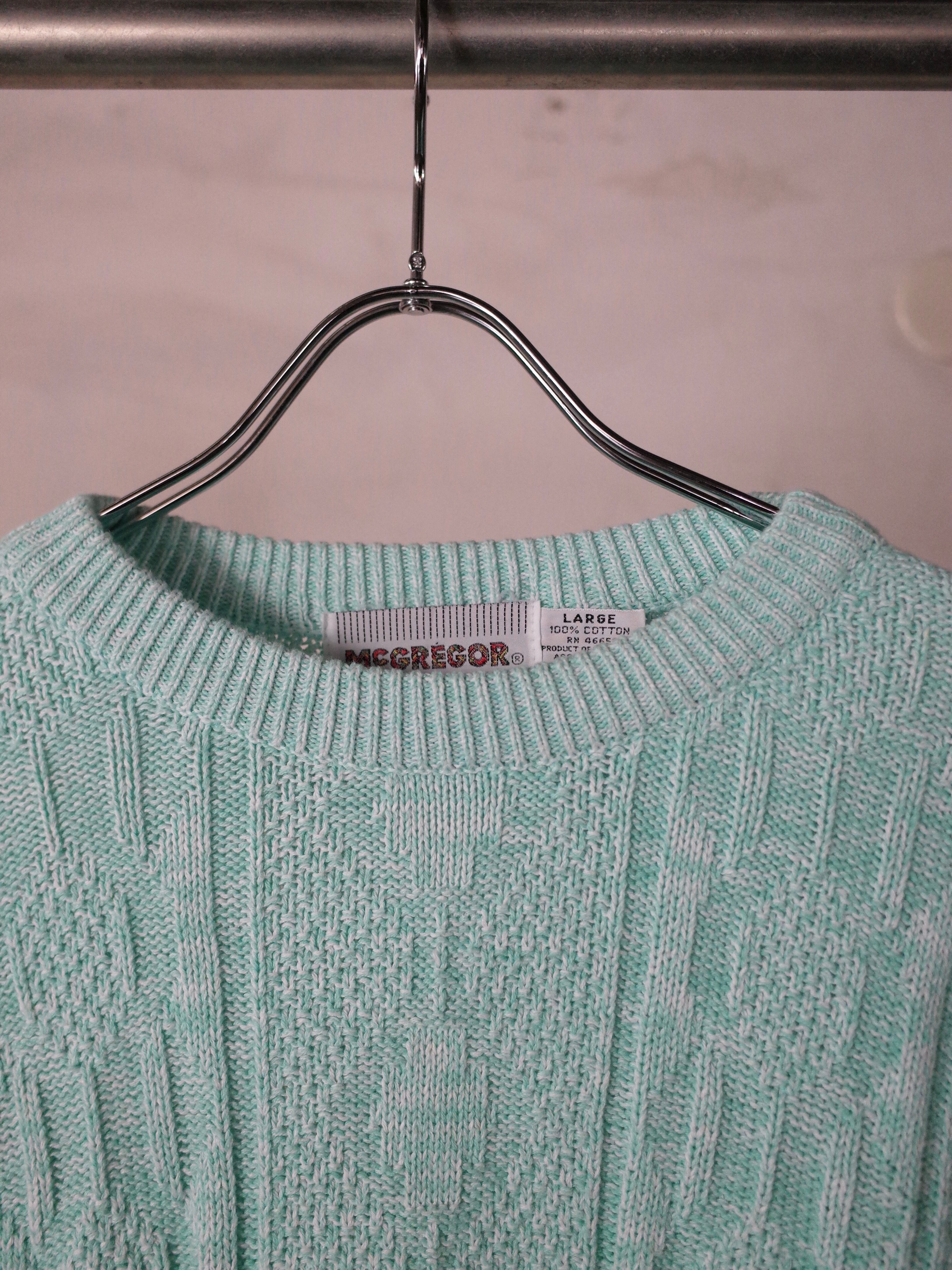 鮮やかなミントカラーのマクレガーニットです。